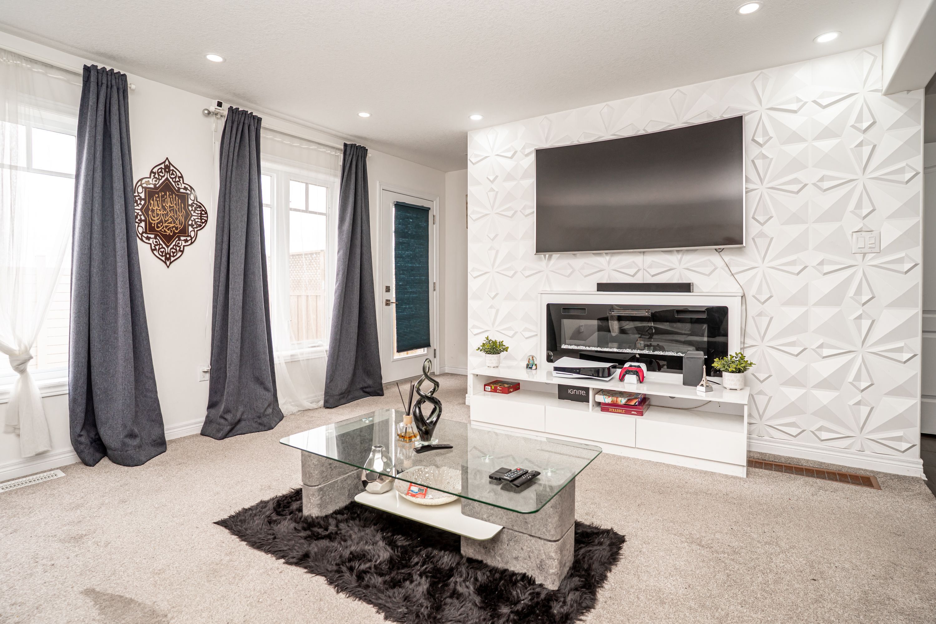 • Bright main floor with large windows and a cozy gas fireplace.