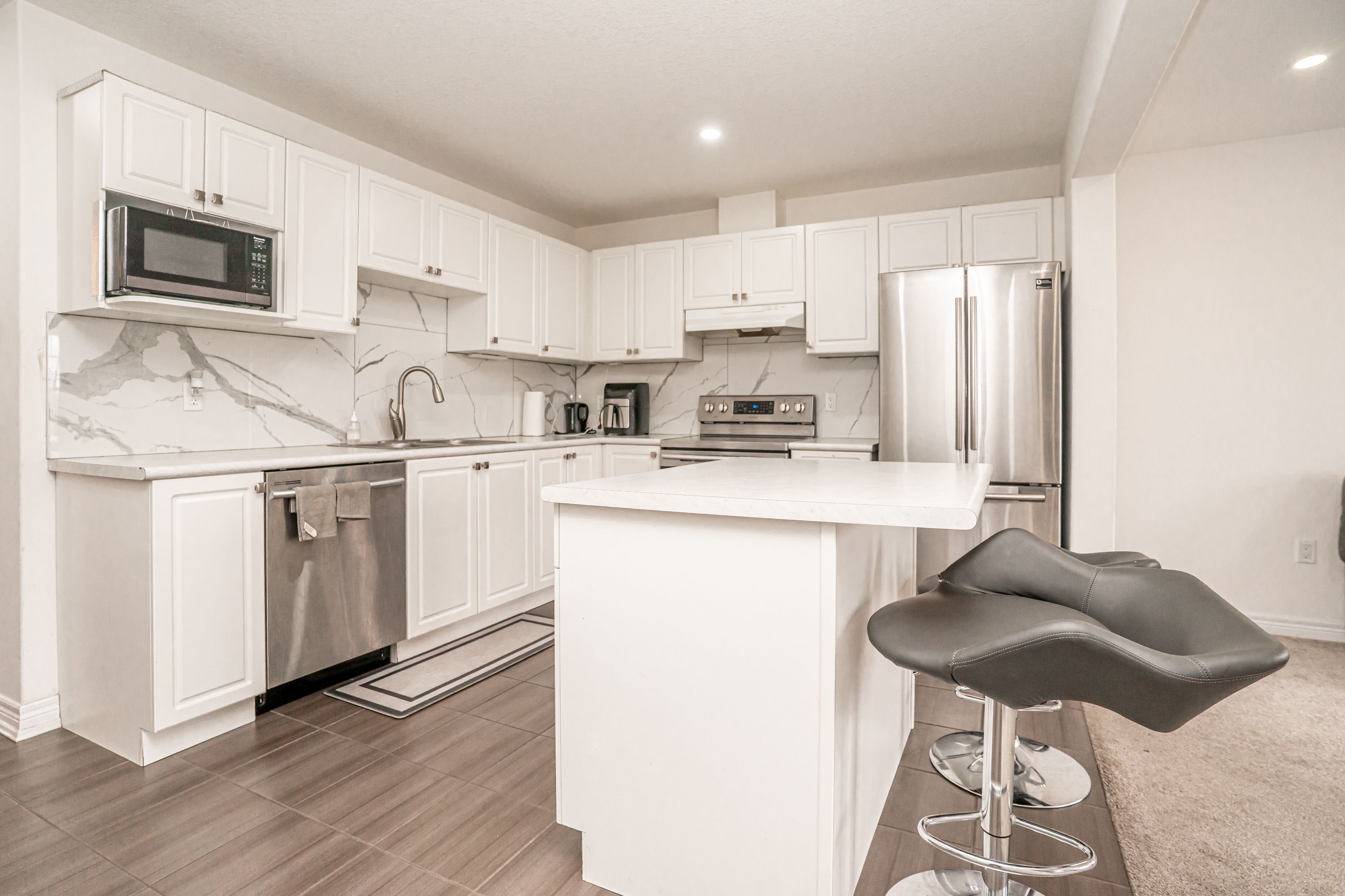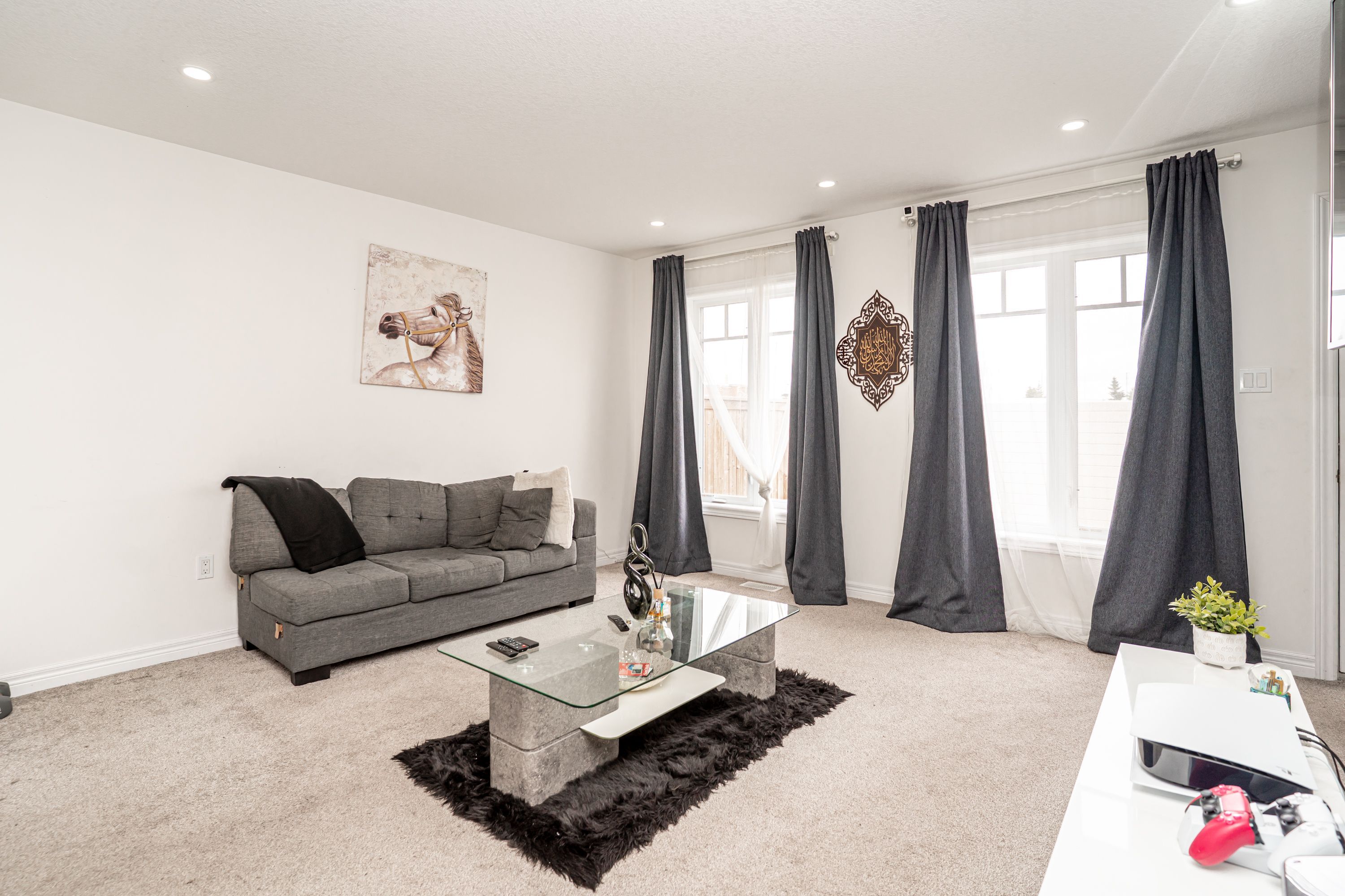 Beautiful & well maintained 3 bed, 4 bath townhouse with finished basement with1 bedroom in law suite. Bright and modern main floor with large windows, pot lights & decorative feature wall w/ gas fireplace. Covered front porch into tiled entry with dbl coat closet & 2pc powder room. Open concept living area w/ eat in kitchen with breakfast bar island, built in ss appliances and quartz backsplash. Walk out from cozy living rm to private full fenced backyard. 2nd level with 3 good size bedrooms & main 4pc bath. Large primary bedroom with 3pc ensuite with walk in glass shower. Finished modern in law suite with large bedroom, laminate floors and pot lights. Kitchenette with plenty of cupboards, open living area, beautiful 3pc bathroom with walk in shower and storage closet. 1 car garage with convenient inside access. Close to schools, rec. Centre, shopping, dining & more. Quick access to riddell & hwy 10. Great for commuters. Great family home with potential extra income. A must see!