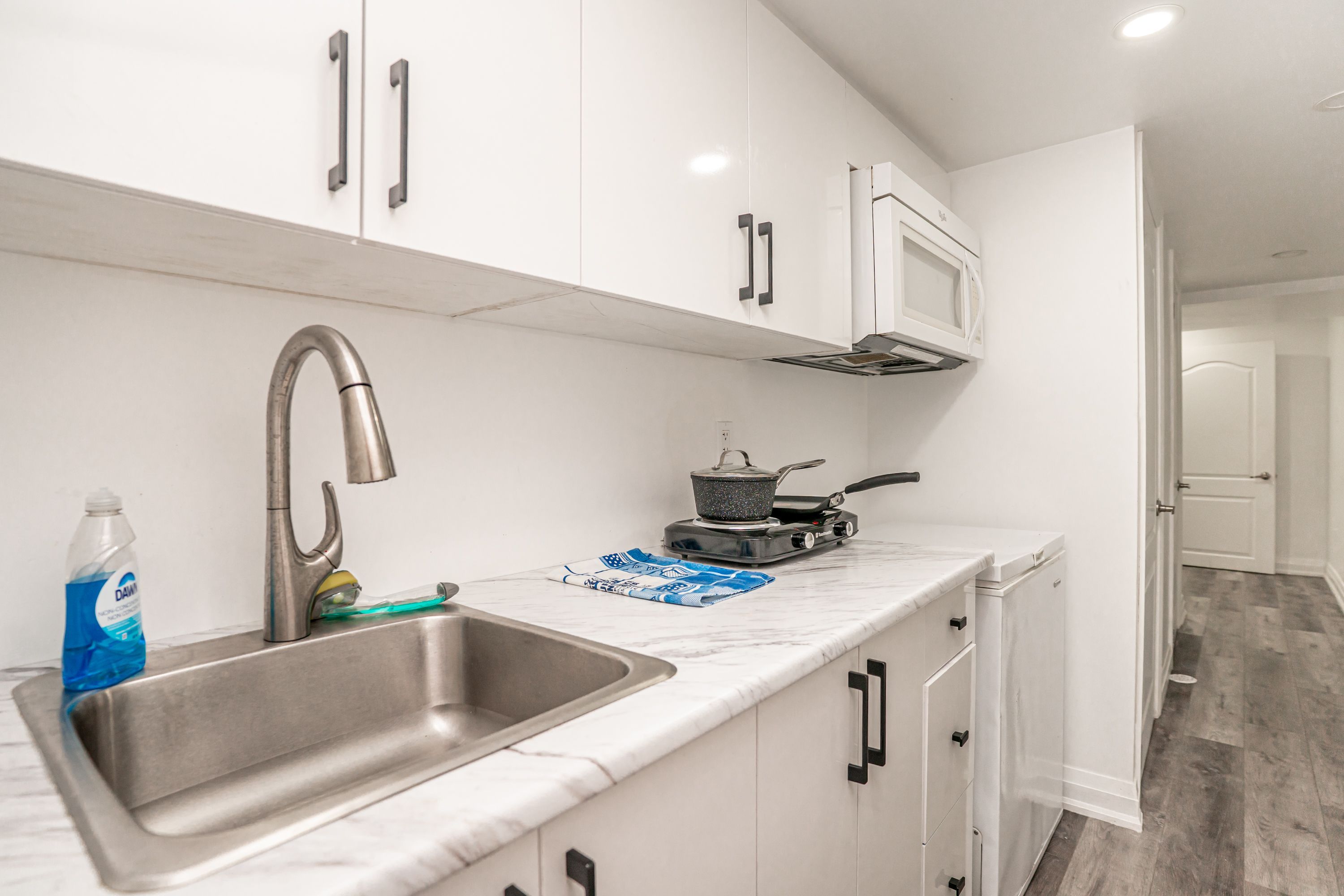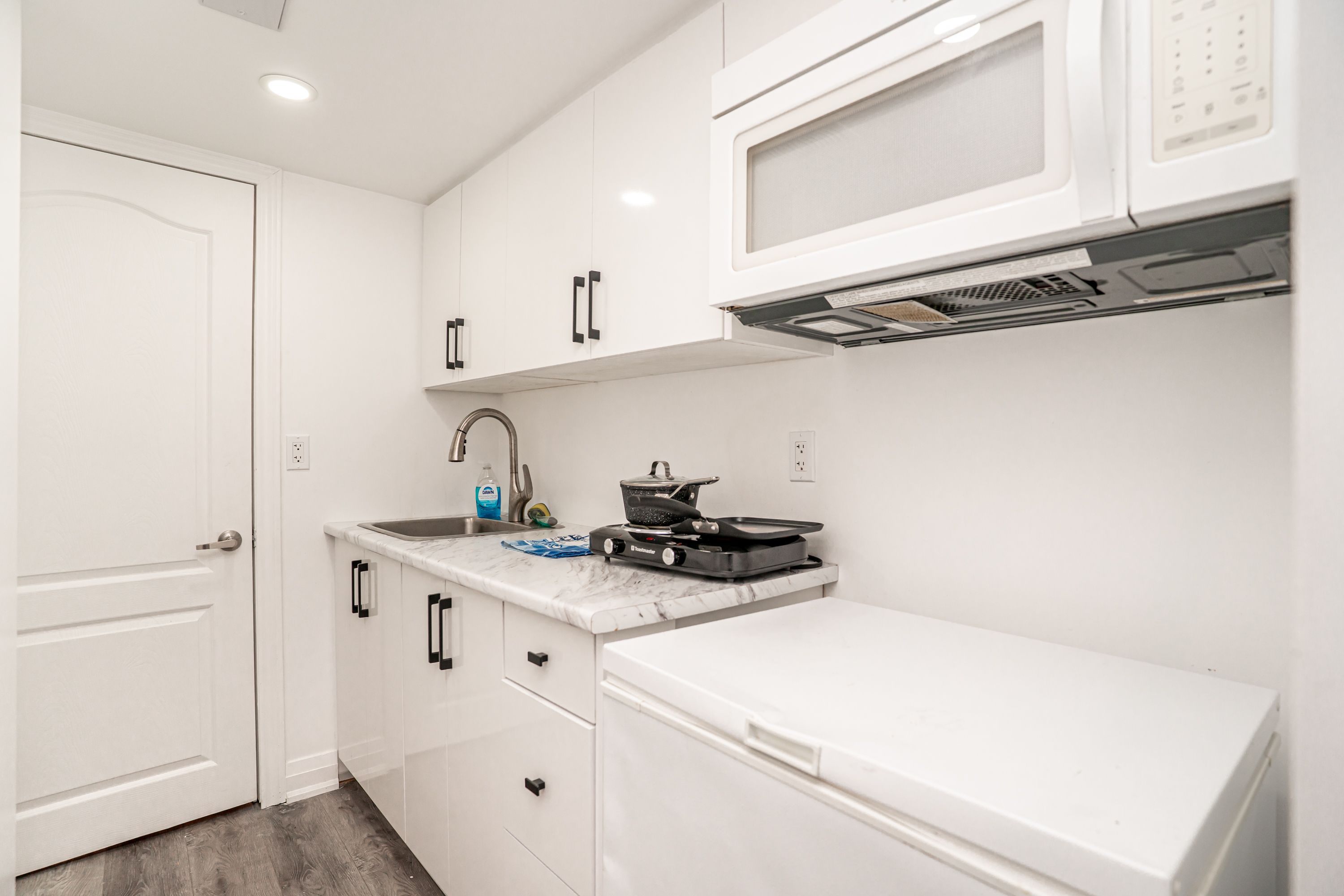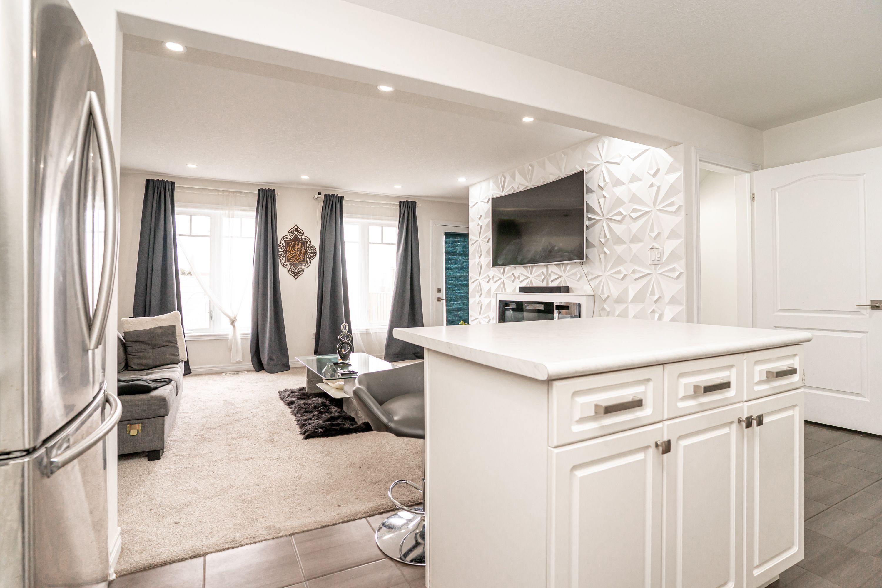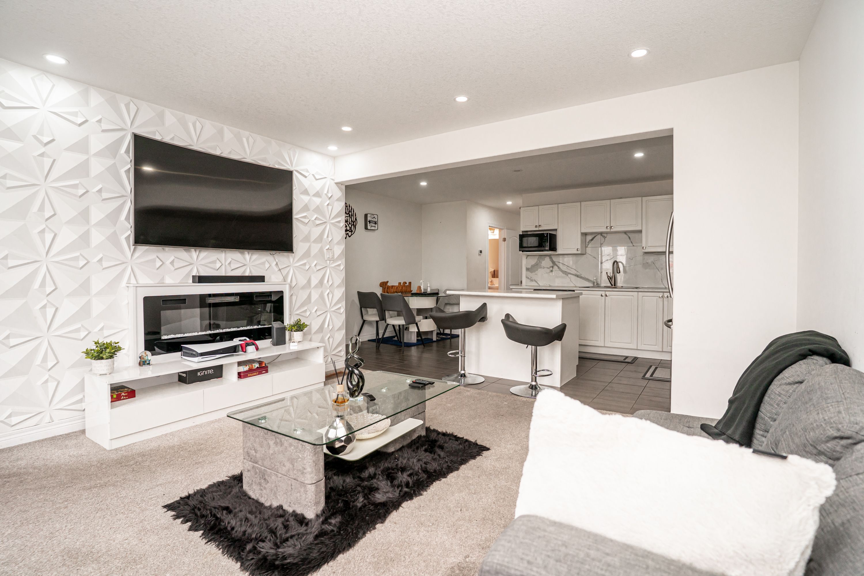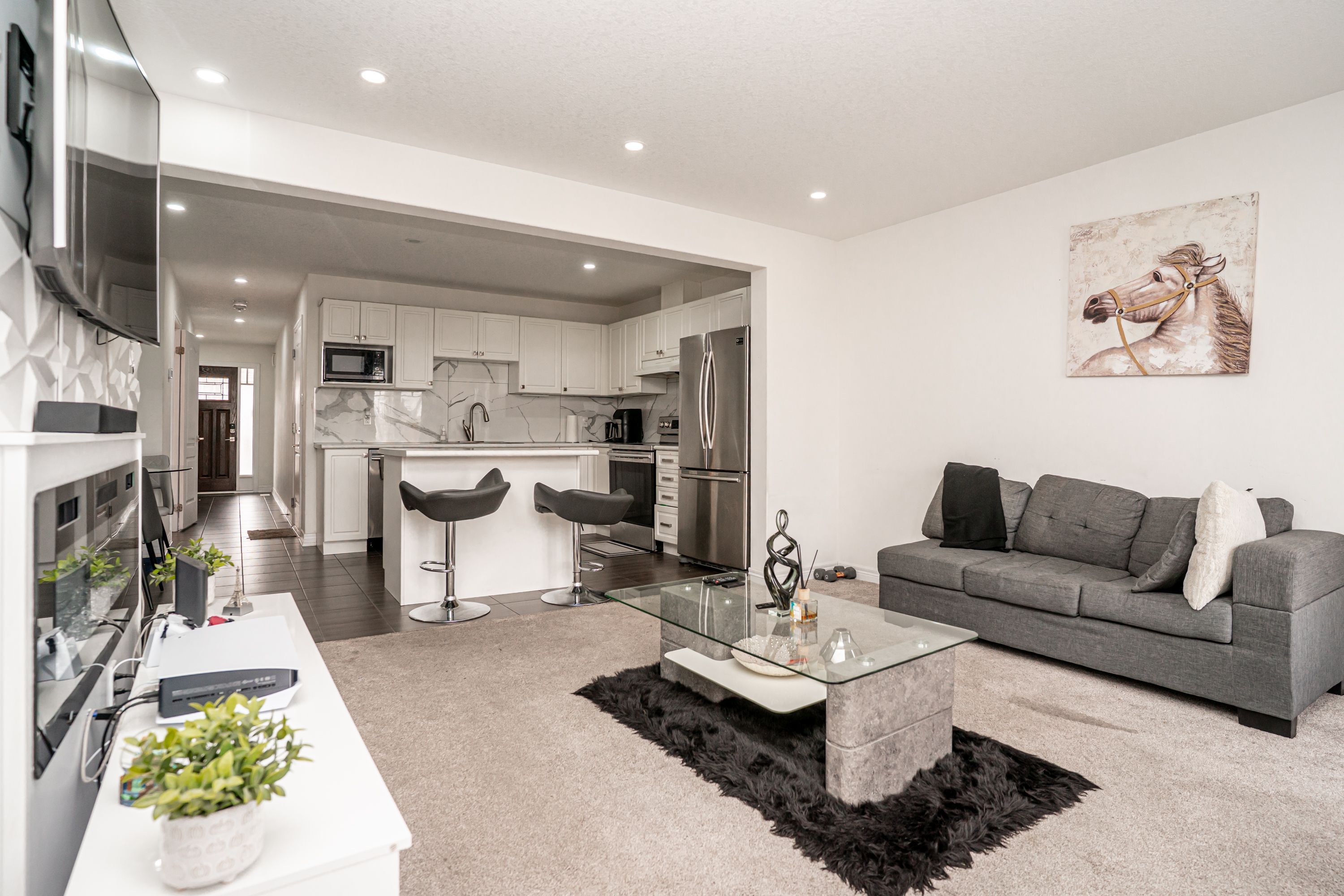 • Open concept living area featuring a modern kitchen with built-in appliances.