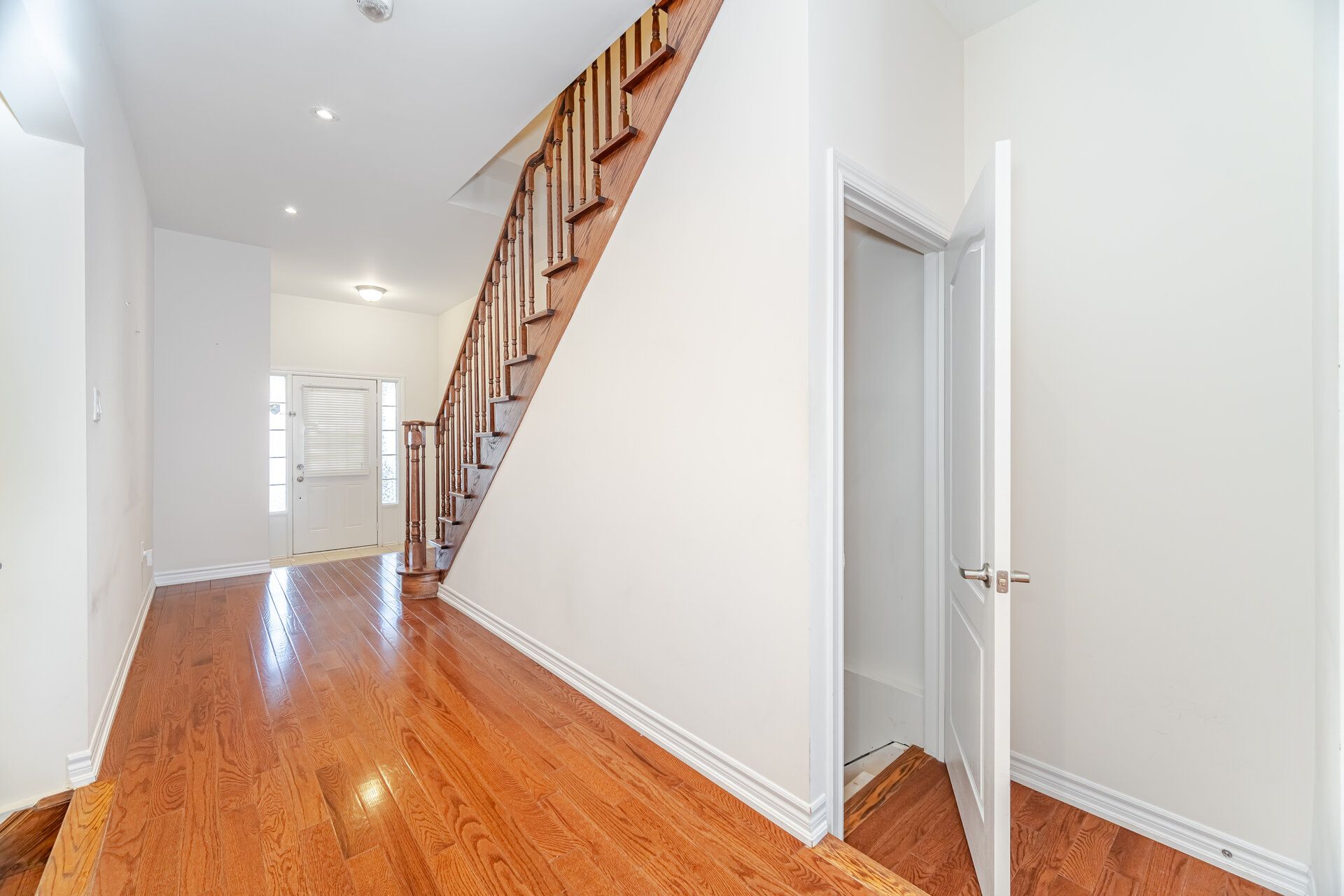 Beautifully finished 3-bedroom townhome with a stunning open-concept layout! Step into this inviting home featuring 9-ft ceilings on the main floor, a functional open-concept design, rich hardwood floors, and pot lights throughout. The spacious living room offers a cozy gas fireplace, creating the perfect setting for both relaxing evenings and effortless entertaining. The modern kitchen boasts a stylish backsplash, stainless steel appliances, quartz countertops, and upgraded extra-tall upper cabinets. Upstairs, the elegant oak staircase leads to a generous second level showcasing a huge primary bedroom with a walk-in closet, convenient second-floor laundry, and well-proportioned bedrooms with neutral décor. Enjoy a fully fenced backyard with a large wood deck-ideal for outdoor gatherings. Situated in a highly desirable neighborhood with quick access to all amenities, hwy 407/401/410, top-rated schools, and just minutes from mount pleasant go station and public transit.