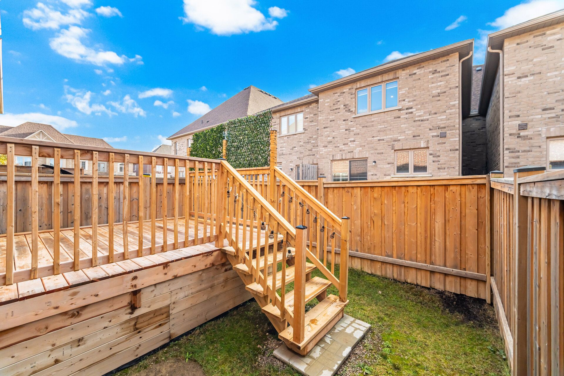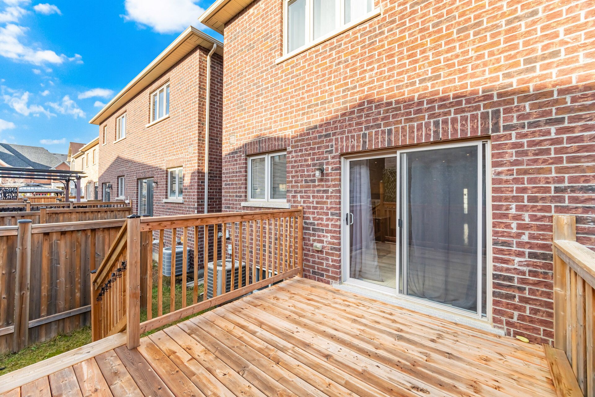 • Fully fenced backyard with a large wood deck for outdoor gatherings.