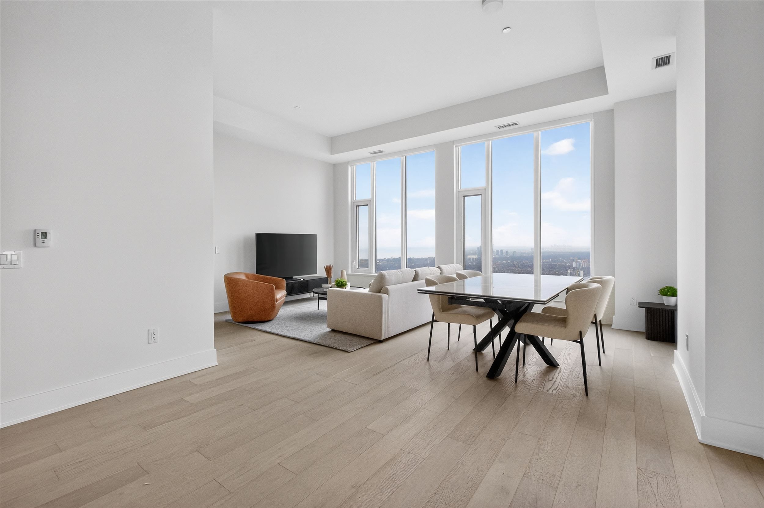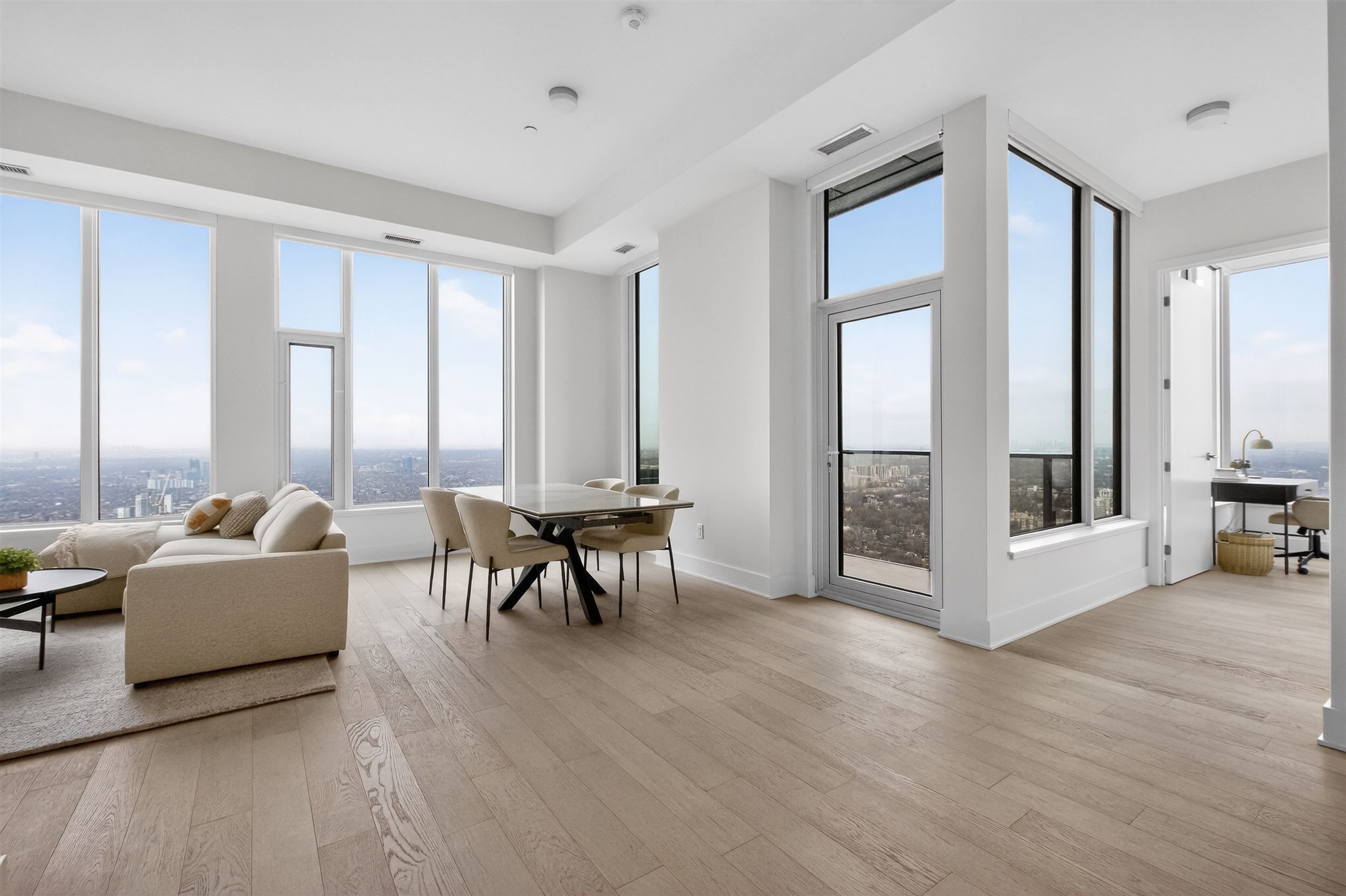 • Fully furnished luxury penthouse suite with natural light and city views.