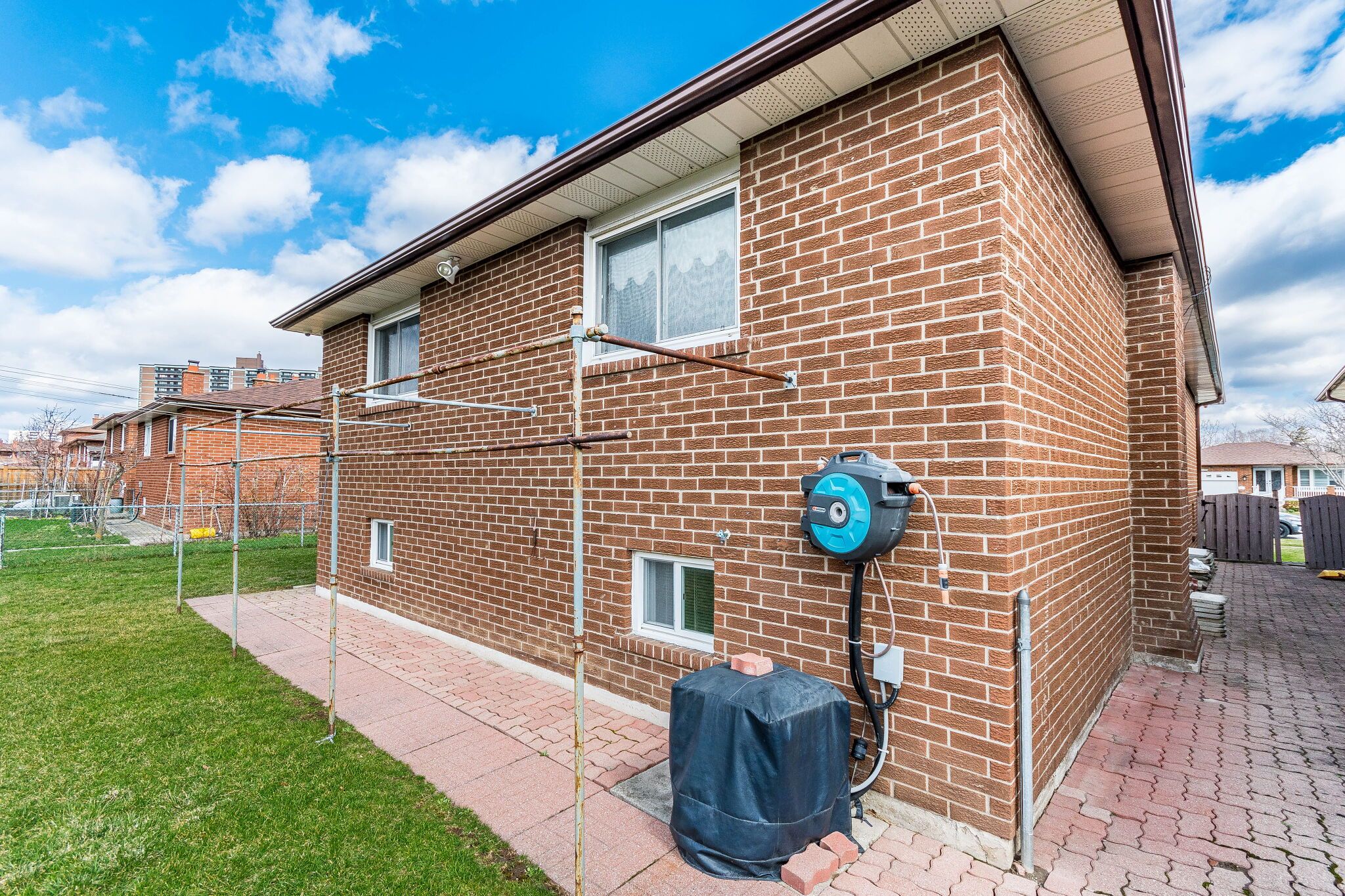 • Private backyard with interlock patio and green space for relaxation.
