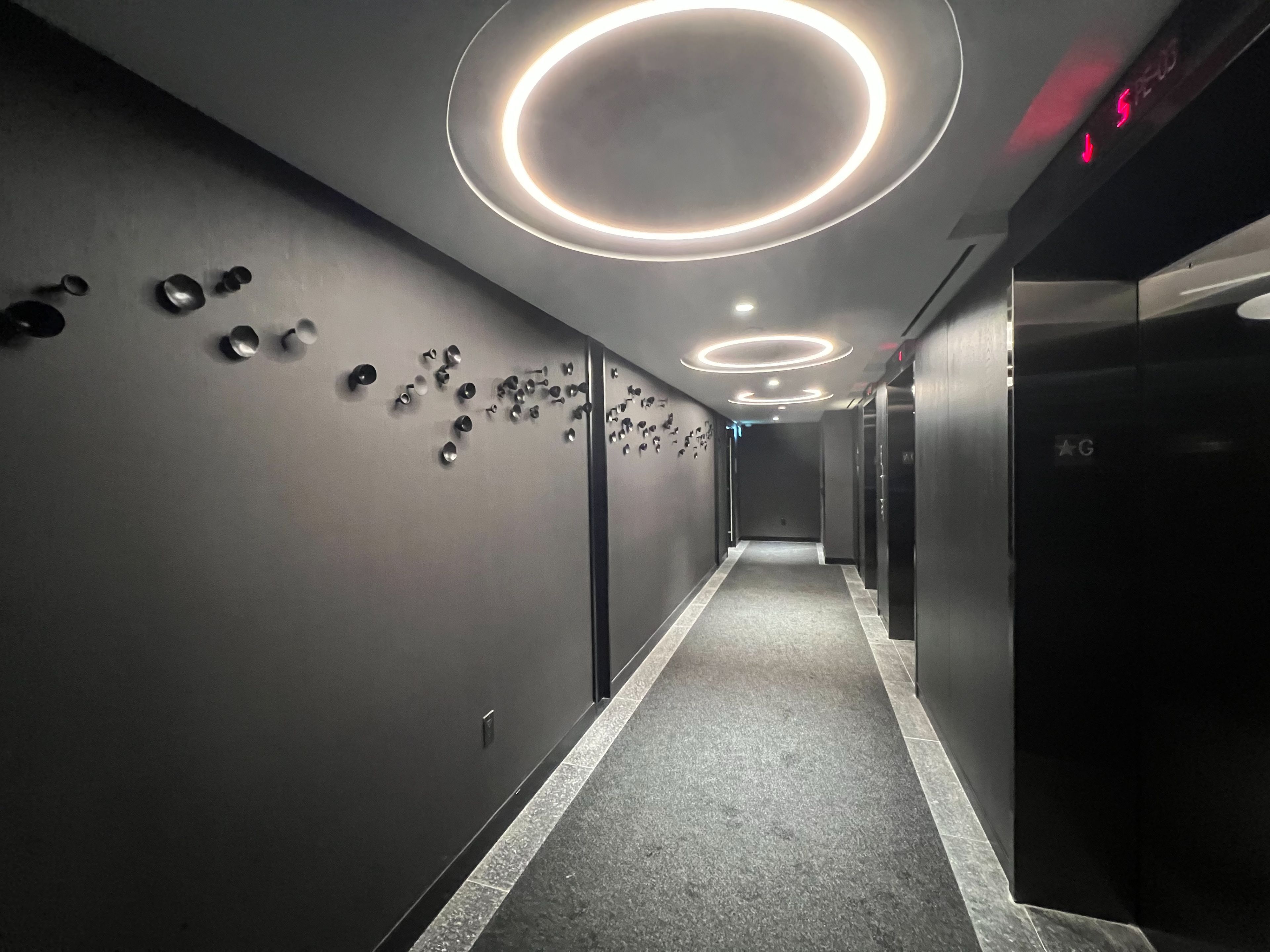 • Building amenities include fitness center, wellness pool, and co-working space.