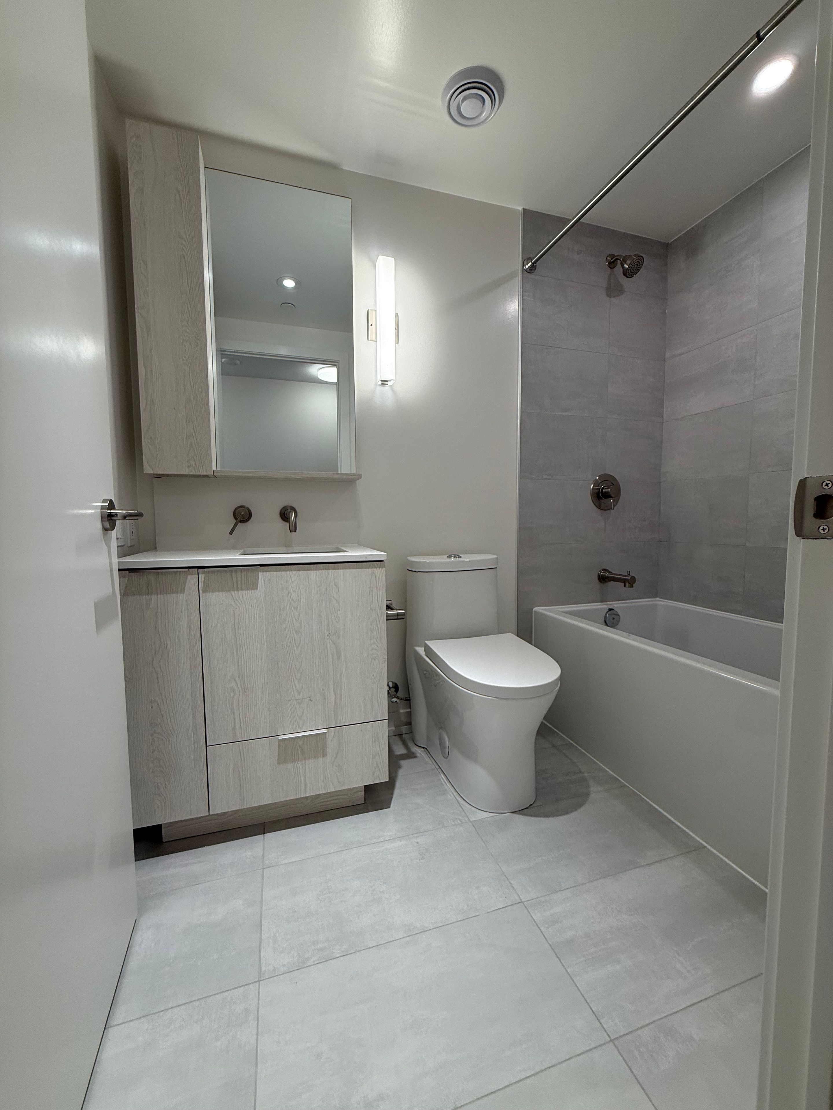 Untitled toronto - pharrell williams collaboration. Be the first to live in this 500 sq. Ft. One-bedroom suite at untitled toronto by reserve properties and westdale properties, in collaboration with pharrell williams. Modern upgrades include vinyl flooring, a framed mirror foyer closet, east-facing balcony, premium integrated stainless steel appliances, stone grey matte cabinetry, quartz countertops, and under-cabinet lighting. The four-piece bathroom features upgraded porcelain accents, quartz countertop, and sleek glass panel bathtub. Enjoy 34,000+ sq. Ft. Of amenities: pool and spa, gym, yoga studio, rooftop dining, coworking lounges, meditation garden, kids' playroom, screening room, and concierge lobby. Steps from yonge & eglinton transit, shopping, dining, and parks.