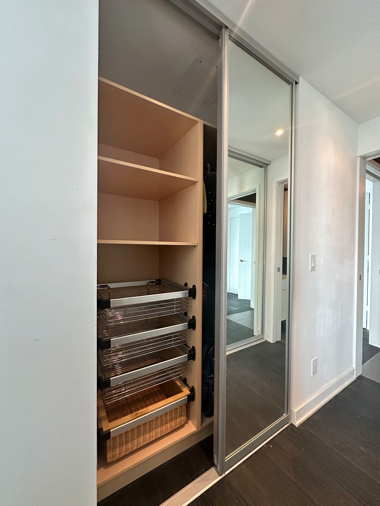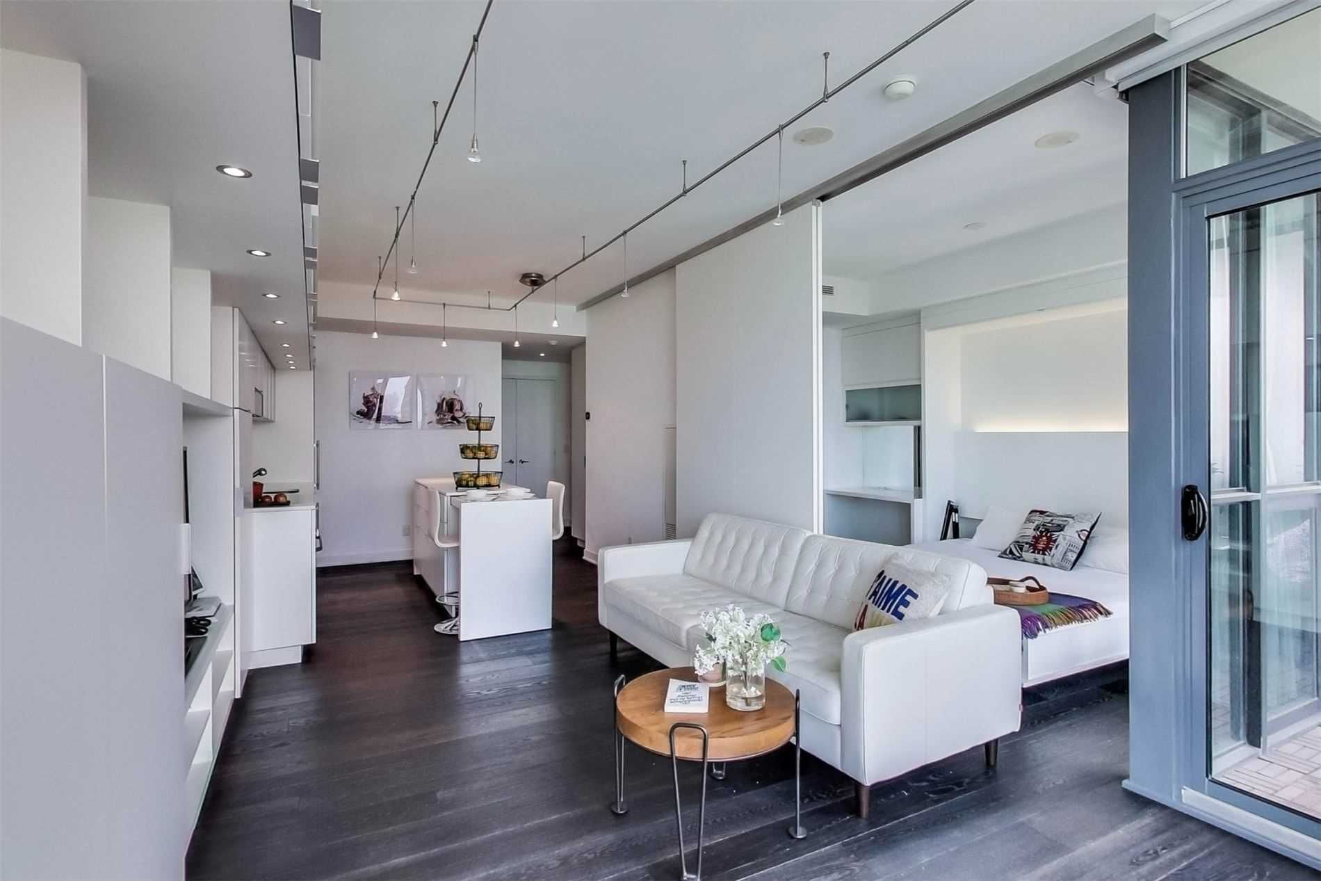 Elegance on charles! This custom-designed and fully furnished 1+1 suite is truly one of a kind in the building. Featuring extensive upgrades with luxurious finishes, custom millwork and cabinetry throughout, and designer wide plank hardwood floors. The gourmet kitchen offers a large entertainer's island with caesar stone counters and built-in stainless steel appliances. The primary bedroom includes a cleverly integrated murphy bed for flexible work/live functionality and a custom double closet with slide-out drawers and racks. Extras: fully furnished & move-in ready! Includes 1 king size bed with mattress, 1 office desk, 1 office chair, 2 counter-high chairs, 1 parking space (beside elevator), and 1 locker.