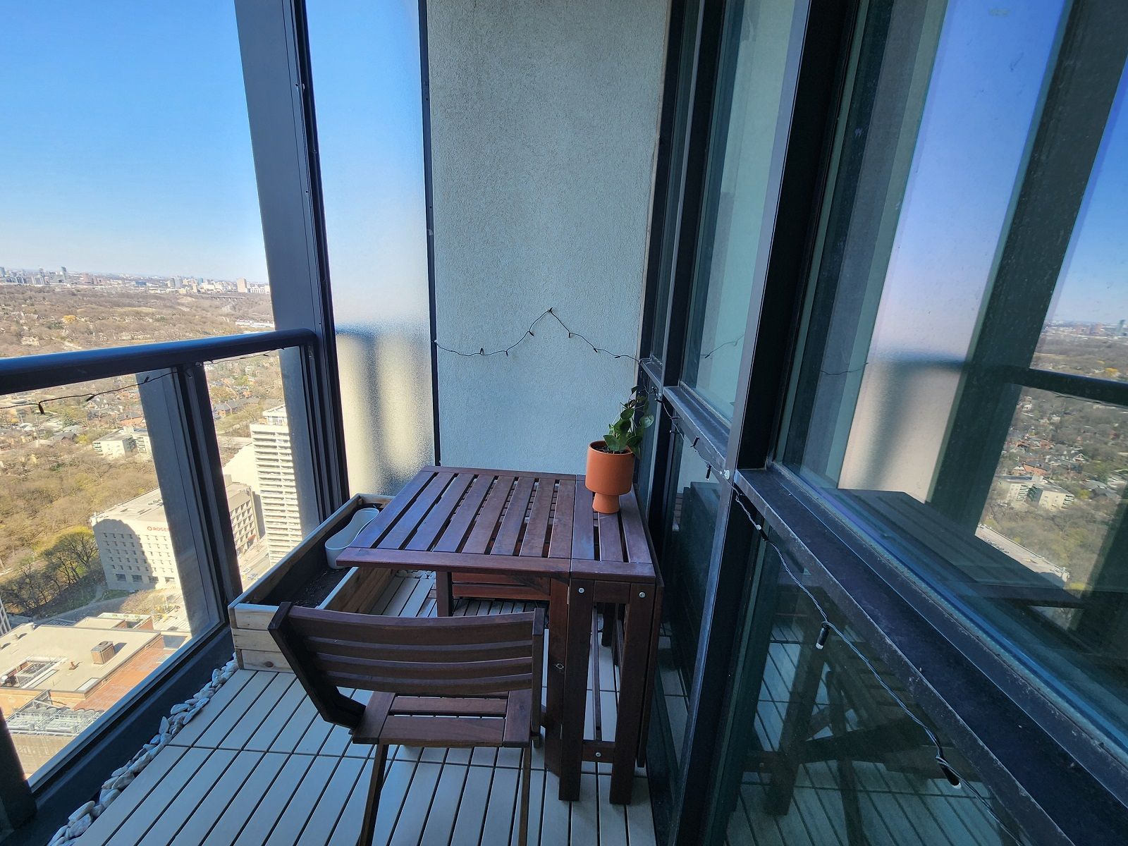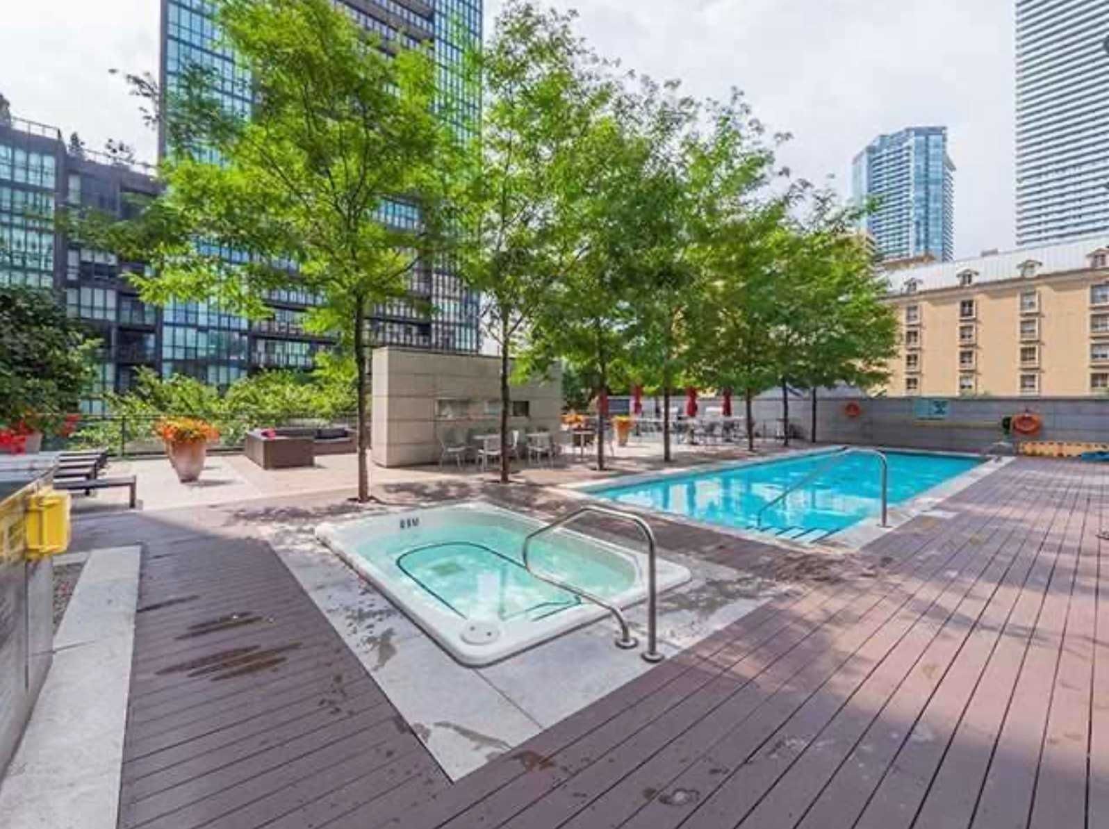 • Building amenities include a pool, gym, and rooftop terrace.