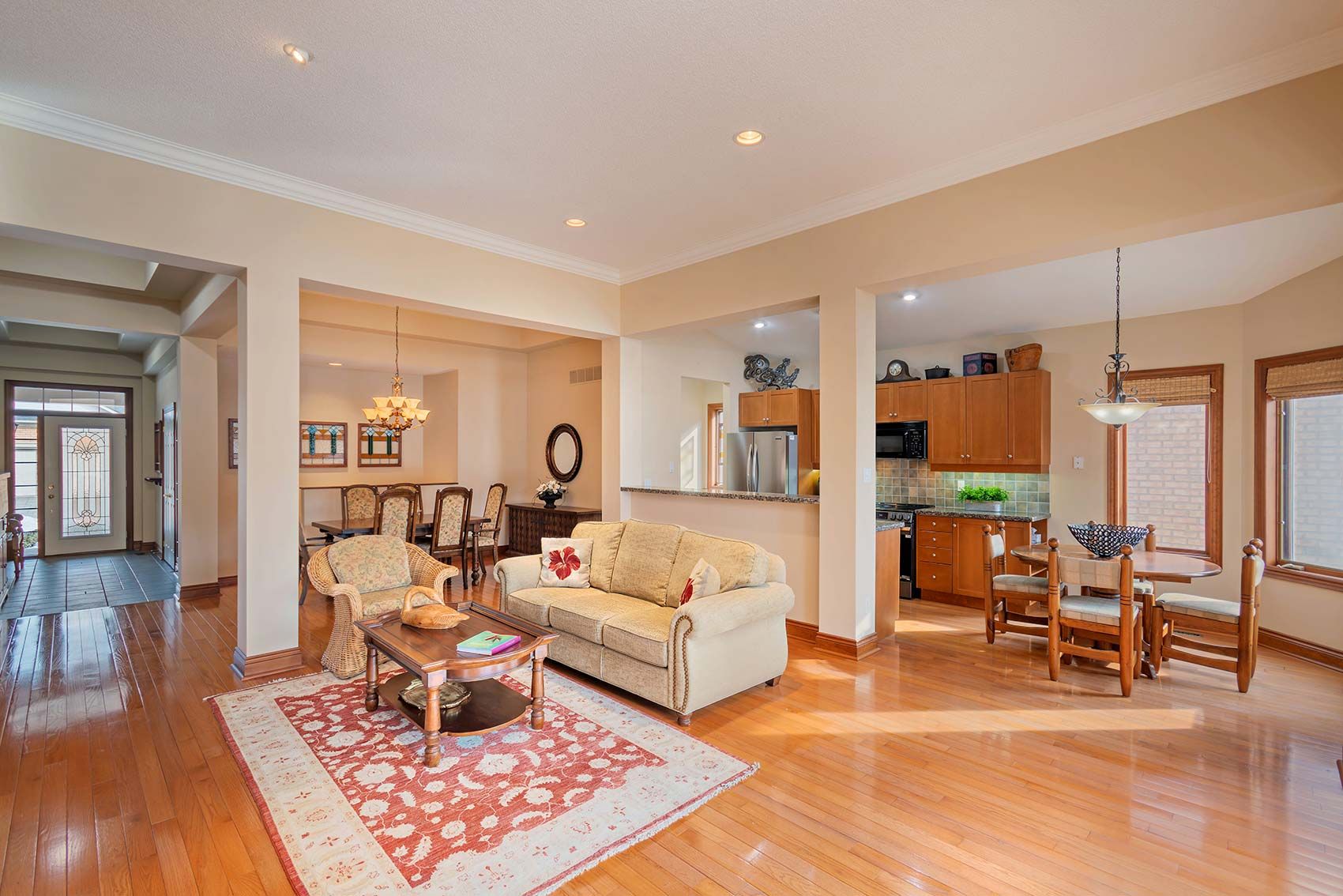• Spacious bungalow with an open concept and high ceilings.