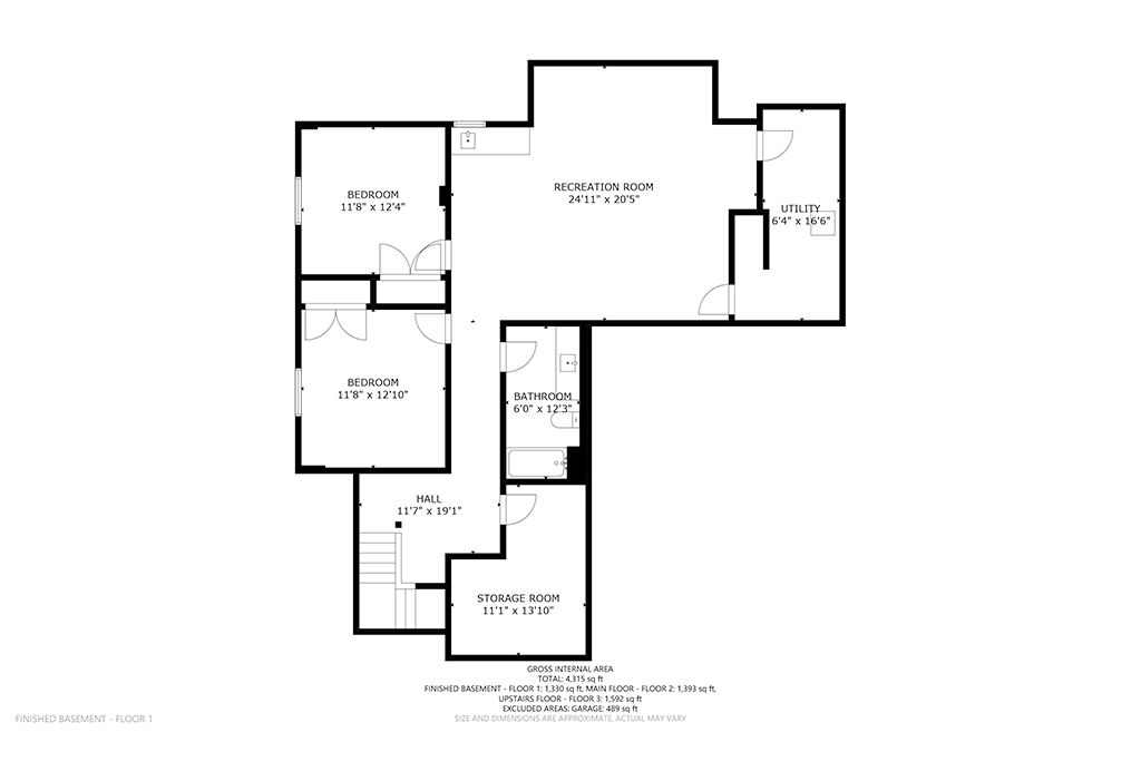 • Lower level includes bedrooms, a full bathroom, and a huge recreational room.