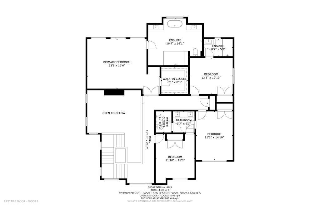 • Luxurious primary suite with spa-inspired en suite and double vanities.