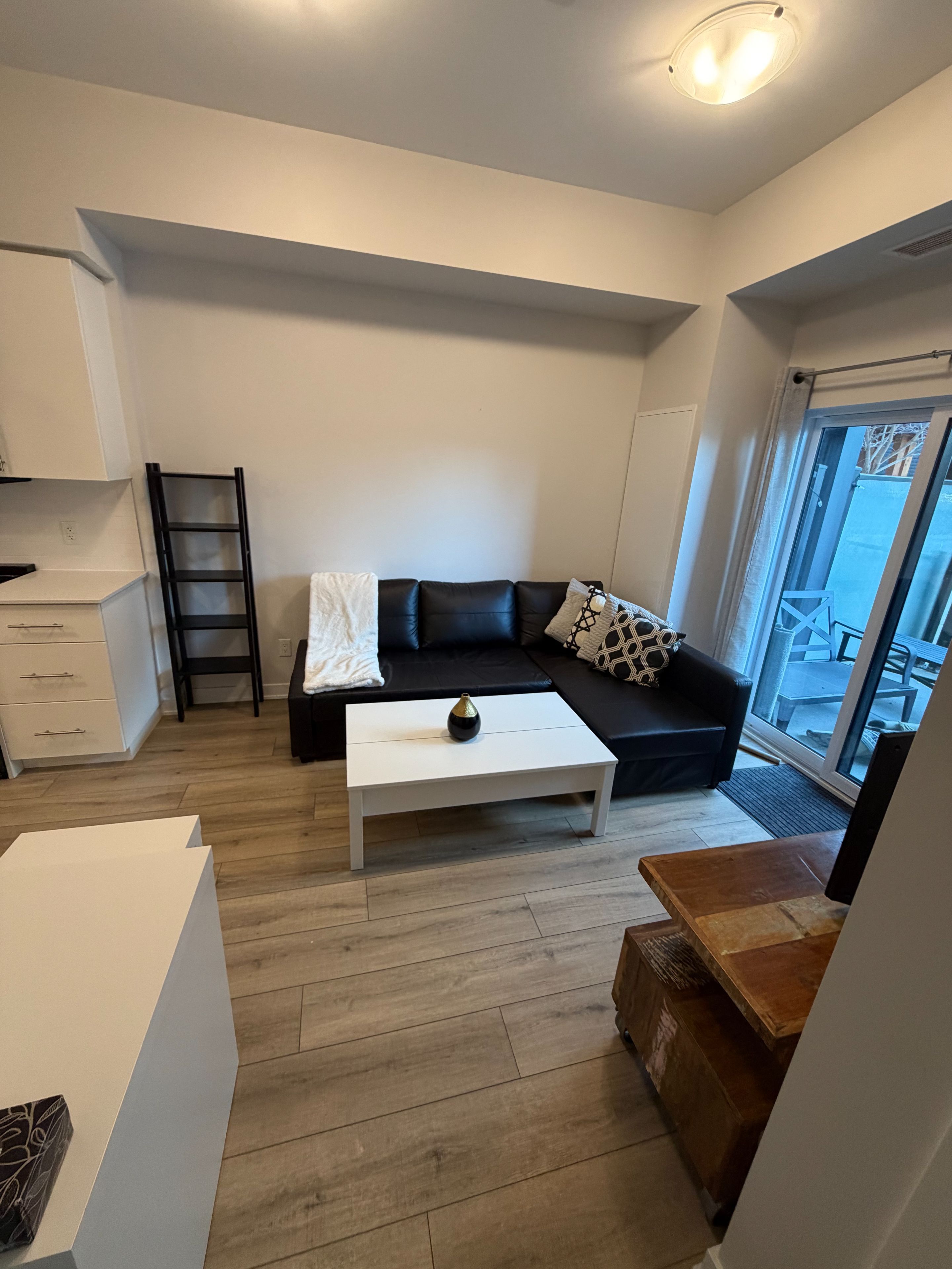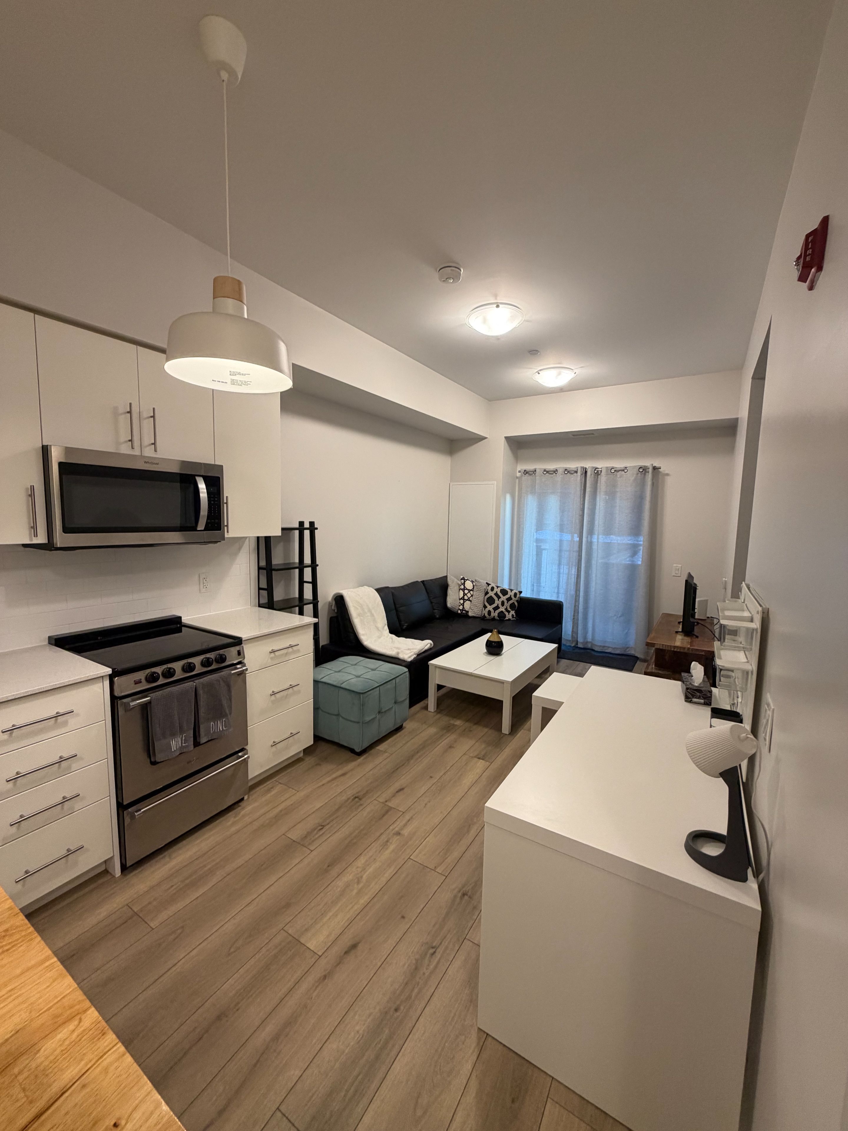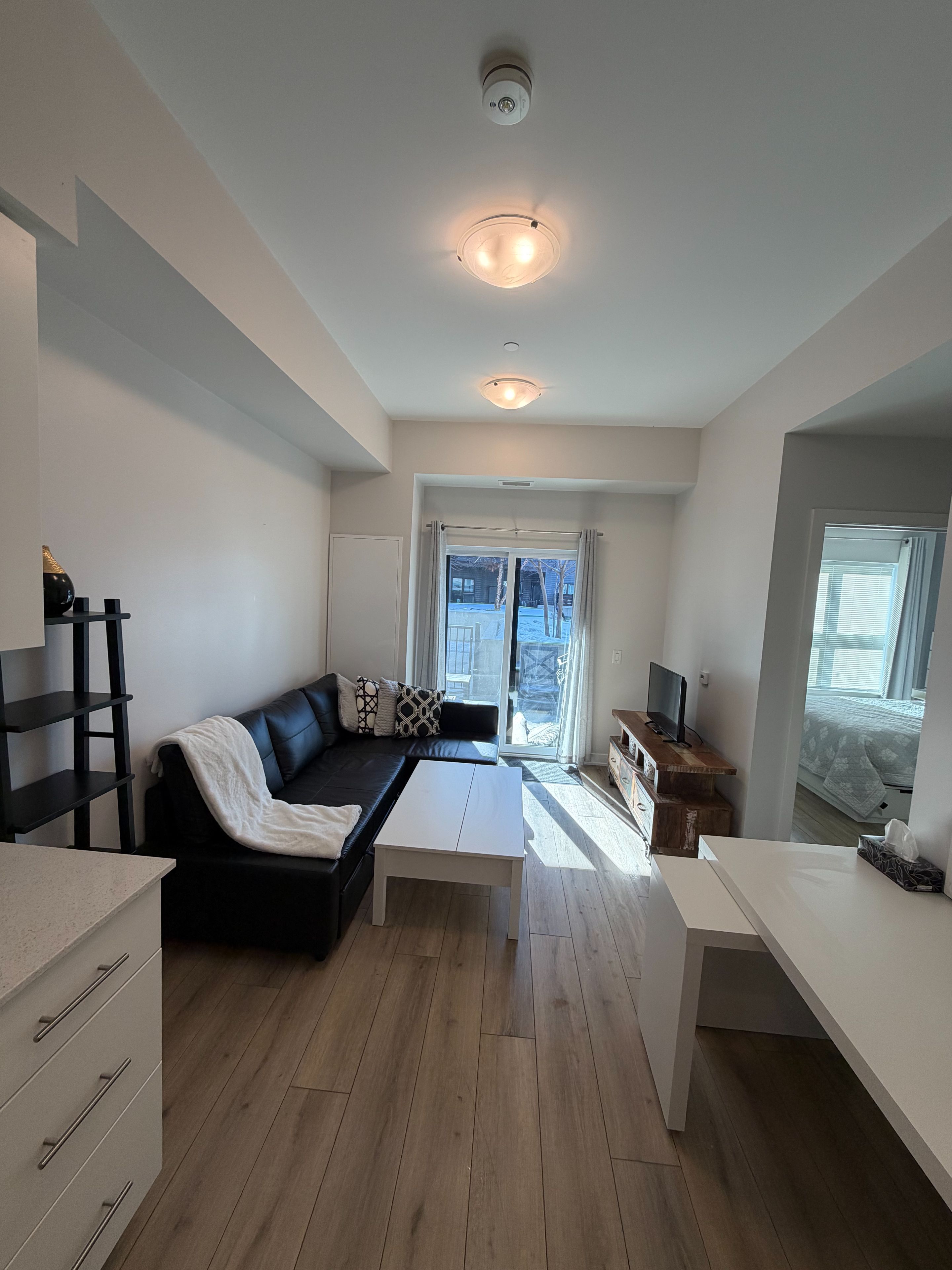 **fully furnished** welcome to the hush collection in the heart of kitchener! Built in 2021, this bright and modern 580 sq ft south facing suite offers 9' ceilings, large windows, and a functional open-concept layout, plus a private walk-out terrace equipped with patio furniture and a gas bbq- perfect for relaxing or entertaining. The contemporary kitchen features quartz countertops, a huge kitchen island, and stainless steel appliances. The spacious primary bedroom includes a large walk-in closet. The unit comes complete with in-suite laundry, free rogers internet, and one parking spot. Enjoy access to premium amenities and ample visitors parking. Ideally located just a 5 minute walk from the zehrs plaza, offering many retails shops and restaurants. Also minutes from fairview park mall, downtown kitchener, highway 8, public transit, restaurants, schools, walking trails. Modern, convenient, and move-in ready - the perfect fully furnished rental in one of kitchener's most desirable communities.