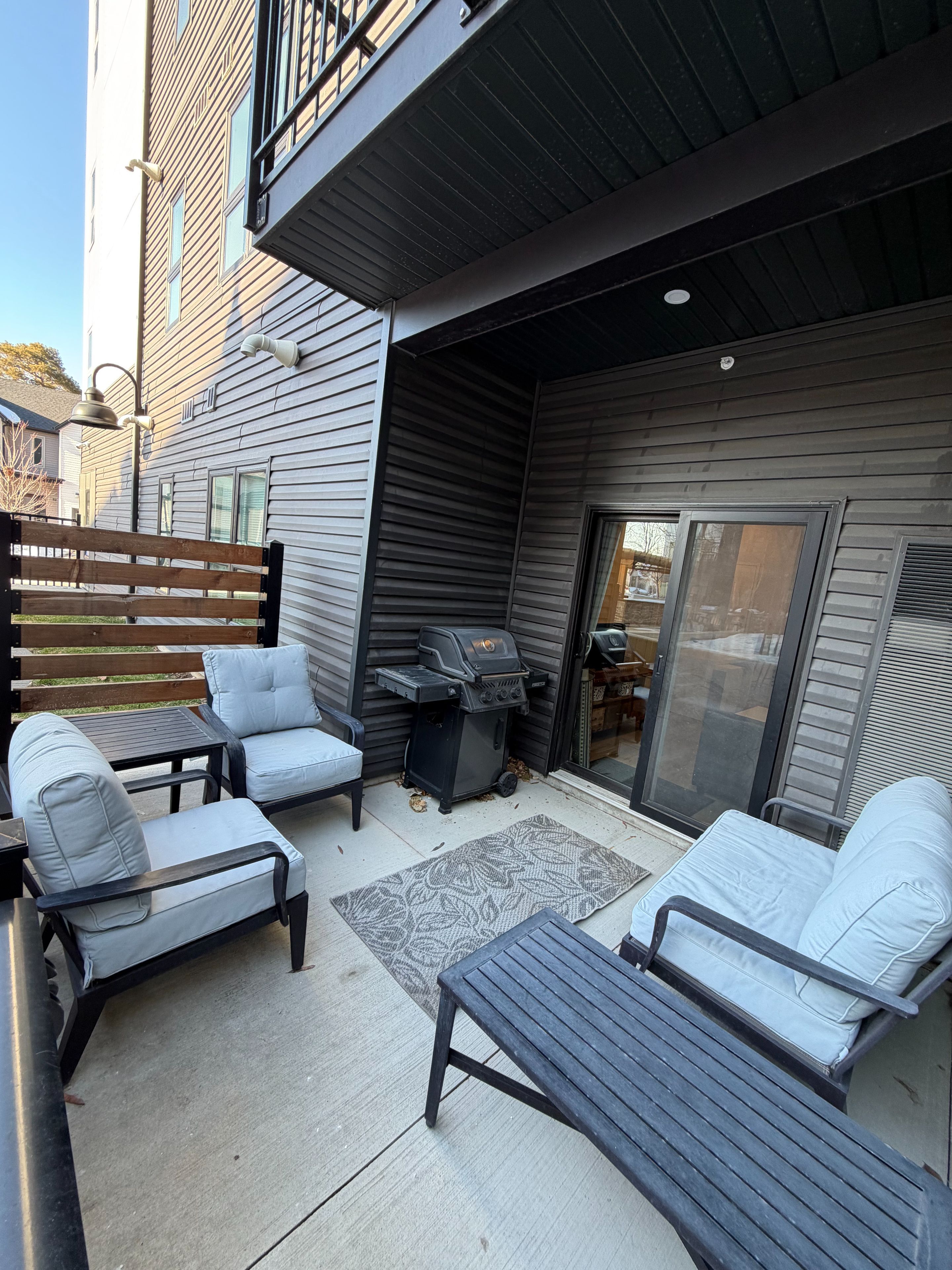 • Private walk-out terrace with patio furniture and gas BBQ.