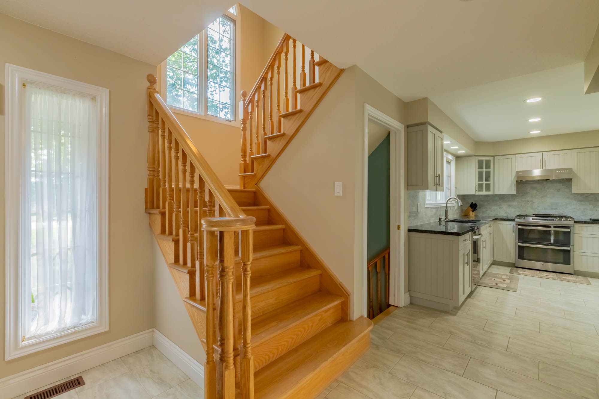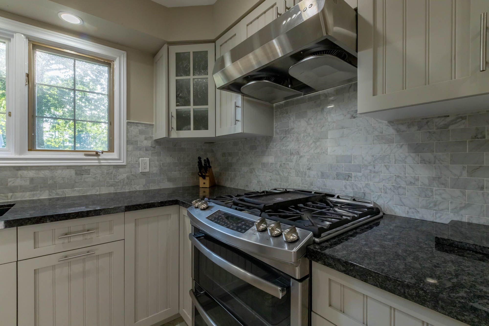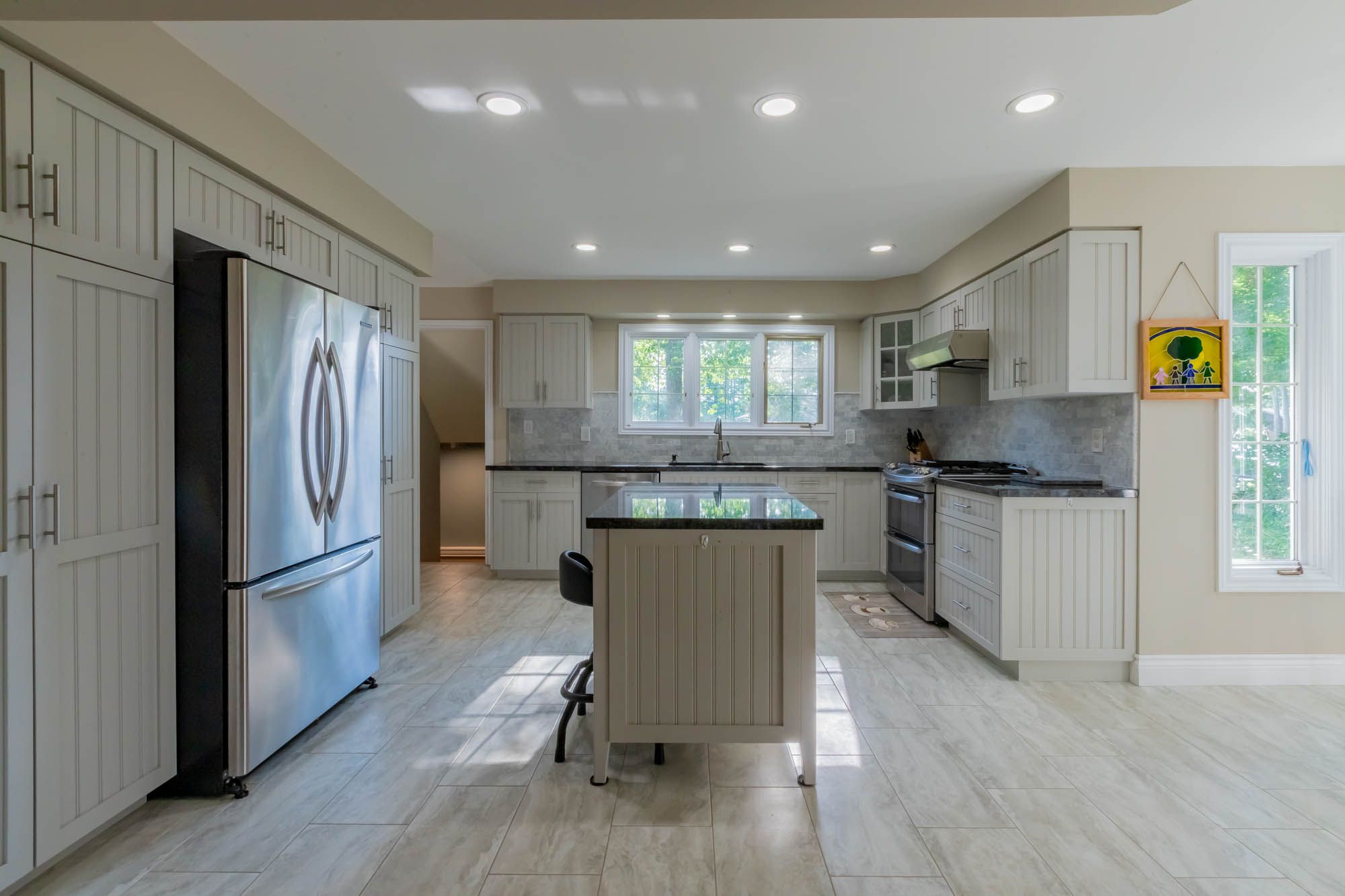 • Modern kitchen with stainless steel appliances and ample storage.