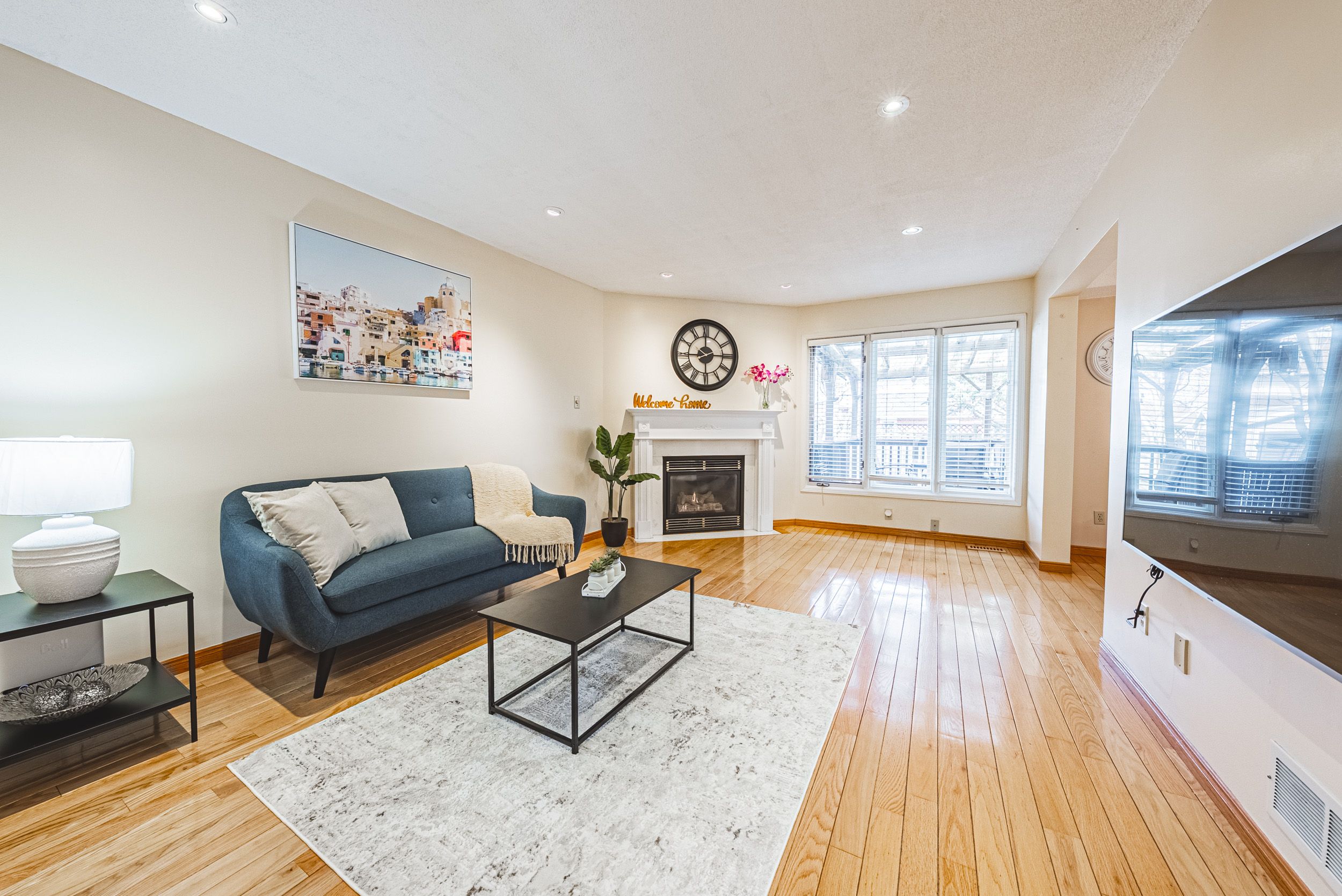 • Bright main floor featuring hardwood floors and a cozy gas fireplace.