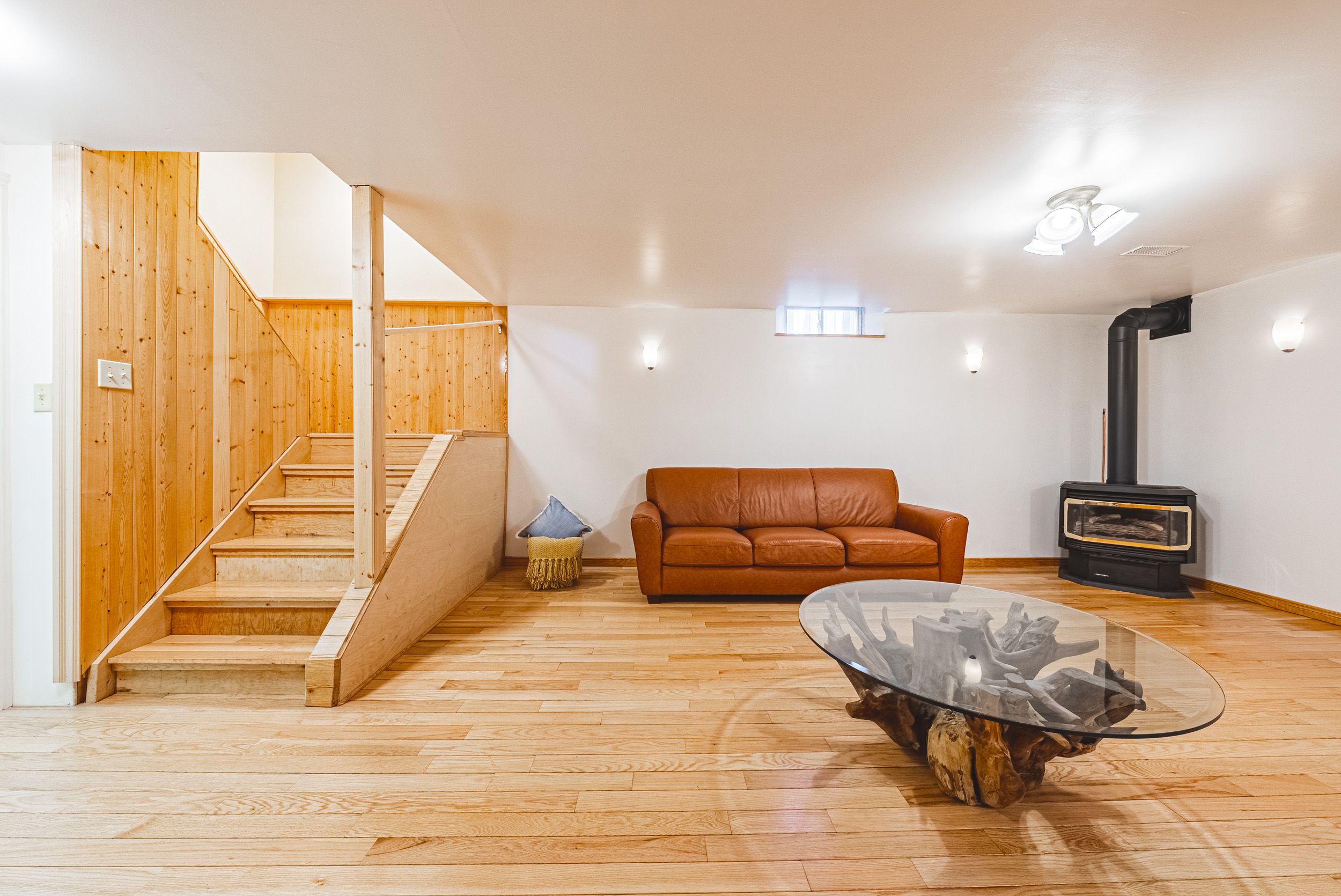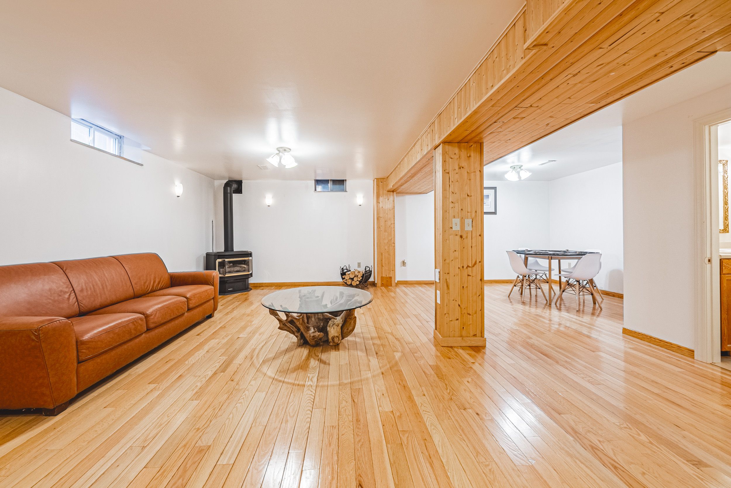 • Bright main floor with hardwood floors and cozy gas fireplace.