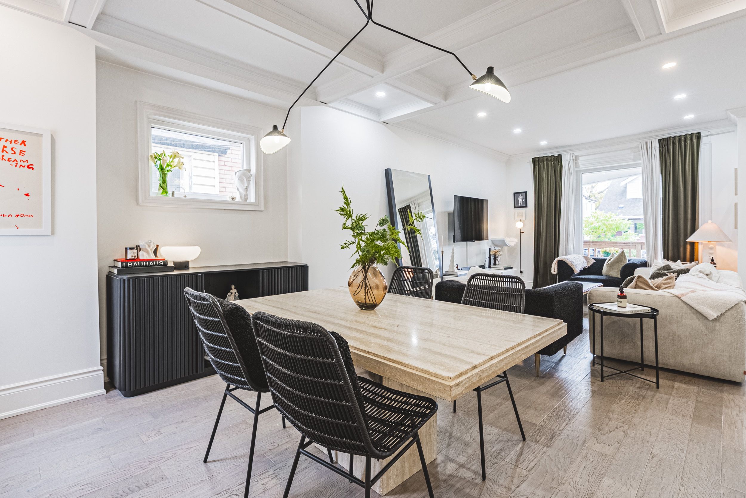 Welcome to 110 kensington avenue south! Set in the heart of the desirable delta neighbourhood,this beautifully renovated home blends 1920s character with modern comfort. Just steps from gage park and a short walk to the shops and cafés of trendy ottawa street, this property offers the perfect mix of charm, convenience, and community. Curb appeal shines with an inviting front porch, beautifully framed with exterior lighting. Inside, bright open-concept living features stunning engineered hardwood flooring, fresh paint, crown moulding, baseboards, and elegant trim. The dining room highlights a sophisticated coffered ceiling with a statement light fixture-ideal for entertaining. The kitchen impresses with white cabinetry, pantry, quartz countertops, stainless steel appliances, double sink, and modern backsplash, with a walkout toa private, fenced backyard complete with a patio-perfect for relaxing or hosting. Additional updates include newer windows and exterior doors, newer shingles, upgraded electrical and plumbing fixtures. Located in a family-friendly neighbourhood surrounded by mature trees,trails, parks, schools, and transit, this home offers classic charm, thoughtful upgrades, and easy access to the best of hamilton living. Come see for yourself.