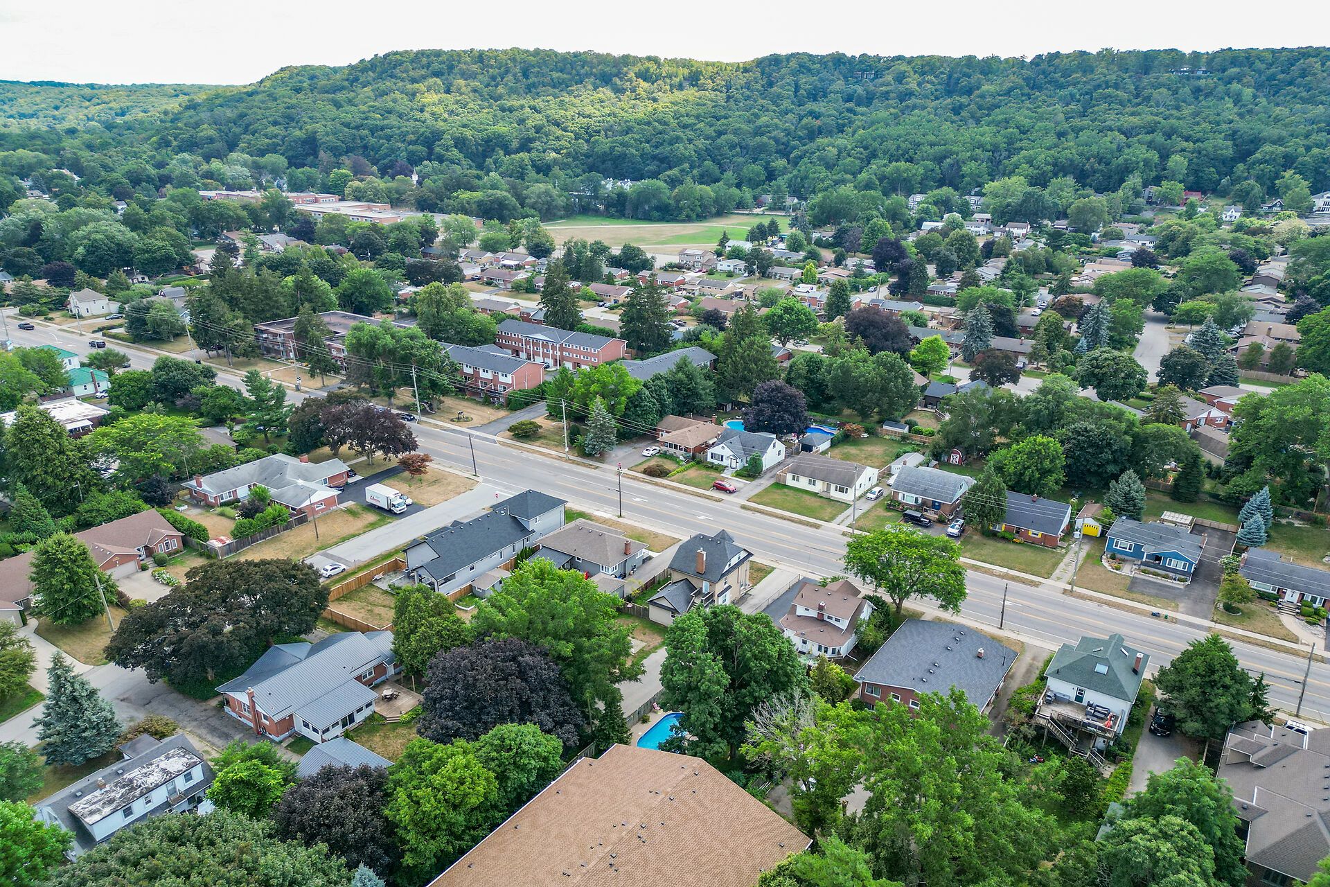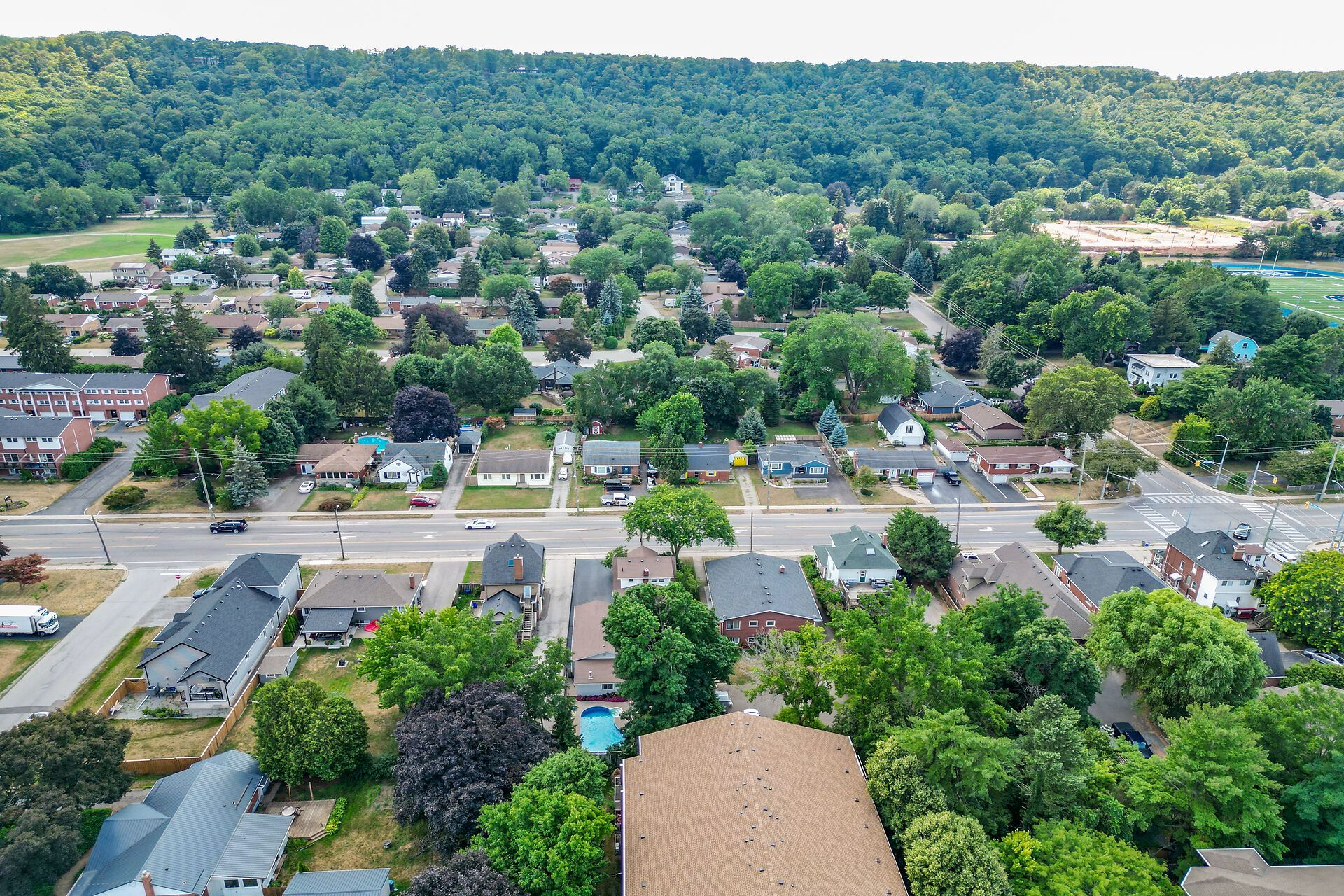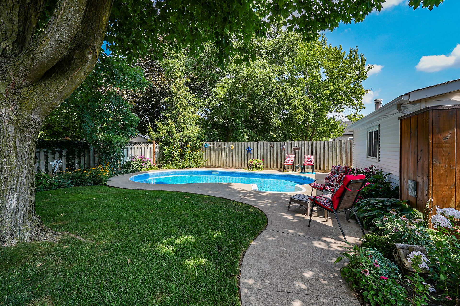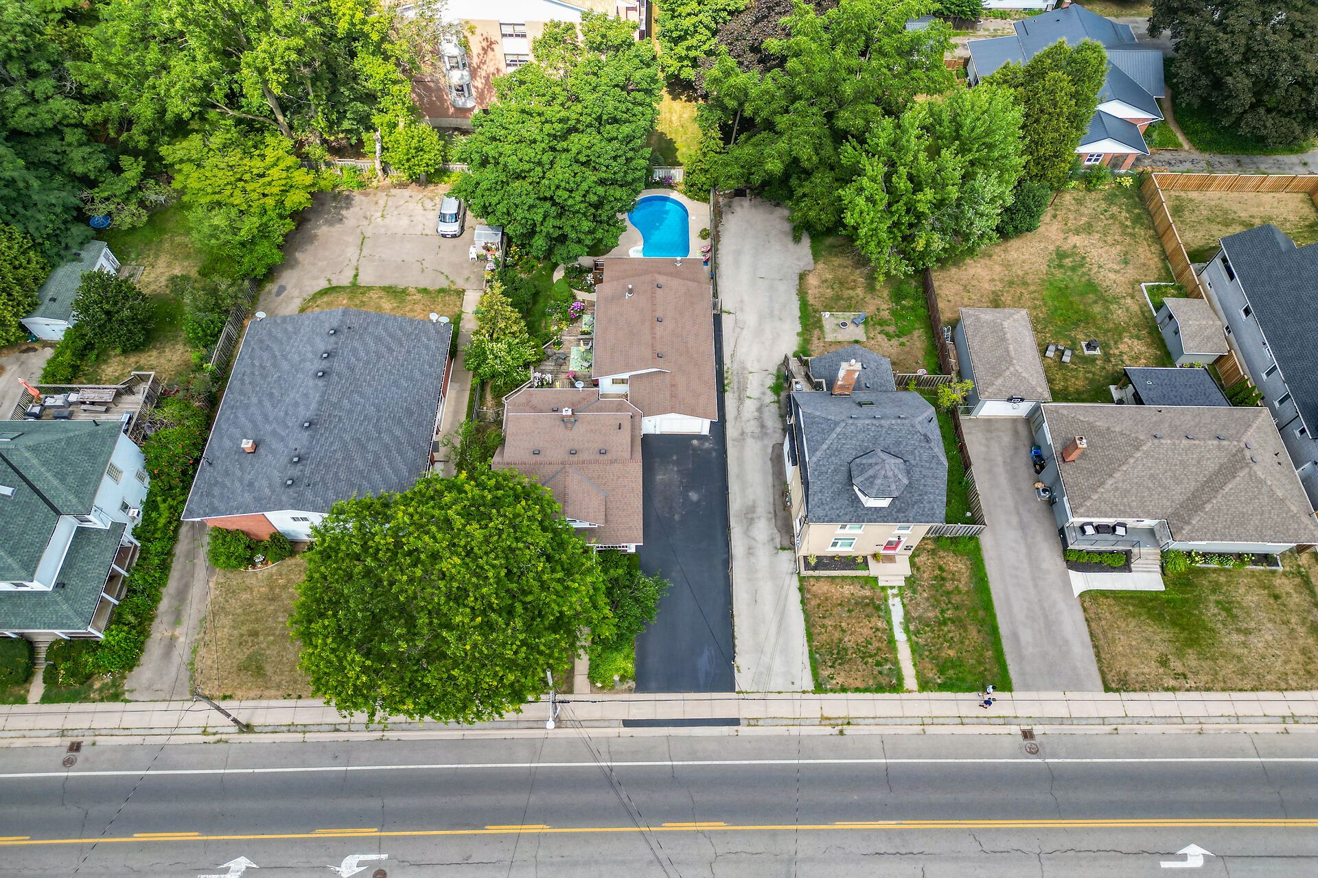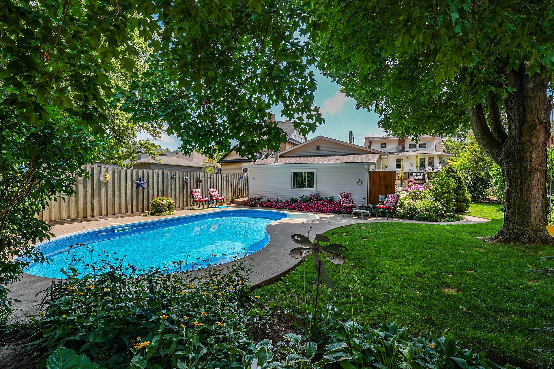 Welcome to 110 livingston avenue - a gracious grimsby residence where historic character meets modern comfort. Rich hardwood floors guide you through the open-concept main level, highlighted by an inviting eat-in kitchen with granite countertops, updated cabinetry, and a seamless flow into the family room anchored by a handsome brick natural gas fireplace. The formal living/dining room adds an elegant touch with crown moulding, an electric fireplace, and an abundance of natural light from multiple windows. Upstairs, two charming bedrooms reflect the warmth of a true century home, with the primary suite offering a generous walk-in closet. The lower level extends your living space with a cozy rec room, convenient laundry area, and ample storage. Step from the family room into your own "secret garden" - a secluded, beautifully landscaped retreat designed for both relaxation and gatherings. Enjoy an inground pool, outdoor shower, multiple decks, and a handy change room, creating the perfect backdrop for endless summer days. The expansive outbuilding is a standout feature, offering a heated garage with full electrical service, office space, and a workshop - ideal for a home business, hobbies, creative pursuits, or substantial storage needs. Located just minutes from downtown grimsby's shops, dining, and amenities, and with quick highway access, this home delivers timeless charm, thoughtful updates, and exceptional indoor-outdoor living in one remarkable package.