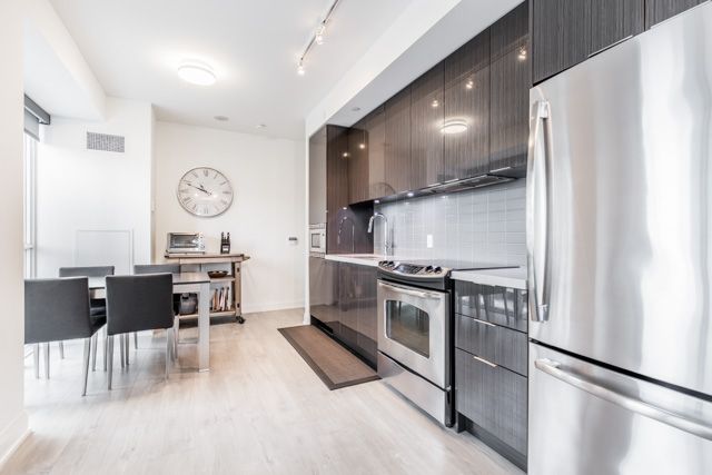 Designer 2 bedroom corner unit in riva del lago, great location close to the lake. Great open layout with lots of natural light, featuring large windows with hunter douglas blinds. Luxurious decor throughout with upgraded kitchen. Ready to move in. Includes 1 parking spot. Gym, party room, pool, sauna, and many more amenities. Close to qew for easy commuter access.