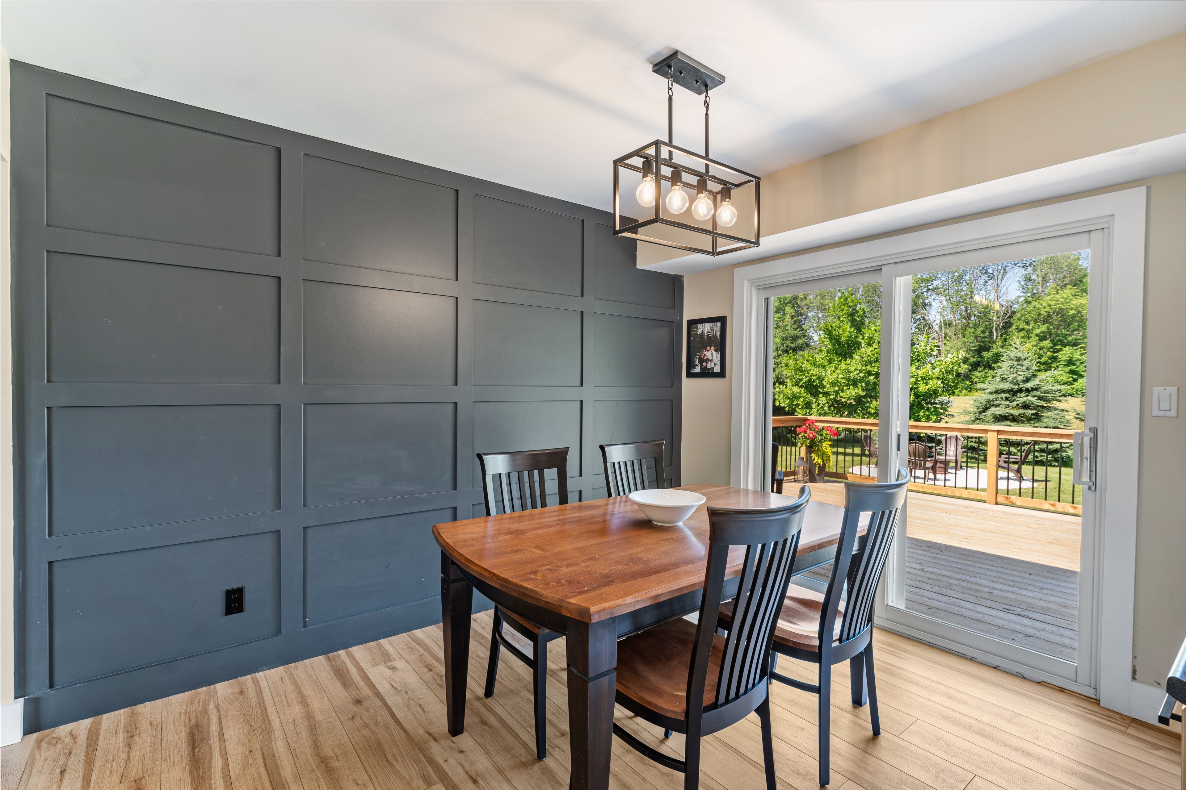 So good you wont be able to take your eyes off it. That's 110 mary avenue. This gorgeously updated 4-bedroom, 2-bathroom bungalow is tucked at the end of a quiet cul-de-sac in one of georgian bluffs' most loved neighbourhoods. Crisp white exterior, bold black accents, natural timber posts, and a welcoming covered porch. Inside, it's modern, fresh, and thoughtfully designed with true one-floor living and a finished basement for bonus space. The main floor features stunning luxury wide plank vinyl flooring (2024), black soundproof solid-core interior doors (2025), and fresh white wood trim throughout. The sunny living room is anchored by a striking black accent wall, and the dining room brings the drama with coffered black wall paneling - high style in all the right places. The kitchen is white and bright with a tile backsplash, matte black sink, brand new appliances (2025), and sliding glass doors leading to a huge 450 sq ft raised deck (2025) with no backyard neighbours. Three bedrooms on the main floor include a primary with his and her closets and a private 3-piece ensuite. Two more generous bedrooms share a 4-piece bath. You've got main floor laundry and a mudroom with inside access from the garage - everyday living made easy. Downstairs? A cozy rec room with a gas fireplace, a fourth bedroom, an insulated workshop, and updated flooring (2025) with dry-core subfloor to keep things warm and dry all year long. All the big stuff is done: windows (2024), front door (2024), garage door (2022), attic insulation (2024), and sump pump (2023). Big private lot. Mature trees. Great neighbours. Fibre optic internet, and yes, skipthedishes delivers. It even comes with an invisible fence system for your pups! This is a turn-key home in a location you'll love - and it's ready for you to move right in.