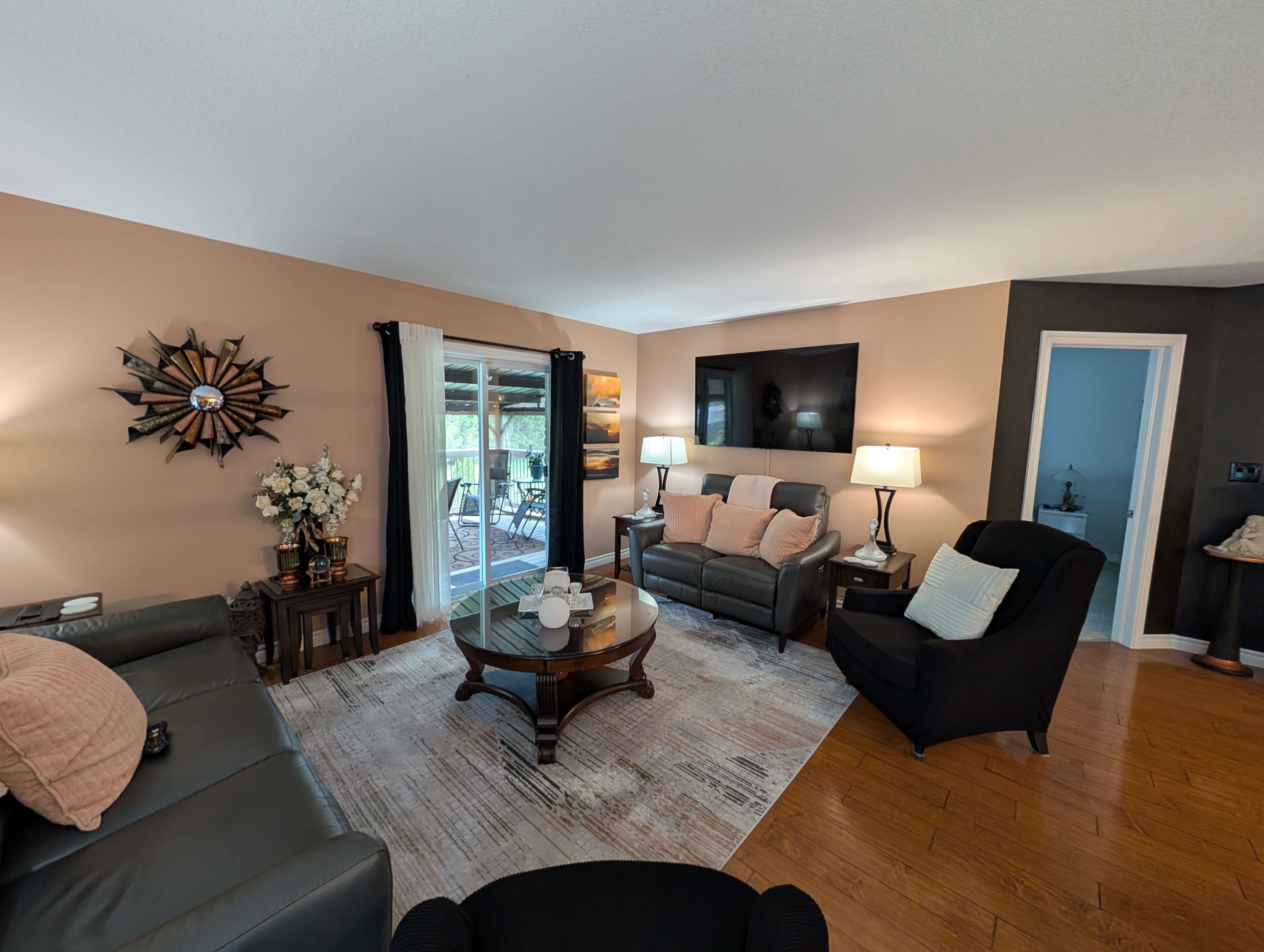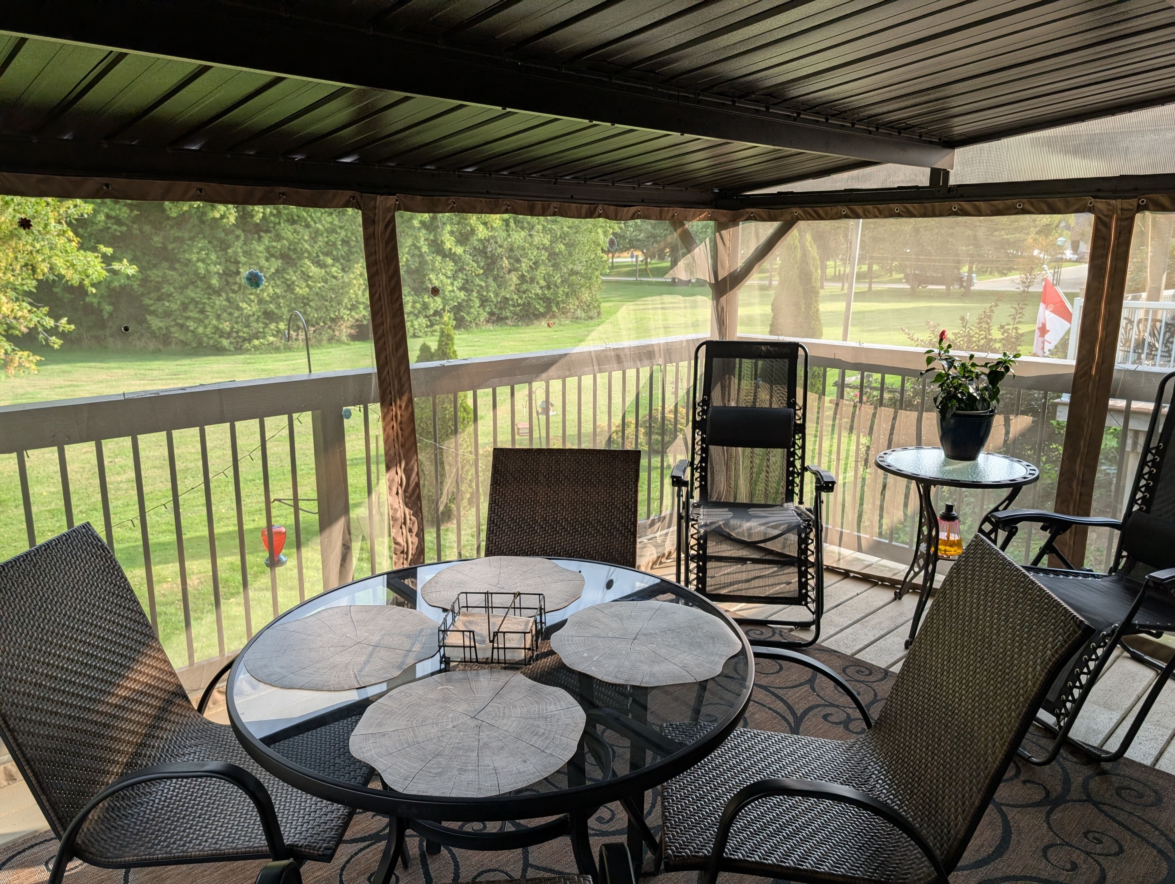 • Back deck with screened-in gazebo, perfect for summer evenings and relaxation.