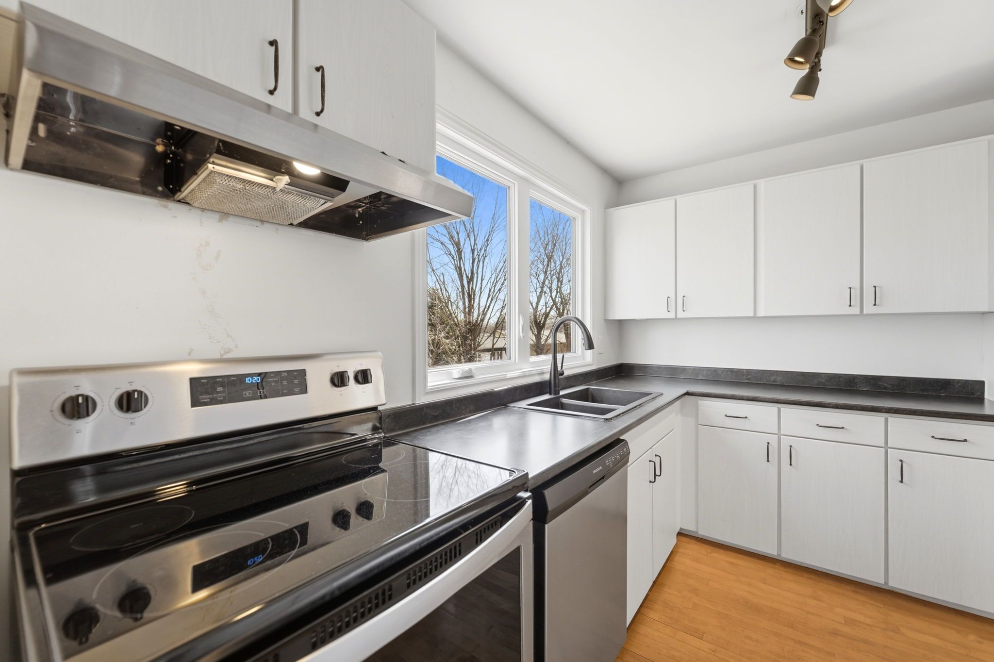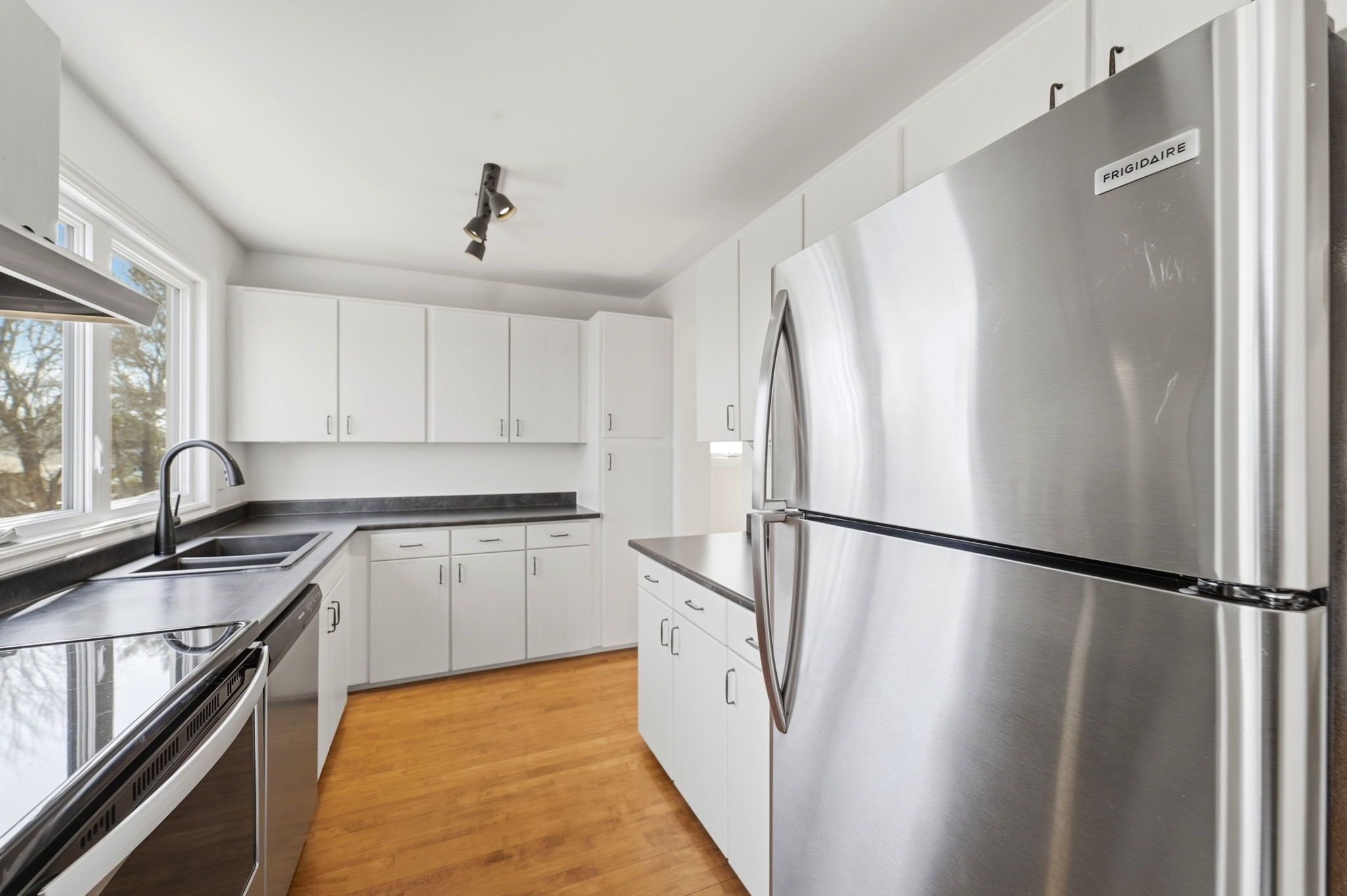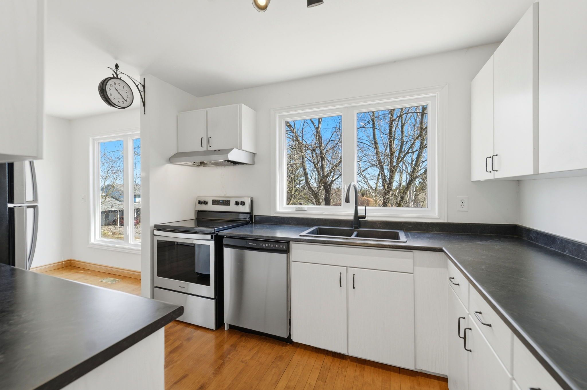 • Spacious kitchen overlooks the backyard, perfect for daily living.