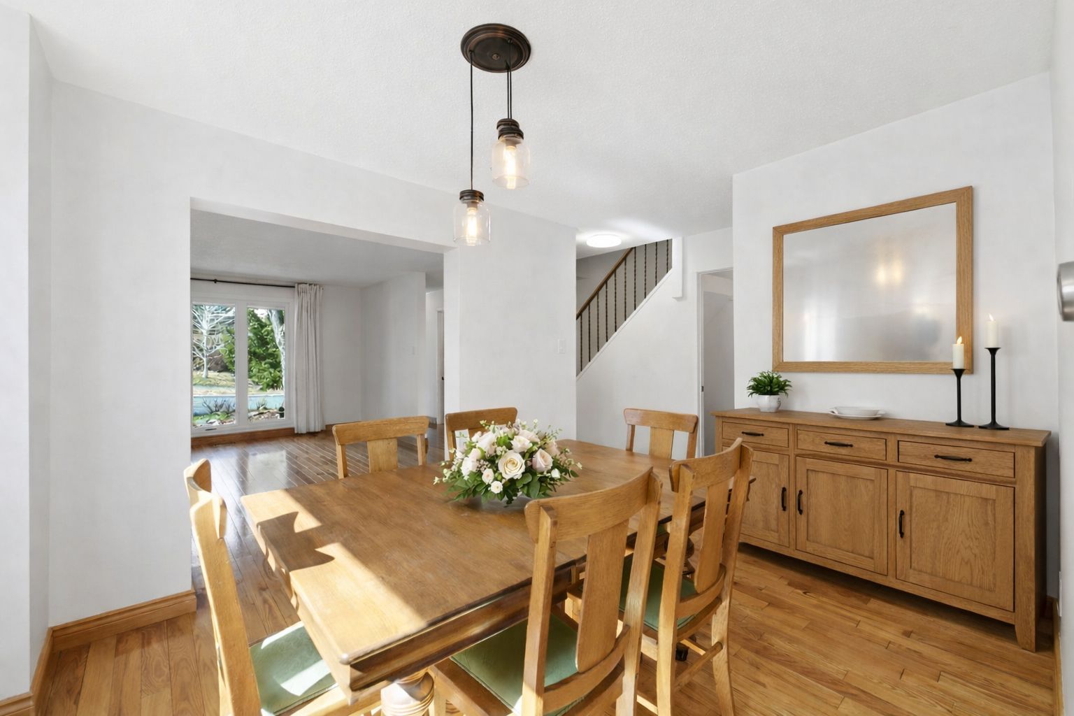 • Bright main level with hardwood floors and defined living spaces.