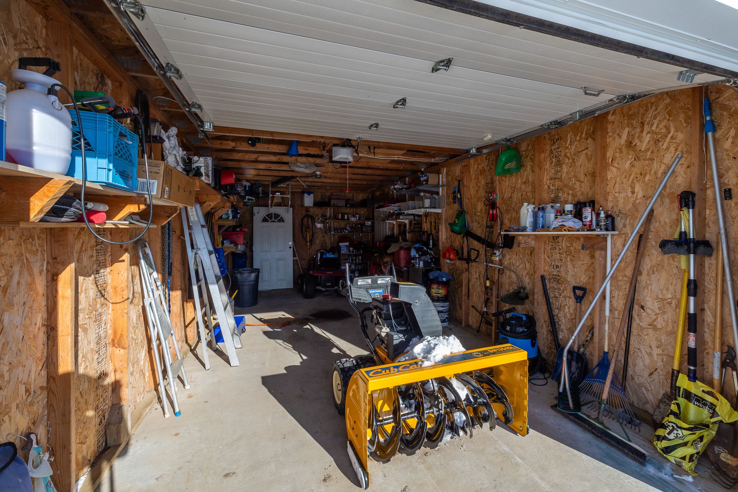 • Detached garage and lean-to shed provide ample storage and workspace.