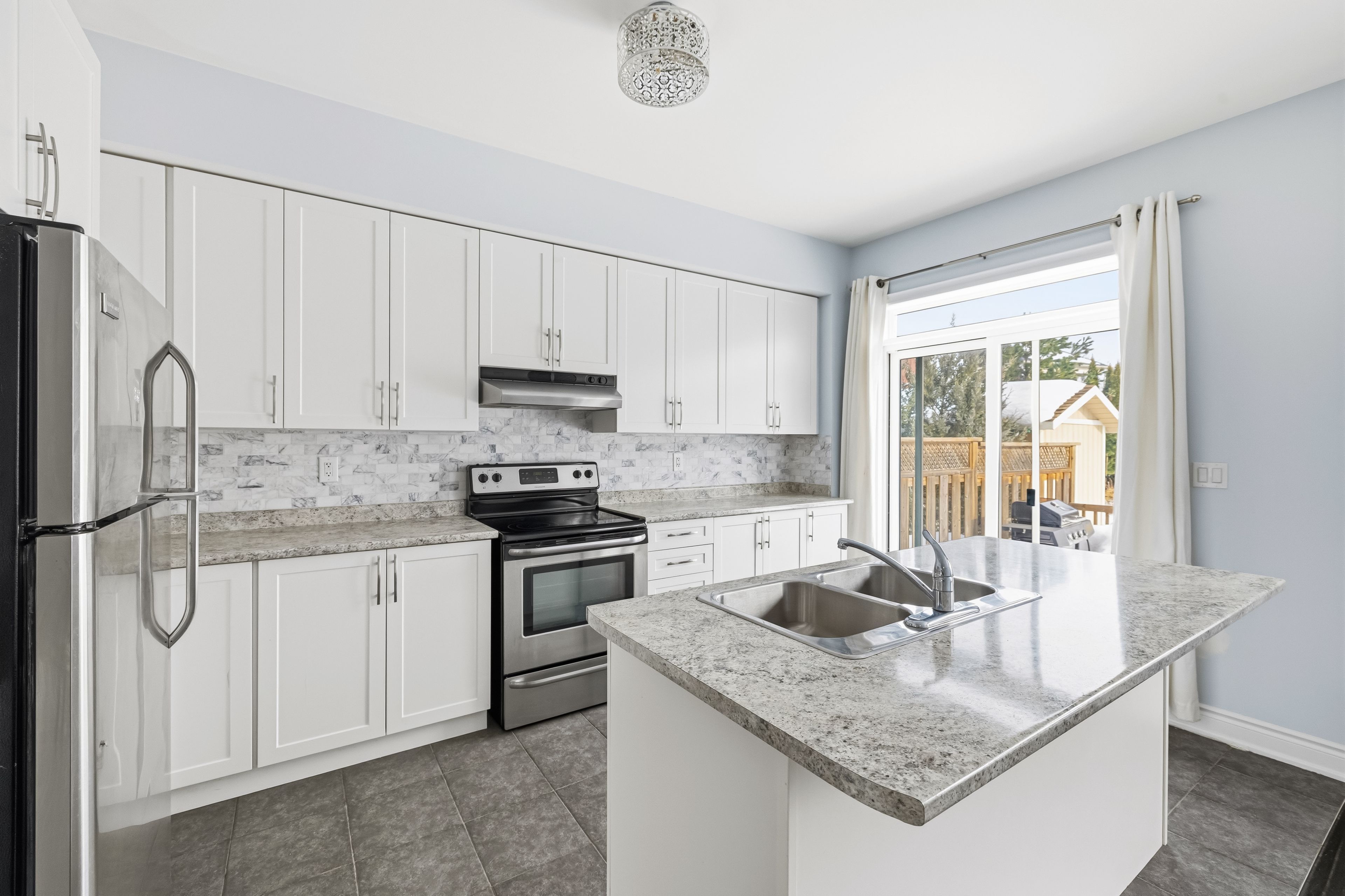 • Walkout from kitchen to a fenced yard for outdoor enjoyment.
