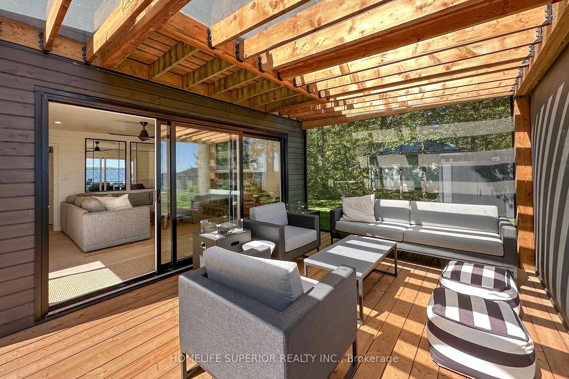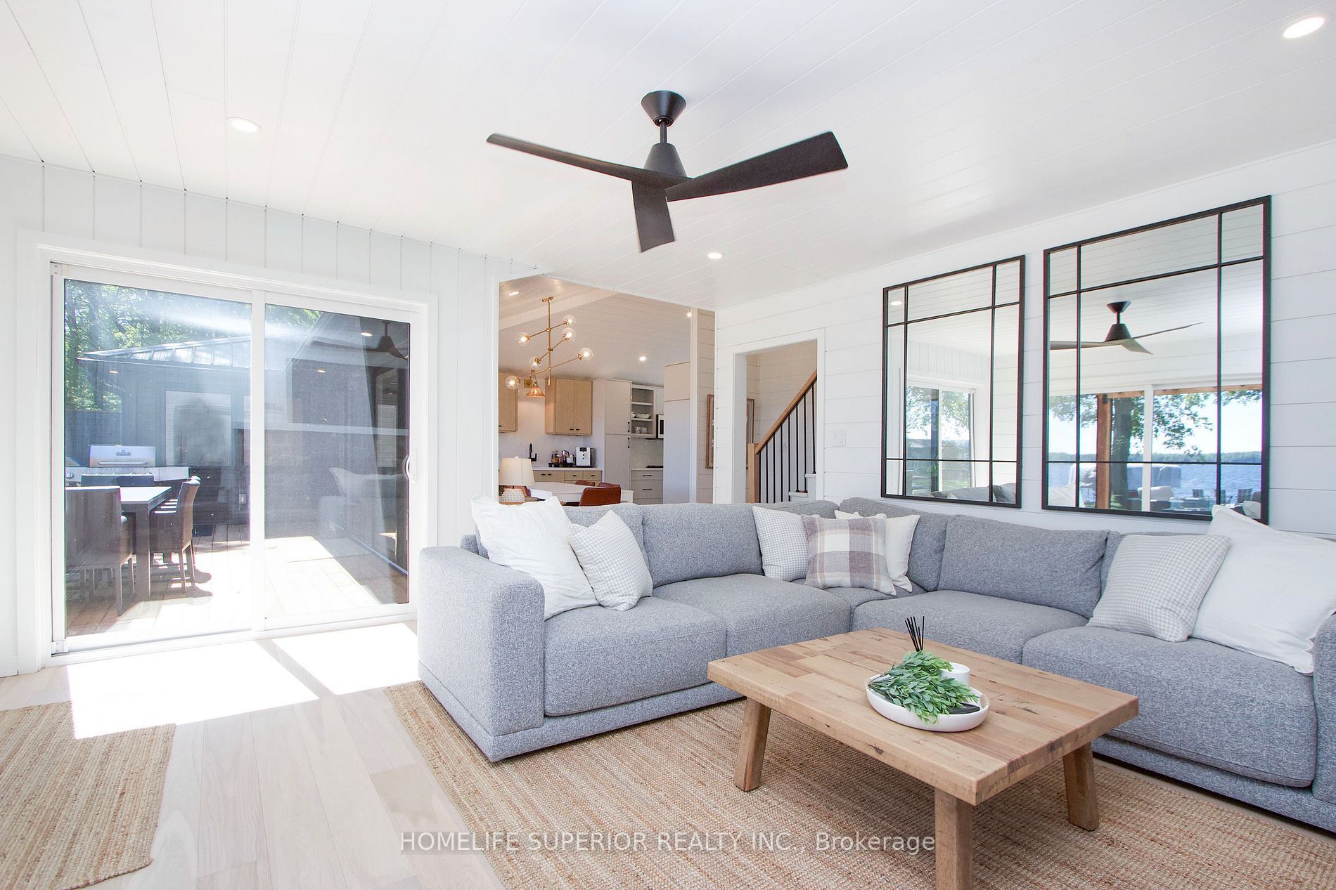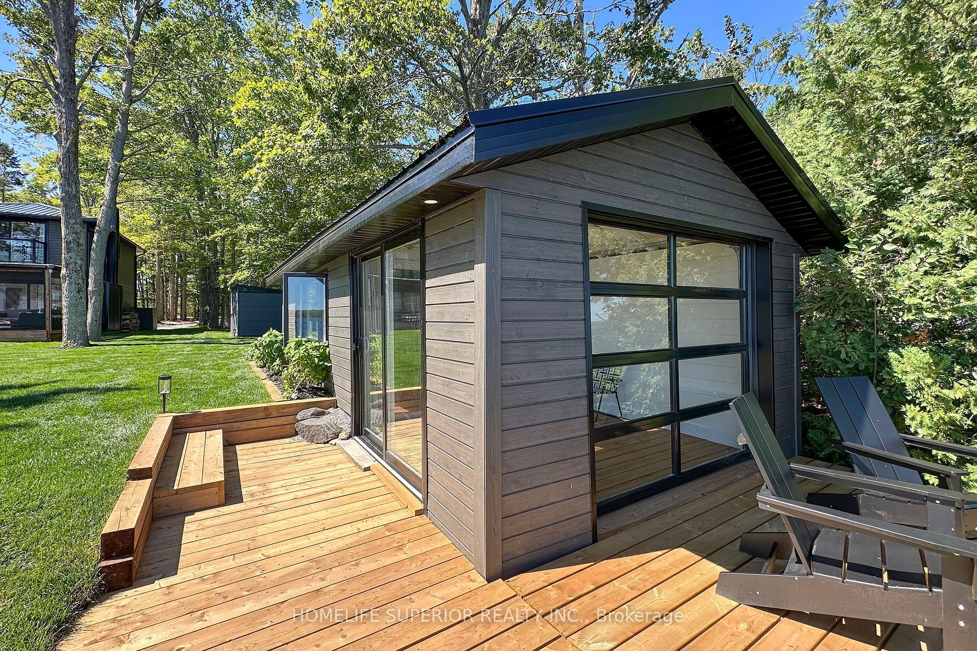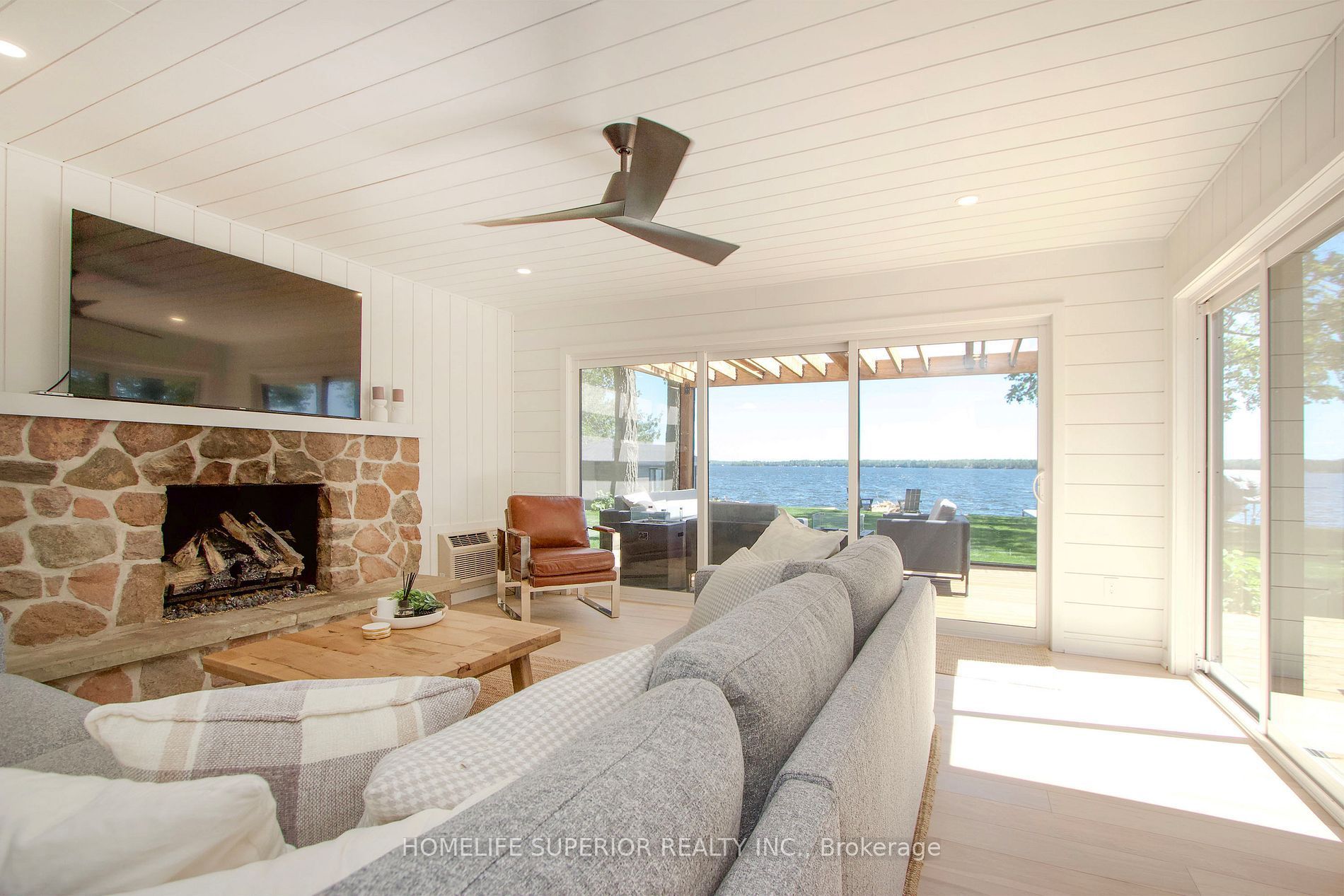 Your luxury lakeside escape awaits! - immaculate 4 bedroom, 4 season waterfront retreat on prestigious balsam lake, the jewel of the kawartha's! Turn key, fully furnished and like new! Screened in sunroom with remote controlled screens. Rogers high speed fibre internet. With 100' of weed free shoreline, 305' depth, breathtaking wide open lake views. Inside discover a bright open concept interior, custom kitchen cabinetry, quartz counters, and premium ge cafe series appliances. Wet bar includes large capacity beverage centre and coffee station. Separate spacious laundry room with pantry. Living room with natural stone fireplace and napoleon propane log set. White oak wide engineered hardwood throughout. Enjoy a multitude of cedar decks along with jacuzzi therapeutic hot tub. Separate garage and modern shed. Exterior includes maintenance free maibec wood siding and metal roof. Professionally landscaped with privacy trees and in ground irrigation system. Indoor contents included, furniture, decor, televisions, bedding, kitchen large and small appliances, cookware and serveware. Exterior contents include furniture, bbq, pizza oven, outdoor patio furniture and muskoka chairs. Efficient heating and air conditioning units. Pristine balsam lake is at the top of the trent severn waterway, perfect for boating enthusiasts and swimmers alike!
