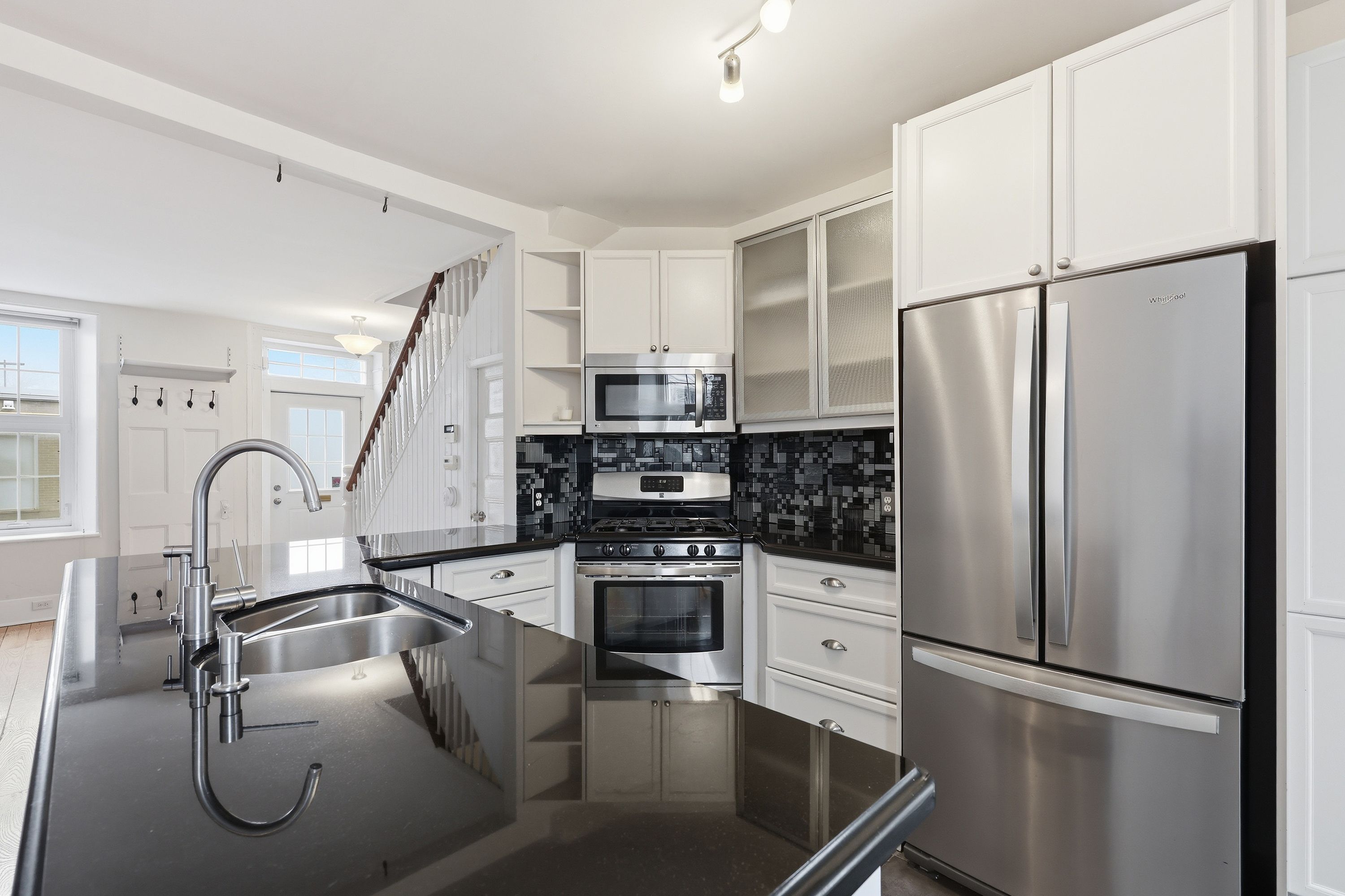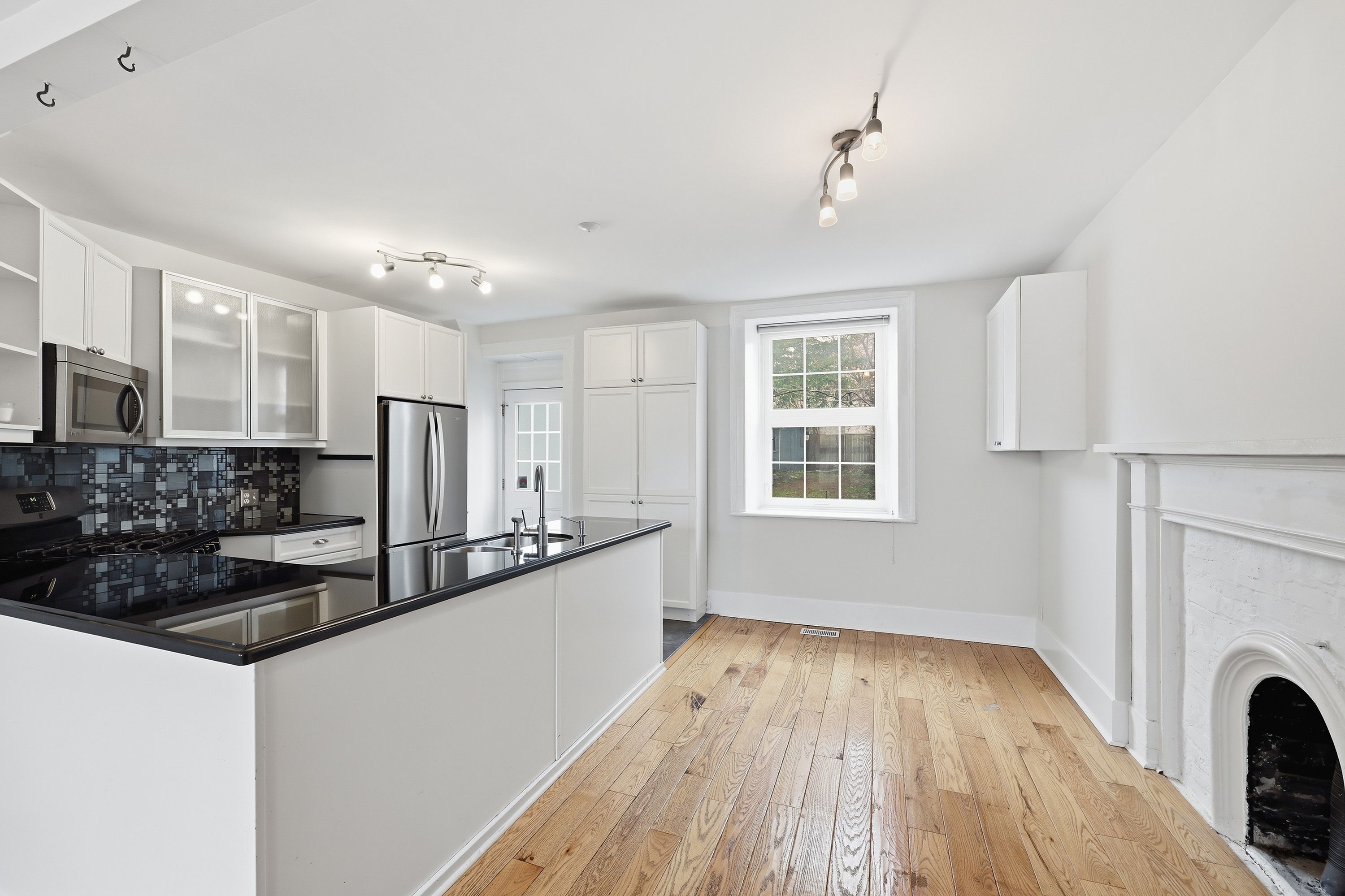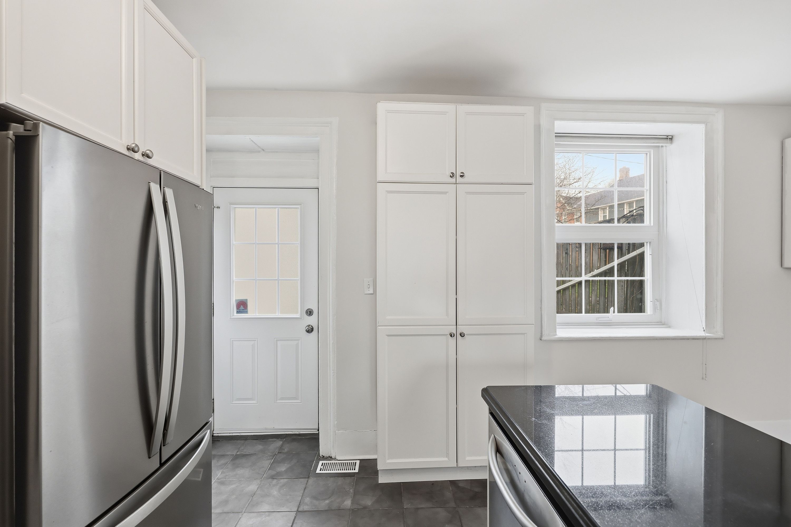 • Updated kitchen with gas stove, granite countertops, and ample storage.