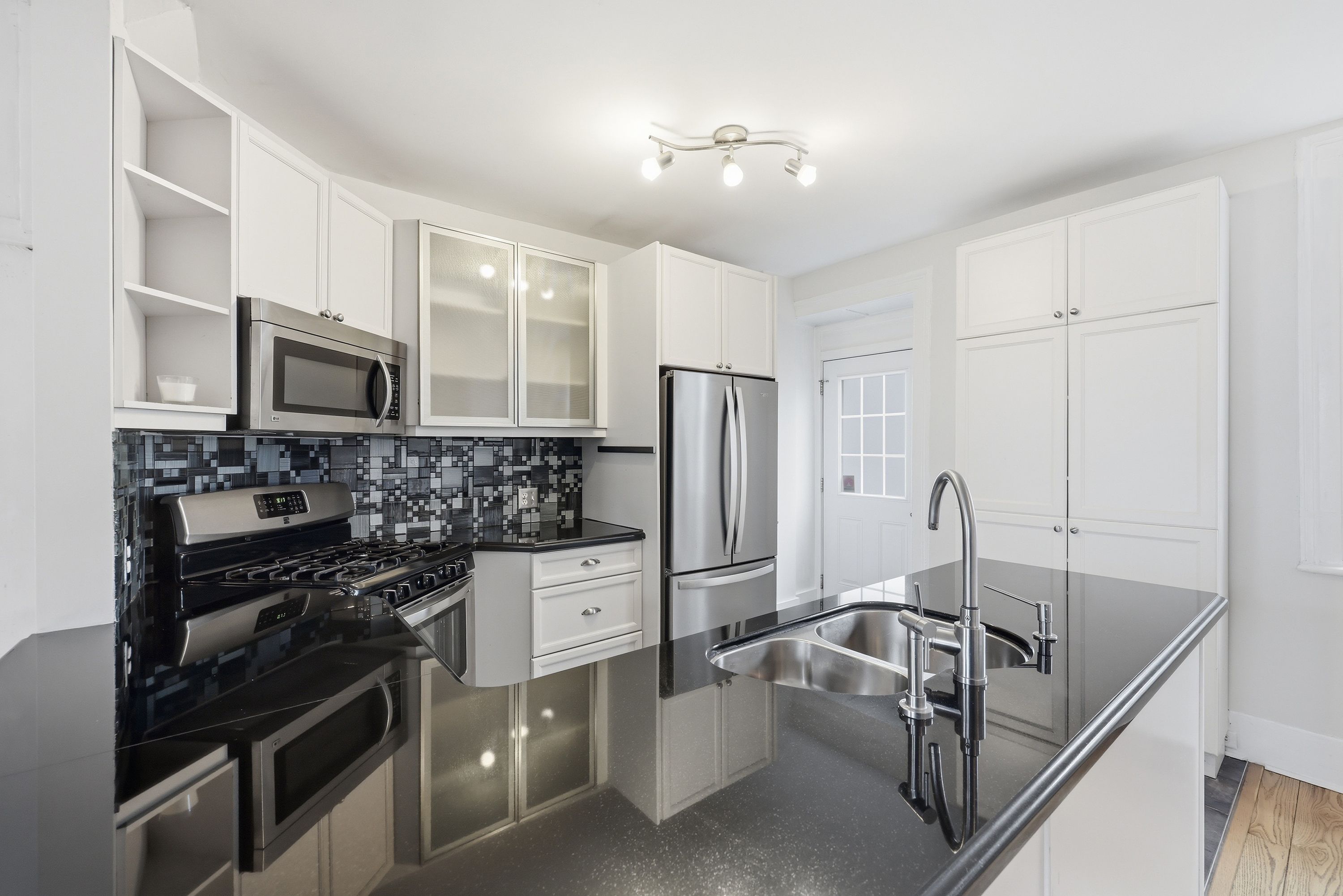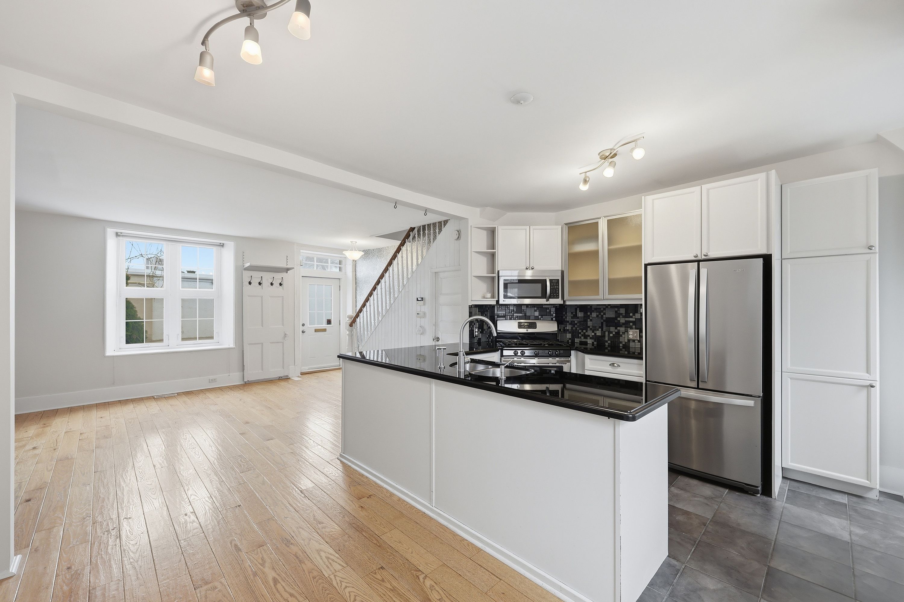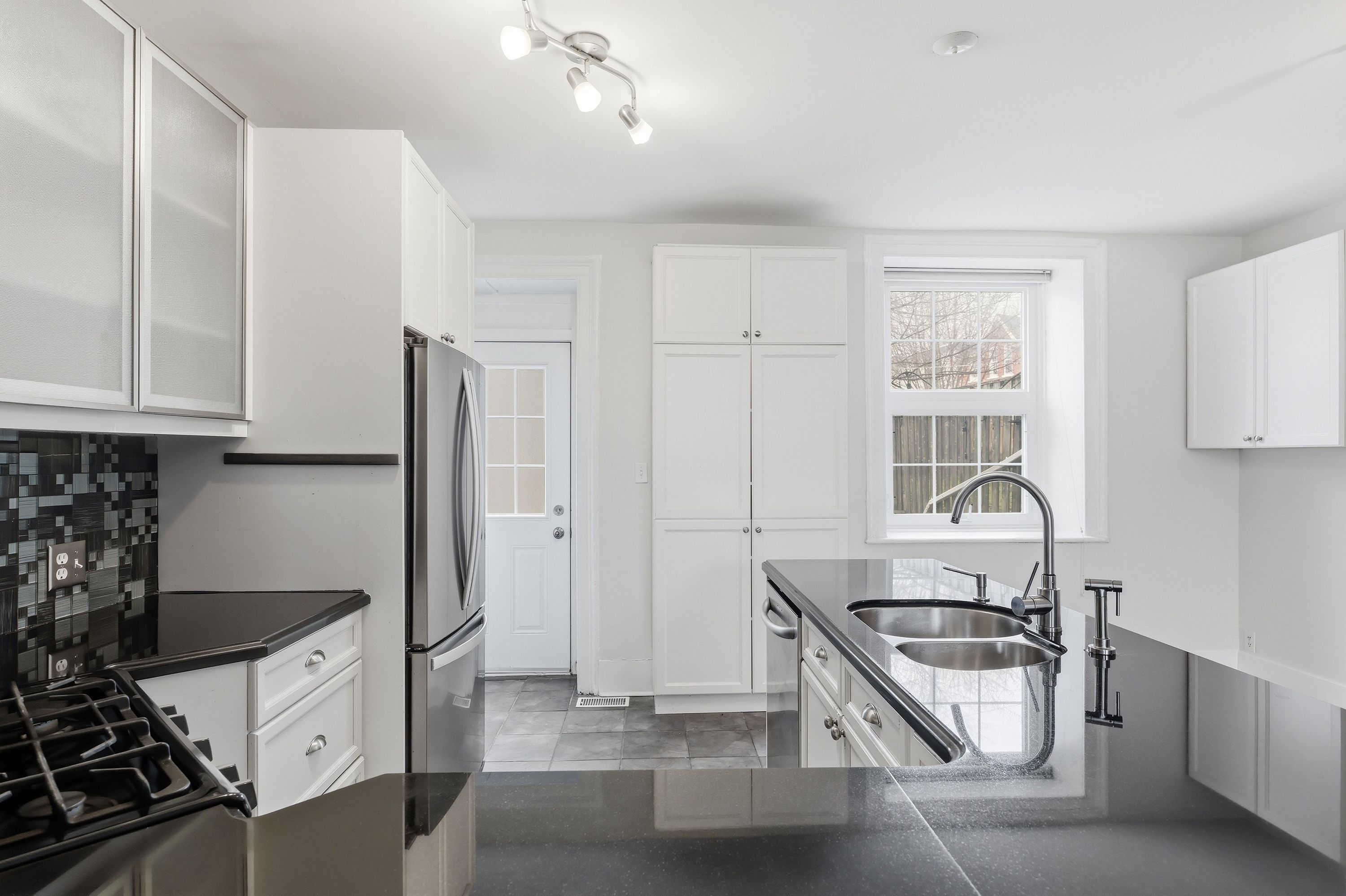 • Updated kitchen with gas stove, granite countertops, and ample storage.