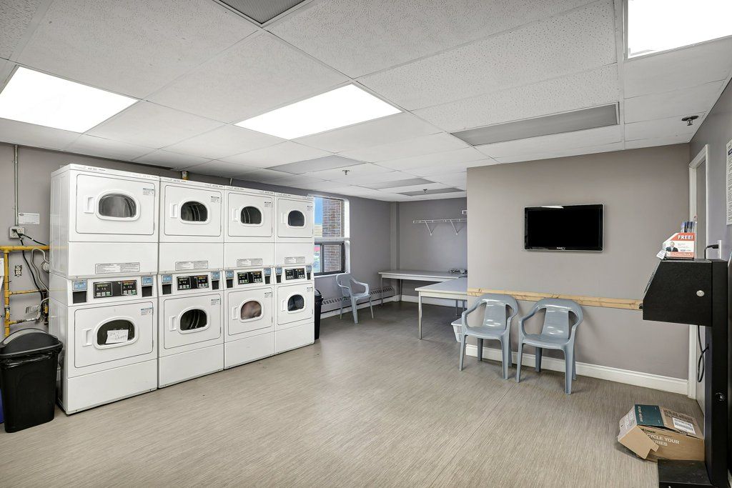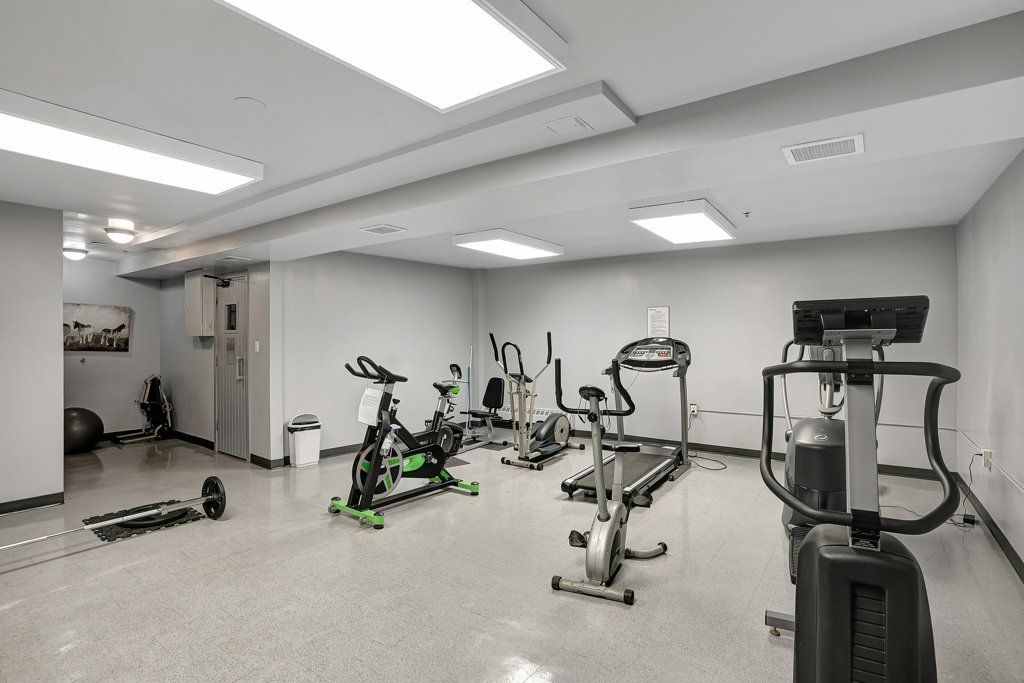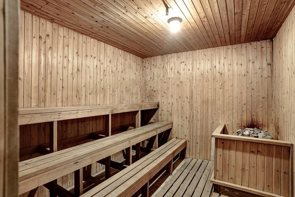 • Building amenities include a gym, sauna, party room, and pool.