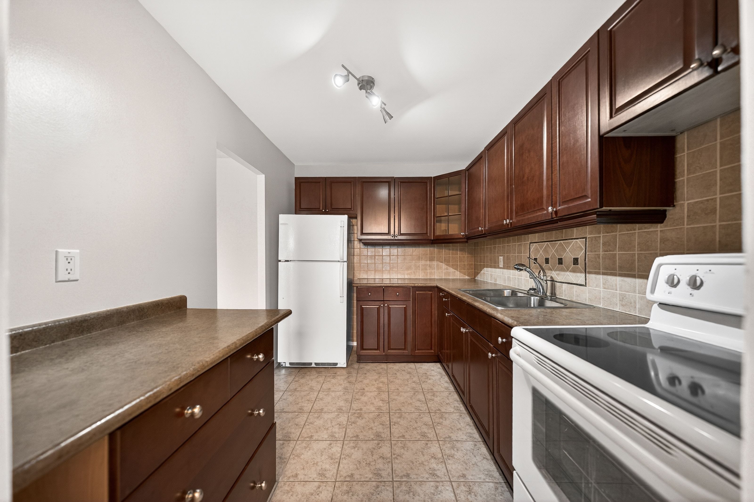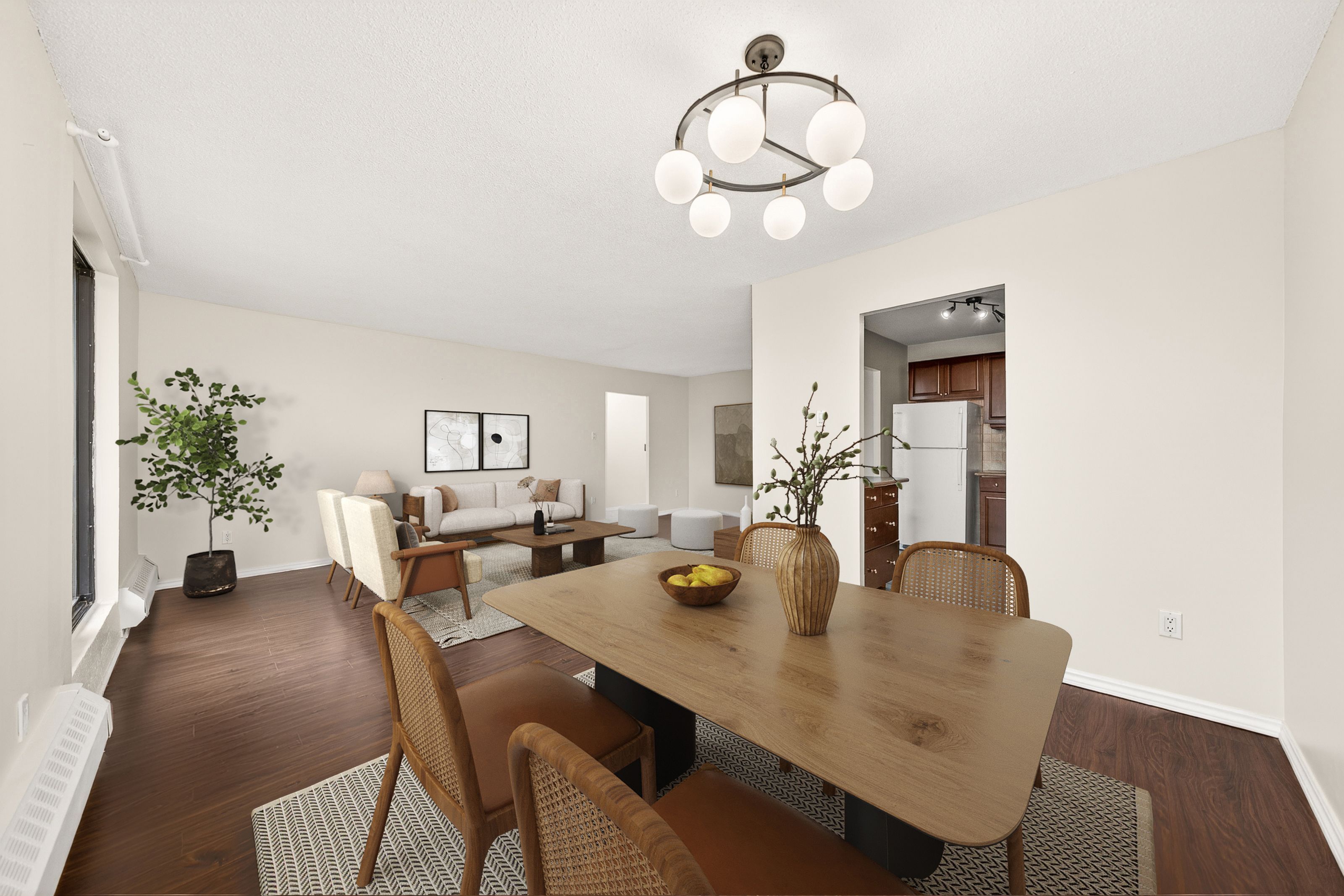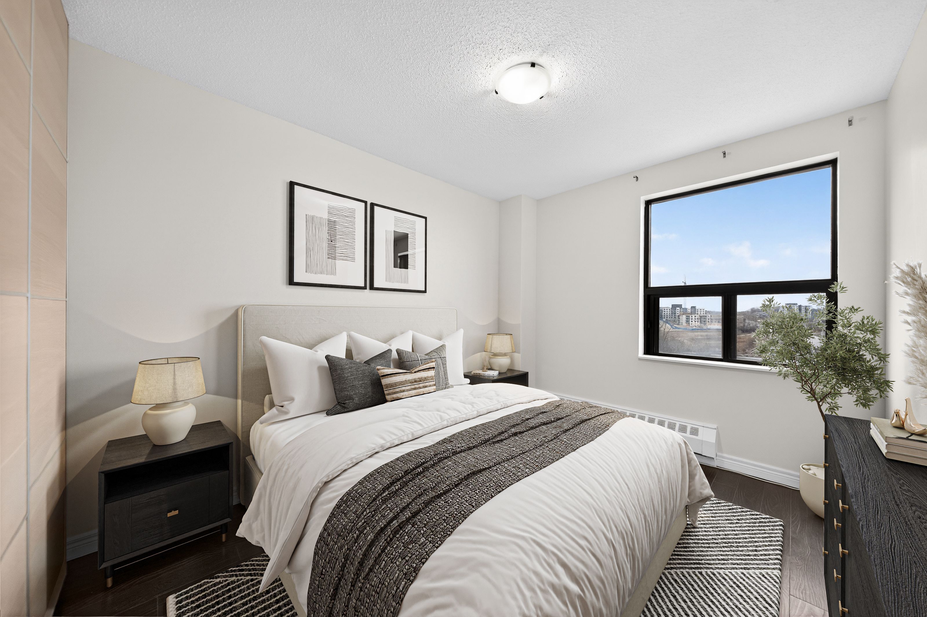 • Sun-filled 2-bedroom condo with spacious, open-concept living and dining areas.