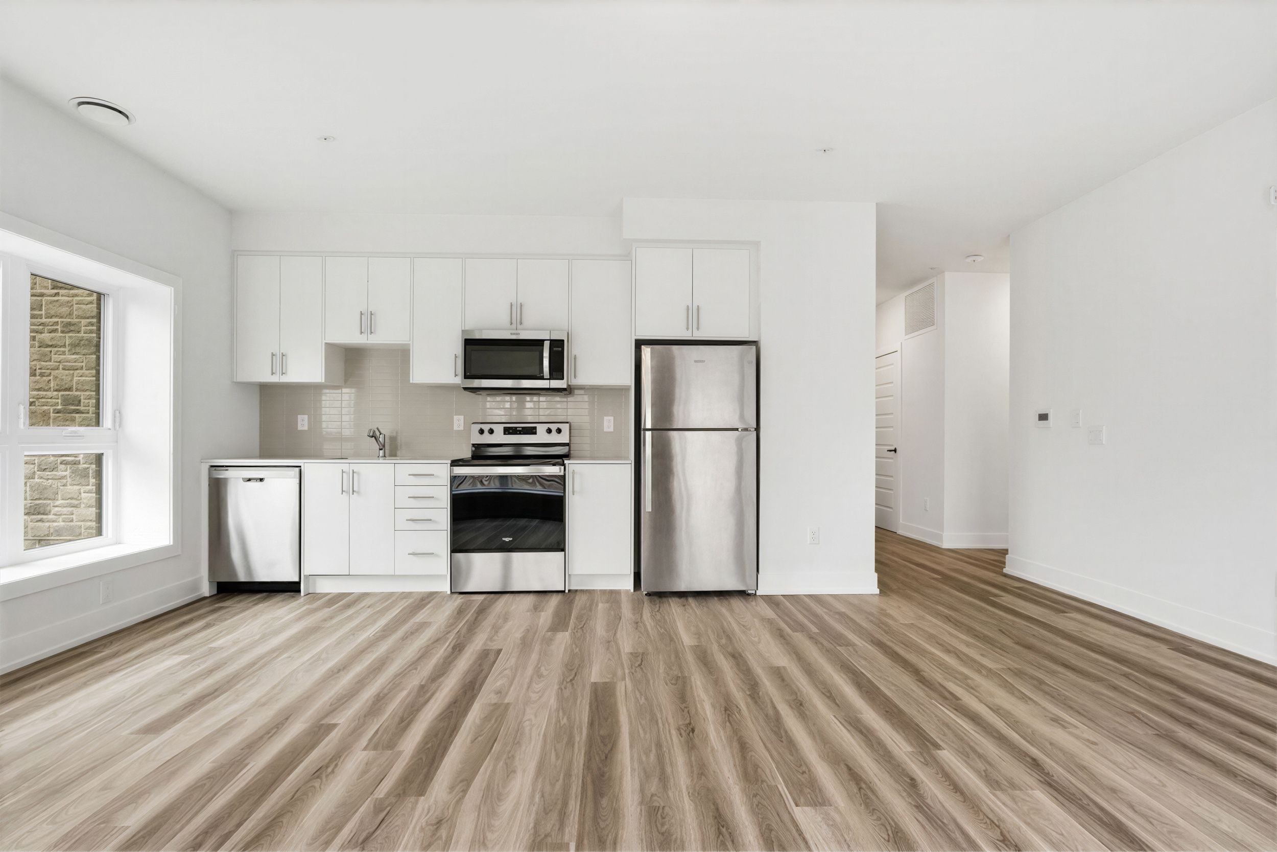 Experience spacious, low-maintenance living in this brand-new 897 sq ft 2-bedroom suite for sale by reid's heritage homes. This bright, open-concept floor plan is thoughtfully finished with premium quartz countertops, stainless steel appliances, and durable luxury vinyl plank flooring throughout. The generous layout offers plenty of room for a growing family, guest space, or a home office. The true highlight is the private setting, as the unit backs directly onto a lush, protected ravine for scenic forest views and a level of privacy rarely found in the city. Complete with in-suite laundry and one dedicated parking space, this home offers a perfect blend of modern style and natural tranquility minutes from hwy 7/8 and the grand river trail system. The purchase price set out above is net of hst. How hst will be addressed will be determined at the time the purchaser enters the agreement of purchase and sale, based on the status of the existing and proposed hst rebates announced by the provincial and federal governments. Open house april 25 & 26 - 12-4pm