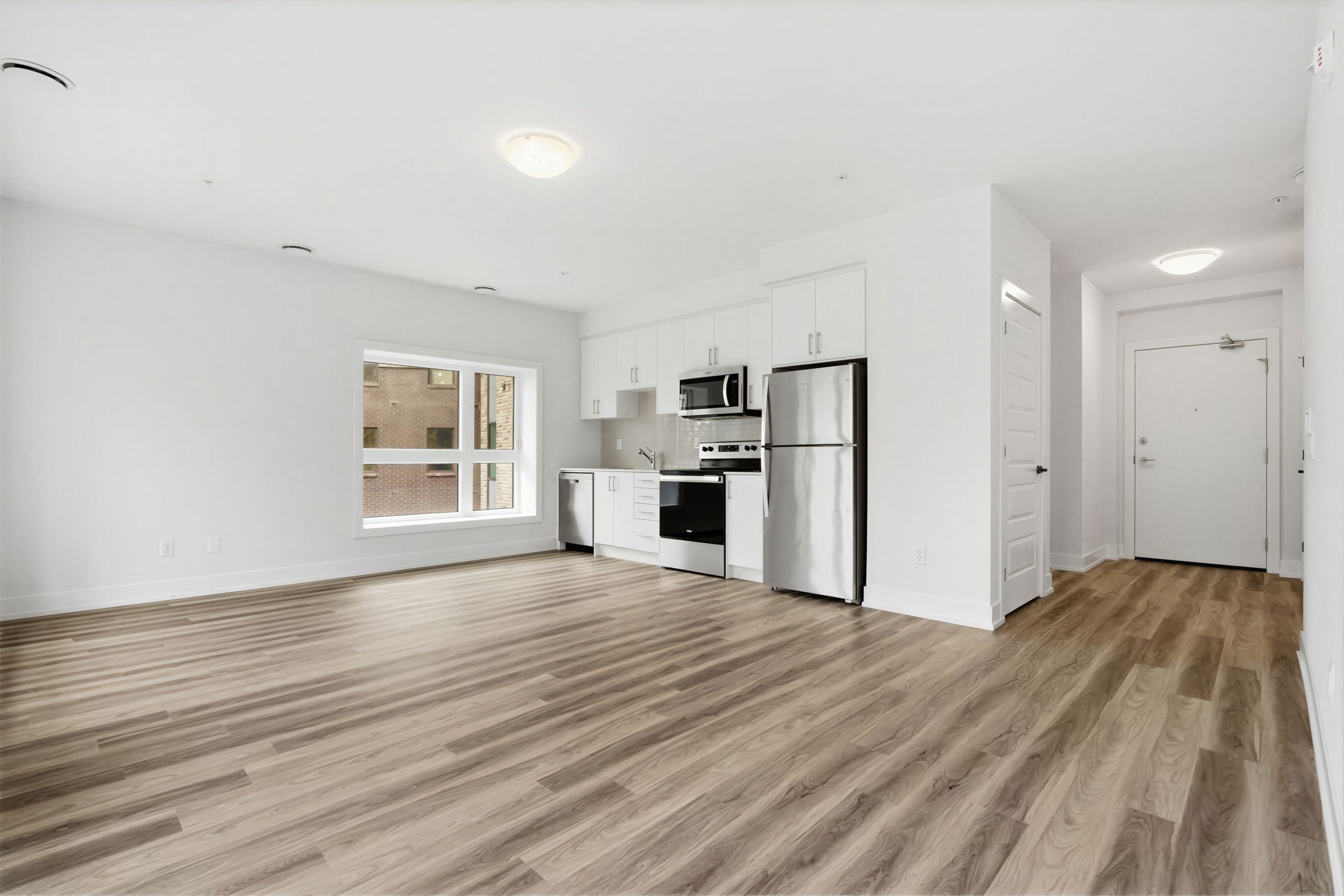• Spacious 897 sq ft 2-bedroom suite with open-concept layout.