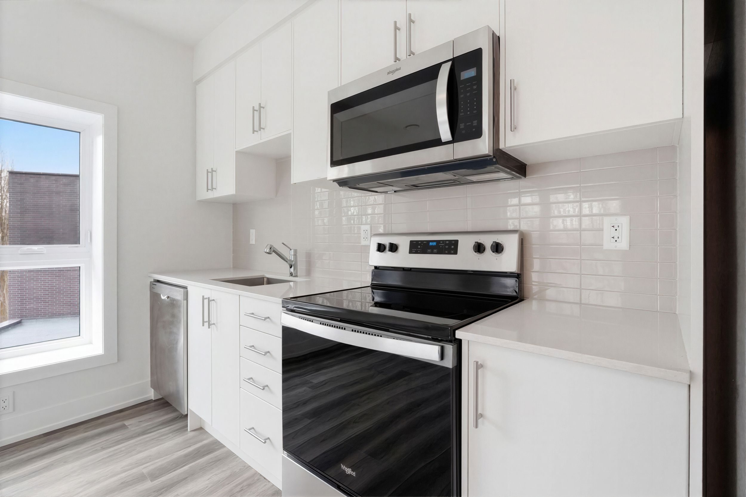 • Premium quartz countertops and stainless steel appliances for modern living.