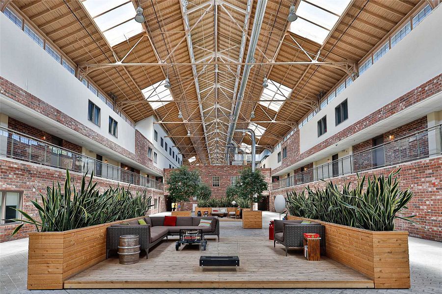Welcome to the historic foundry lofts a rare and authentic conversion of a 19th-century train factory! This stunning loft blends history with modern living, featuring soaring ceilings, original exposed brick, over sized warehouse-style windows, and exposed duct work for true industrial charm. Boasting an open-concept layout, this 1 bedroom unit offers approximately 767 sq ft of living space plus and parking. One of the most striking features of the foundry lofts is the incredible 16,000 sq ft indoor atrium, complete with patio seating and lush greenery currently undergoing exciting renovations that will only add to its appeal! Located in a vibrant and convenient neighborhood, you're steps to ttc, minutes to the bloor subway line, and surrounded by shops, parks, cafes, and all urban amenities. With low maintenance fees and unbeatable character, this is a must-see property you'll fall in love with at first sight!