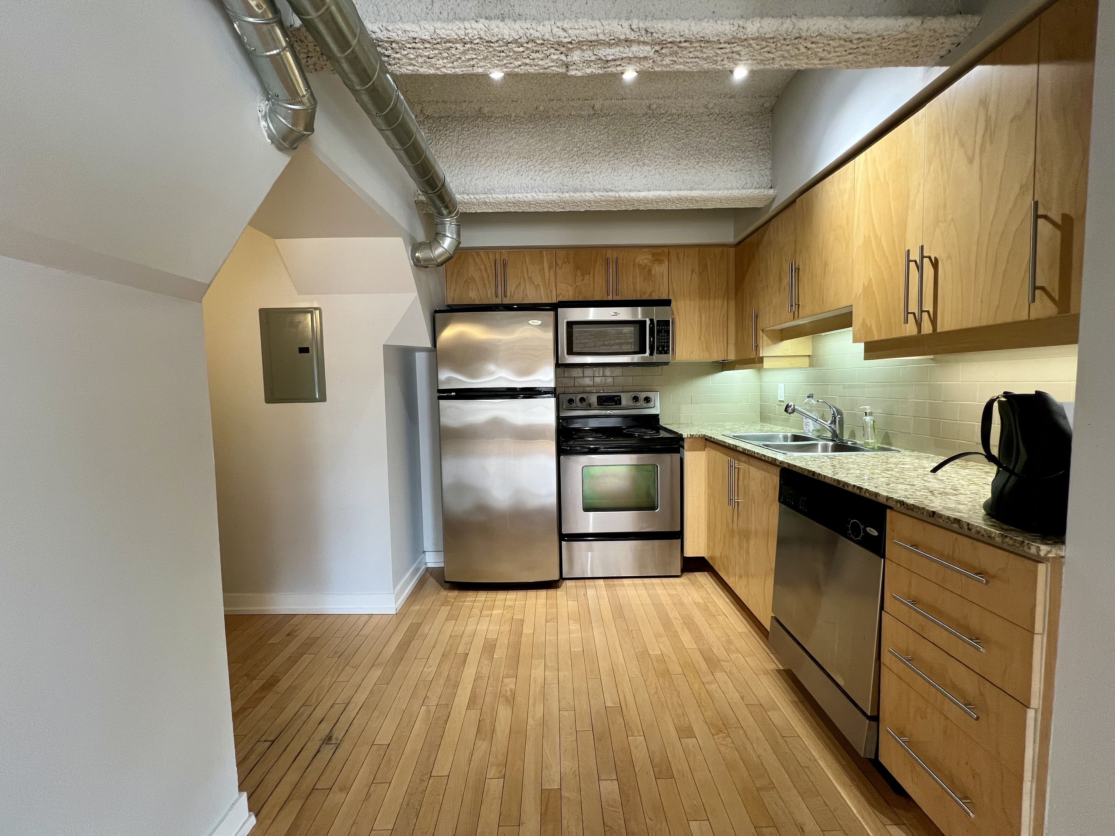 Rare opportunity to live in historic foundry lofts! Light filled condo in a 19th century train factory conversion. This one bedroom + den loft is everything you can dream about - south west corner unit flooded with natural light with warehouse windows, red antique brick, 4 pc bathroom with jacuzzi tub, modern upgrades. Absolutely stunning unit! Work and relax in a central, architecturally stunning, sunlit 16,000 sq ft atrium w/ wifi. Building amenities include well equipped gym, party room & media room. Centrally located - balzac's coffee & event space outside your door. Steps to children's playground, earlscourt park, ttc. Close to trendy junction, geary ave, corso italia, shopping.