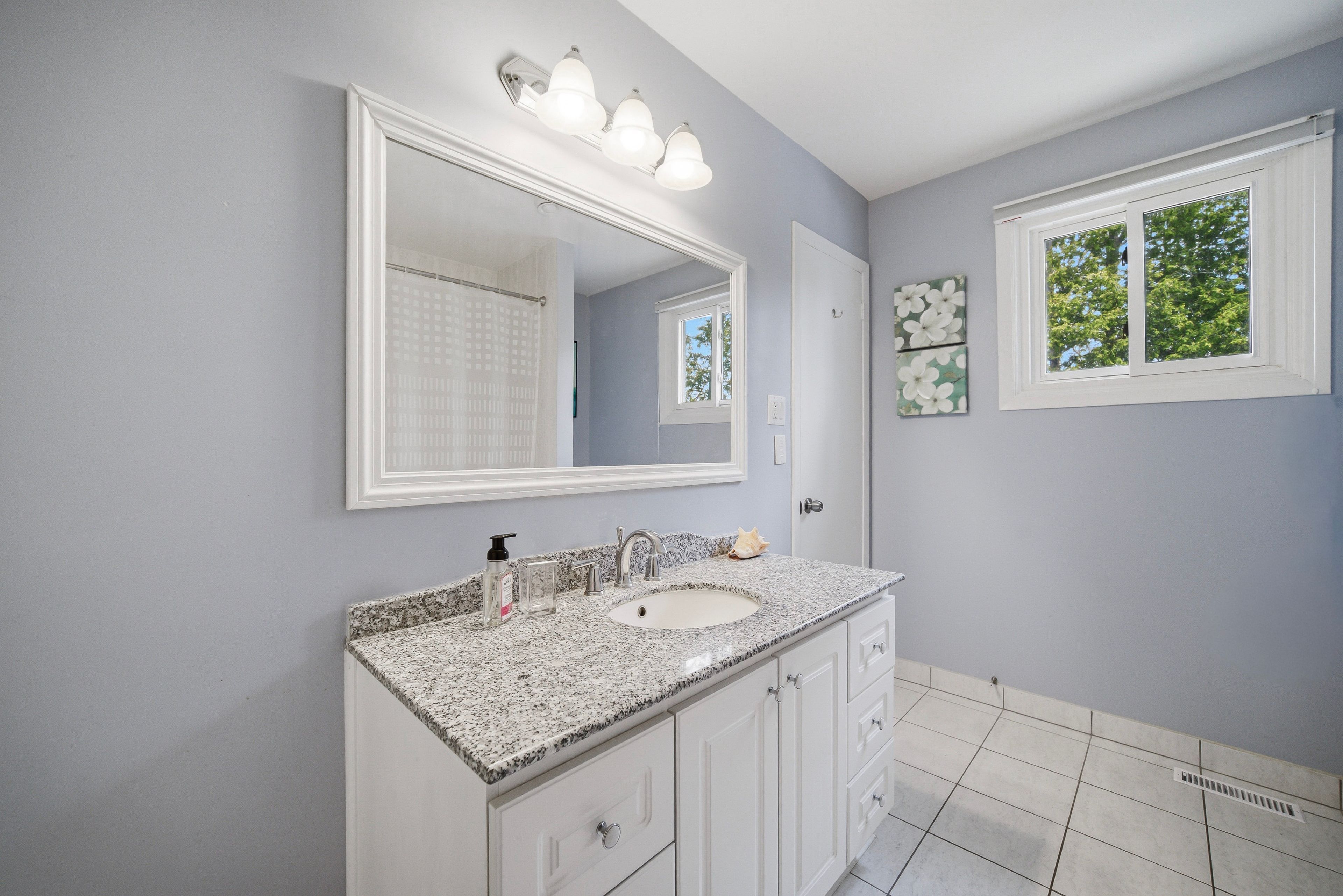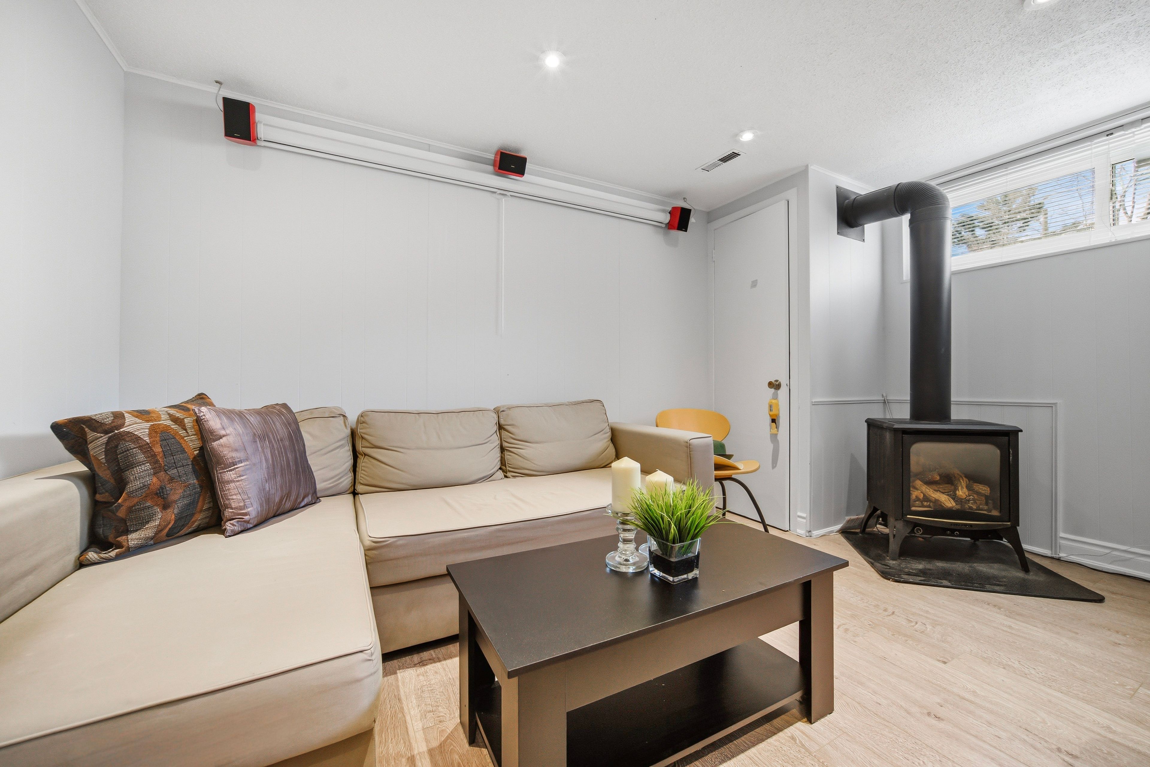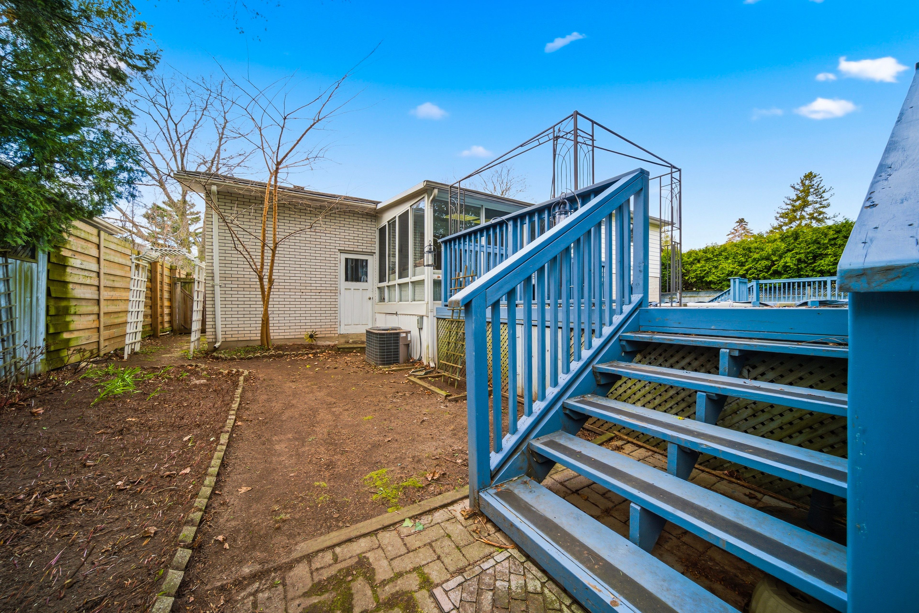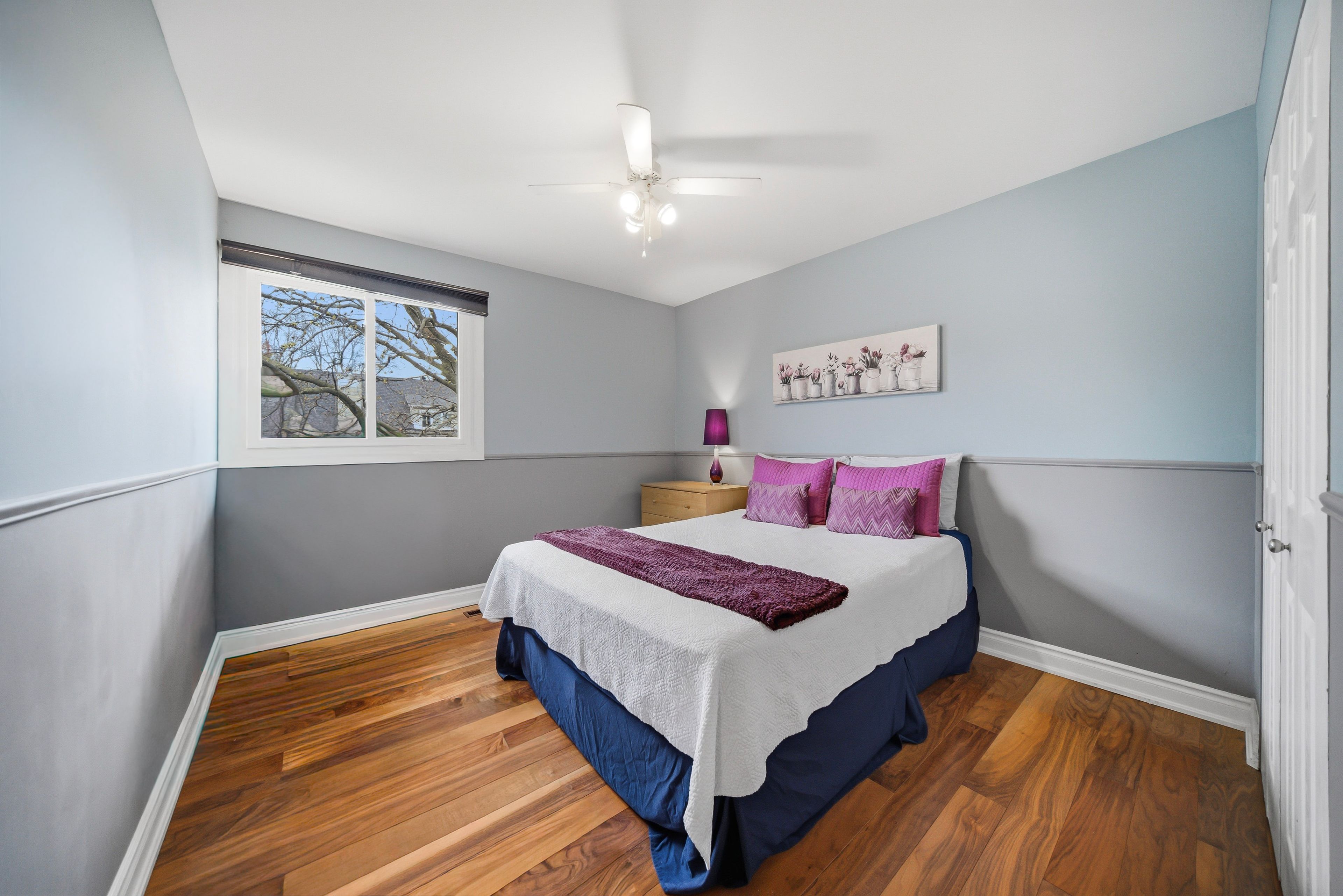 Stunning four-level side split in highly sought-after west oakville. Completely private and tranquil rear yard oasis features a custom 17' x 17' wood deck, surrounded by mature trees, a bright sunroom with sliding windows, a sparkling above-ground pool, and an interlock patio ideal for relaxing or entertaining. Elegant living and dining rooms feature rich hardwood flooring, french doors, crown moulding, wainscoting, and a large bay window. Upgraded kitchen blends style and functionality with granite countertops, a breakfast bar, ample cabinetry, and a reverse osmosis water filtration tap. Offering 3 + 1 bedrooms, with three on the upper level and one on the lower level, this home also features a custom, wood-panelled library/family room with a hampton wood-burning fireplace, along with a beautifully renovated bathroom featuring imported tile, a curbless shower, and a premium riobel rainfall system and heated towel rack. Professionally finished basement includes a recreation room with a gas fireplace, laminate flooring, and a dedicated exercise area. Wired ethernet ports on three levels provide fast, reliable connectivity for modern living. Ideally located within walking distance to top-rated schools including brookside public school, thomas a. Blakelock high school, pine grove french immersion, and appleby college (one of canada's top private schools), as well as scenic trails, parks, and all amenities. A true gem in a beautiful, quiet neighbourhood.