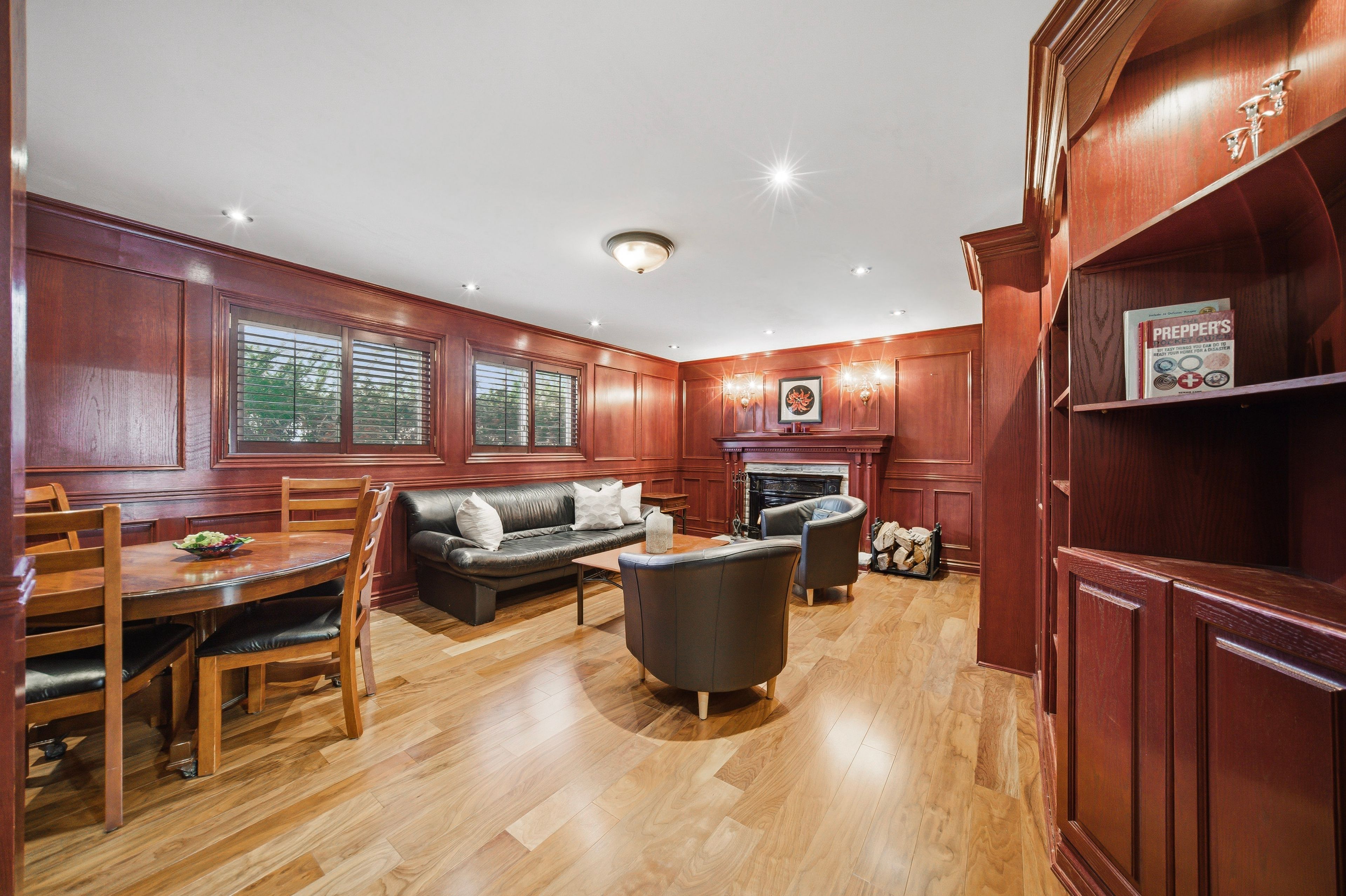 • Elegant living and dining rooms with hardwood flooring and classic details.