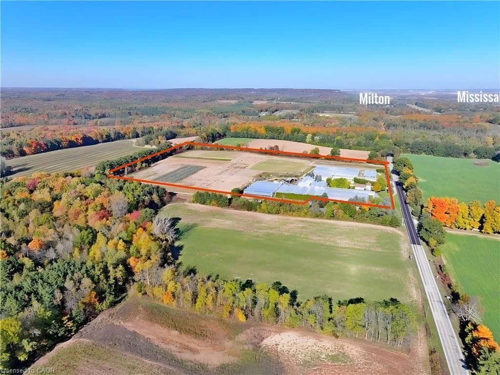 Are you searching for a ready-to-go farm operation just minutes from the gta? Your search ends here! This exceptional 23. 5-acre property in the prestigious town of milton offers fertile sandy loam soil, 2 acres of meticulously maintained greenhouses, a charming 4-bedroom home, and a serene deep pond. With nearly six decades of family stewardship, this rare gem is primed for immediate flower, vegetable, orchard, or even special crop cultivation, with plenty of room to expand on its flat, open landscape. Key features include two gas boilers, a loading dock, spacious barns, and all necessary farm equipment and tools, along with a natural gas connection. Enjoy the strategic advantage of 751 feet of frontage along business highway 7 and proximity to major highways, ensuring seamless access to millions of potential customers. With urban growth and expansion on the horizon, this prime land is poised for significant appreciation. The current owner, with decades of experience and goodwill, is ready to guide you and help ensure the continued success of this thriving agricultural haven. Please note: this property is for sale only. However, if you wish to operate the farm business, the seller is willing to provide support to get you started. Don't miss out on this rare opportunity-act now and unlock the full potential of this extraordinary property!