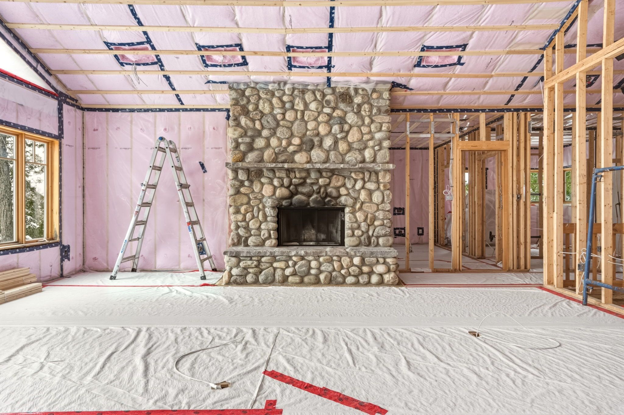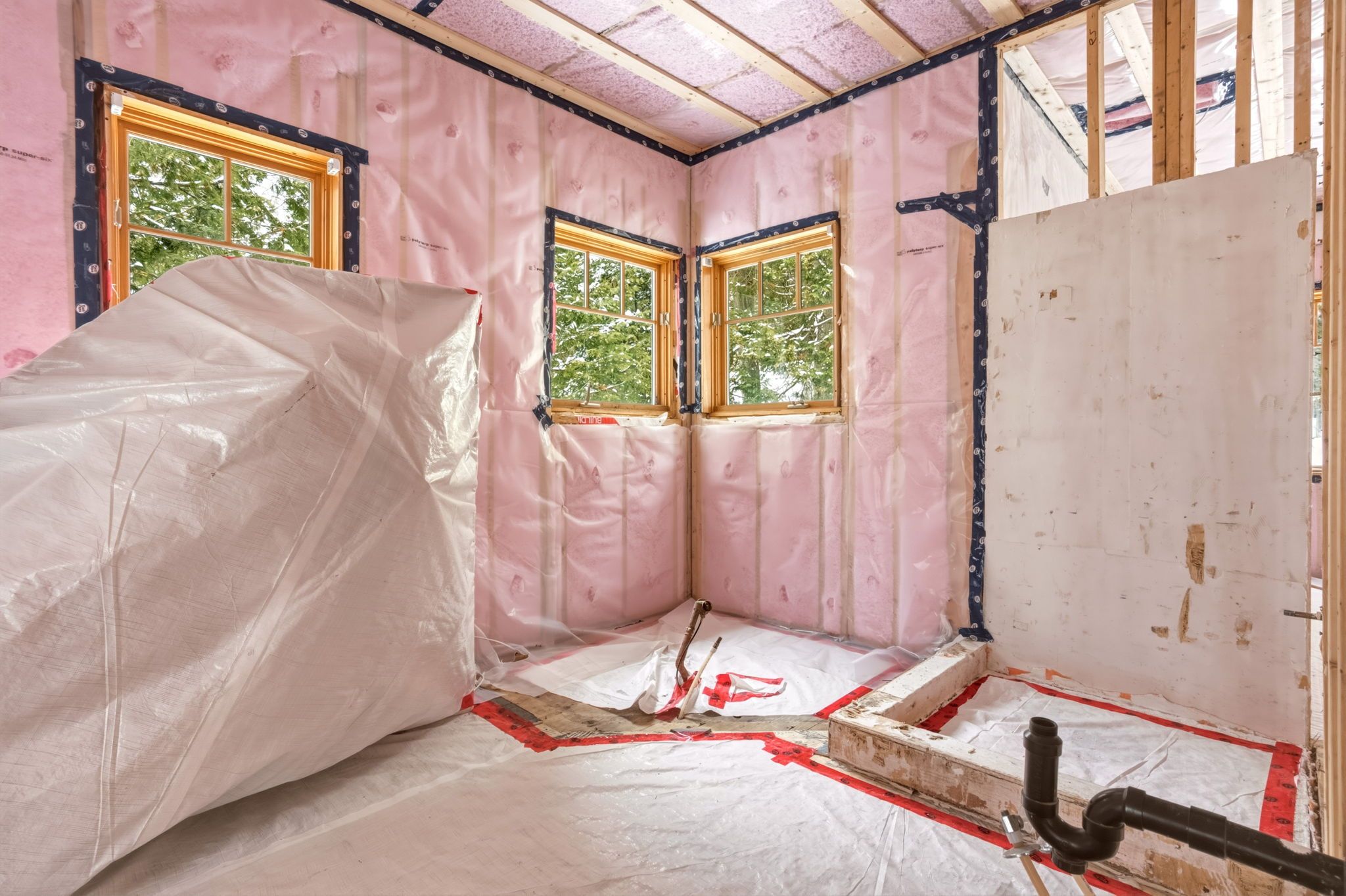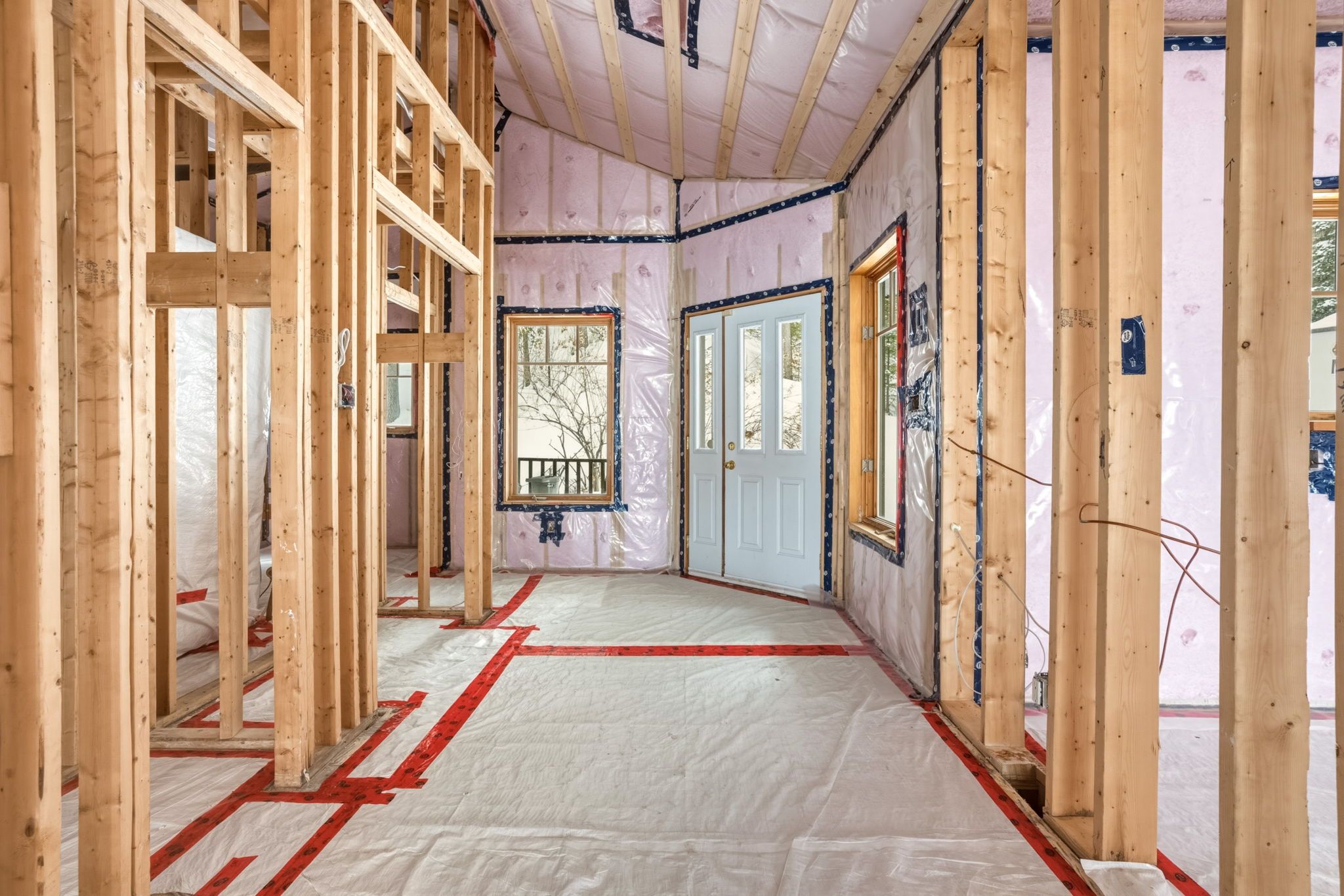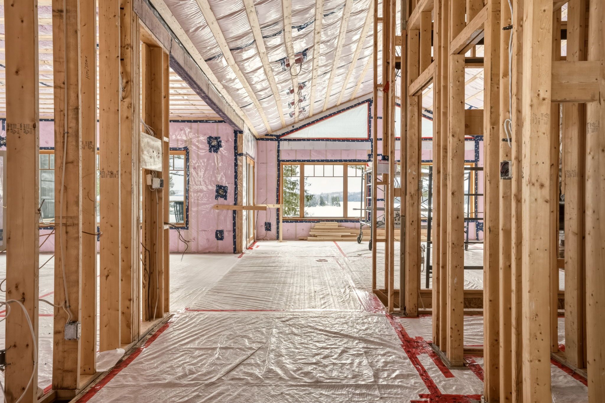 • Cottage stripped to the studs, providing a blank canvas for renovation.