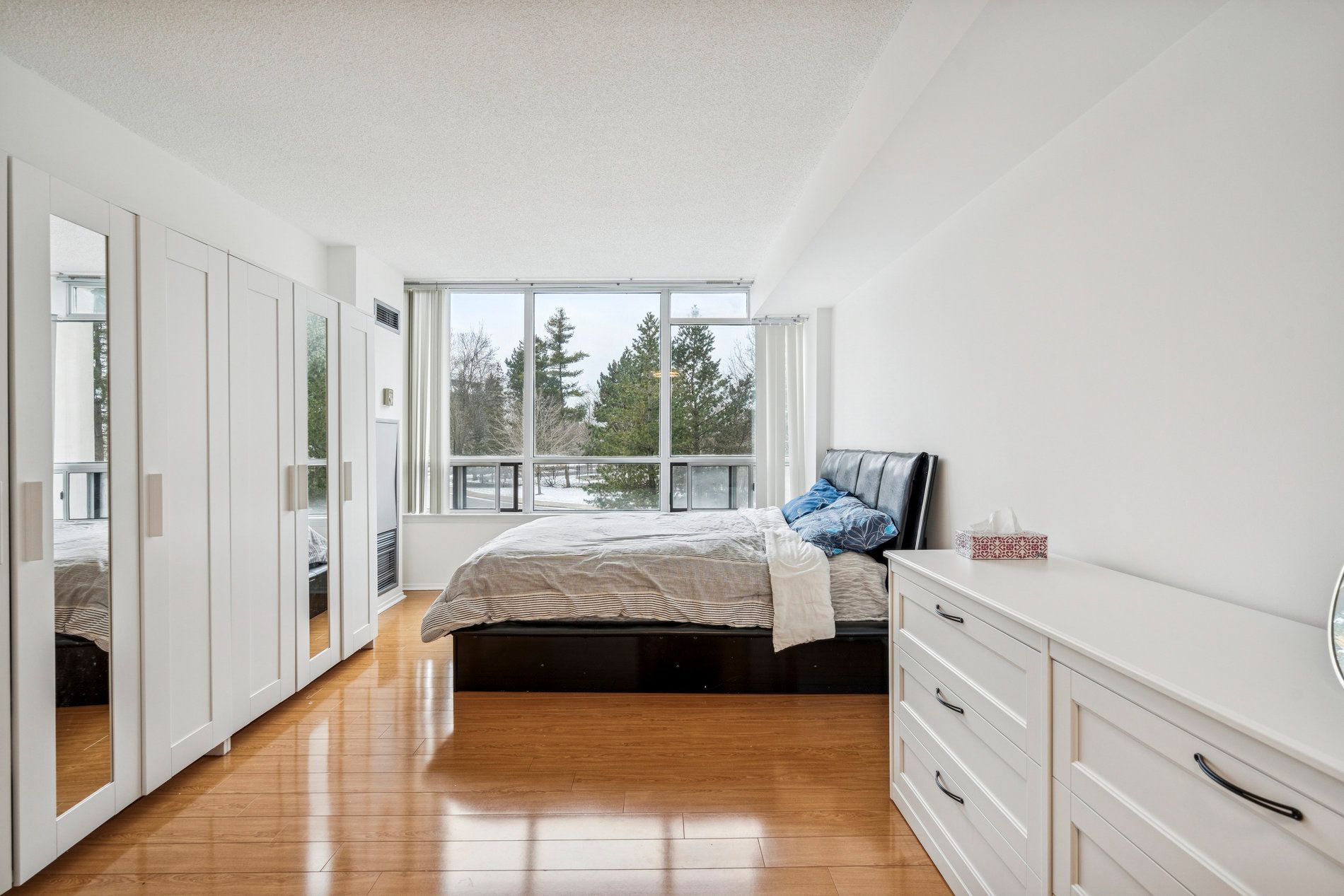 Welcome to primrose condominiums, offering a bright and well-proportioned 2-bedroom + solarium, 2-bathroom suite designed for comfortable and flexible living. The sun-filled solarium adds valuable bonus space and is ideal for a home office, reading area, or extended living space. The eat-in kitchen features ample cabinetry and natural light, while the spacious primary bedroom includes double closets and a private ensuite bathroom. The thoughtful layout allows for seamless living and entertaining. The unit includes one underground parking space. Residents enjoy 24-hour gatehouse security and access to resort-style amenities, including a fitness centre, indoor whirlpool, saunas, outdoor pool, tennis courts, squash/racquetball courts, party room, library/billiards room, and more. Conveniently located steps to shopping plazas, public transit, and offering easy access to finch subway and steeles west subway, this condo is a great opportunity for buyers seeking space, lifestyle, and value in a well-managed north york community.