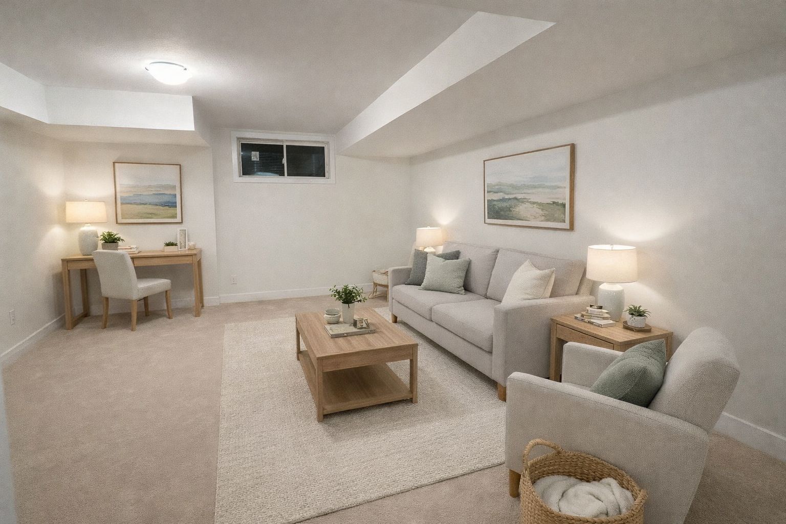 • Finished basement provides extra living space for various uses.