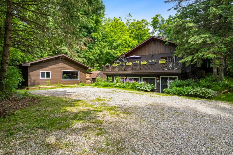 On 8 private tranquil acres, charming pan abode log home that blends beautifully into its natural surroundings. The carpenter, hobbyist and/or artist in the family will appreciate the detached 22'x24' studio with woodstove plus, the detached insulated garage-workshop with woodstove and loft. Both the garage-workshop and studio have hydro. Spacious 3 bedroom, 2 full bathroom home offers bright white 8' ceilings, ash hardwood floors and endless window views of nature. Livingroom has one of two amazing georgian bay fieldstone fireplaces; fieldstones all handpicked. Dining room showcases tiffany lamp and exquisite hand-crafted french oak wall unit. Sun-filled kitchen features lots of cupboard storage and extra prep areas. Primary bedroom has walk-in closet with custom fit-ins. Primary bedroom also has cheater door to bathroom with two-person therapeutic soaker tub. Large back foyer leads to expansive wrap-about deck that has wonderful enclosed lounging area with heated pool - perfect for family fun, gatherings with friends and staycations. Lower level family room has second stone fireplace and wet bar. Lower level also includes two bedrooms, 3-pc bathroom, sunroom-office with pellet stove, laundry station and doors to outside. You have trails groomed for hiking through the woodlands. Located on paved township maintained road with mail delivery and garbage pickup. Hi-speed. Cell service. 10 mins to carleton place or 15 mins to perth.