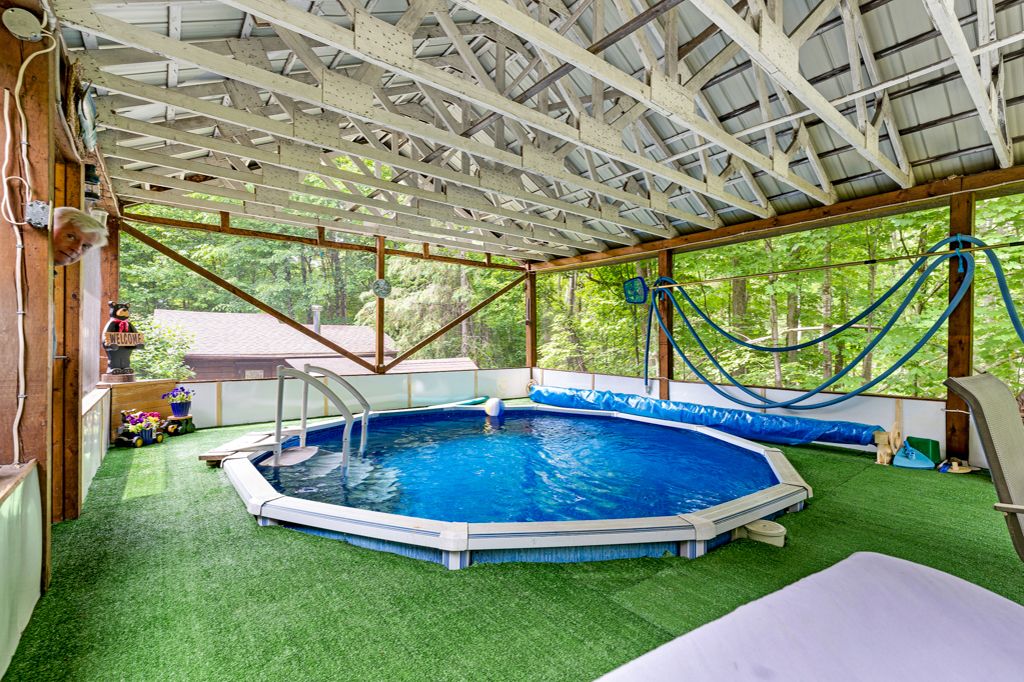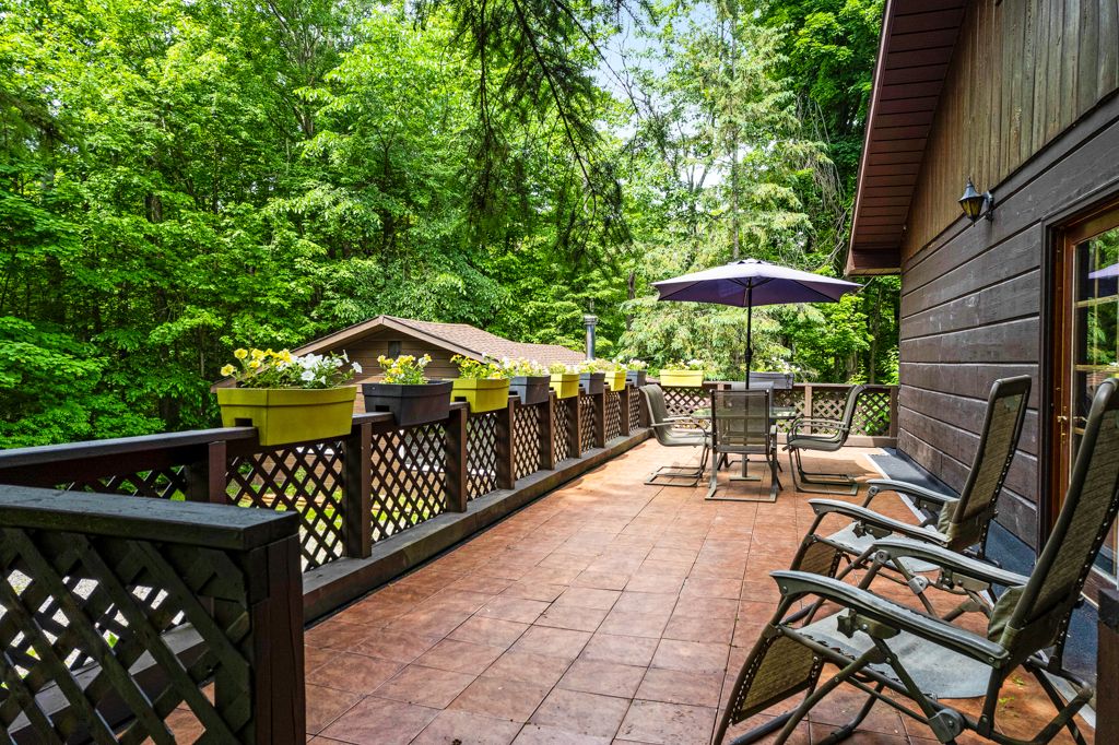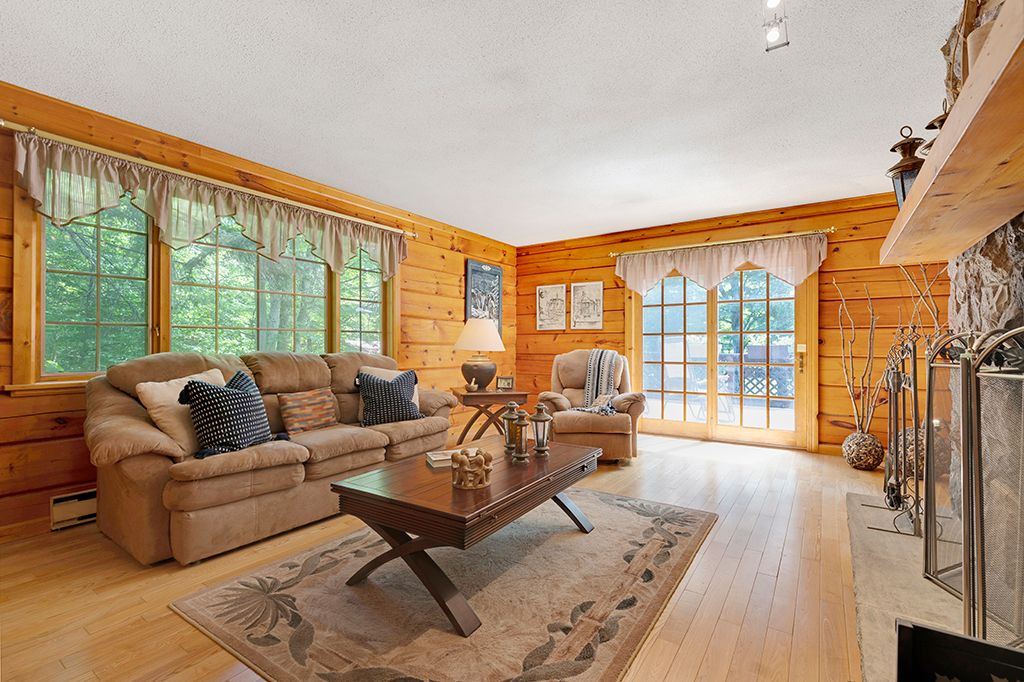 On picturesque 8 woodland acres, charming pan abode log home that's a sanctuary for nature lovers. Surrounded by peace and quiet, warmly welcoming home blends into its natural environment. The family artist, carpenter and hobbyist will especially appreciate the detached studio with woodstove plus, the detached insulated garage-workshop with woodstove and loft. Both the studio and garage-workshop have hydro. Large spacious 3 bedroom, 2 full bathroom home offers rich wood detailing, ash hardwood flooring and endless views of the tranquil outdoors. Front entrance features hand-made lovely stained glass panels. Living room showcases one of two amazing custom georgian bay fieldstone fireplaces; fieldstones are all hand selected. Formal dining room has tiffany light and exquisite hand-crafted french oak wall unit. Sun-filled kitchen features walls of cupboard storage, extra prep areas and another tiffany light. Primary bedroom walk-in closet with custom fit-ins. Primary bedroom also has its own access to main floor bathroom, with two-person therapeutic soaker tub. Rear foyer leads to expansive wrap-around deck that has wonderful enclosed lounging area with heated pool - perfect for family fun, gatherings with friends and staycations. Lower level features wet bar off the family room with another georgian bay custom stone wood-burning fireplace. Lower level sunroom provides space for at-home office, with pellet stove. Lower level also includes sitting area with woodstove, two comfortable bedrooms and 3-pc bathroom. Here too is the laundry station, cold storage and doors to outside. Surrounding woodlands have trails for summer hiking or winter snowshoeing. Located on township maintained paved road with mail delivery, garbage pickup and school bus route. Hi-speed and cell service. All this, conveniently situated between perth and carleton place; 15 mins to perth or 10 mins to carleton place.