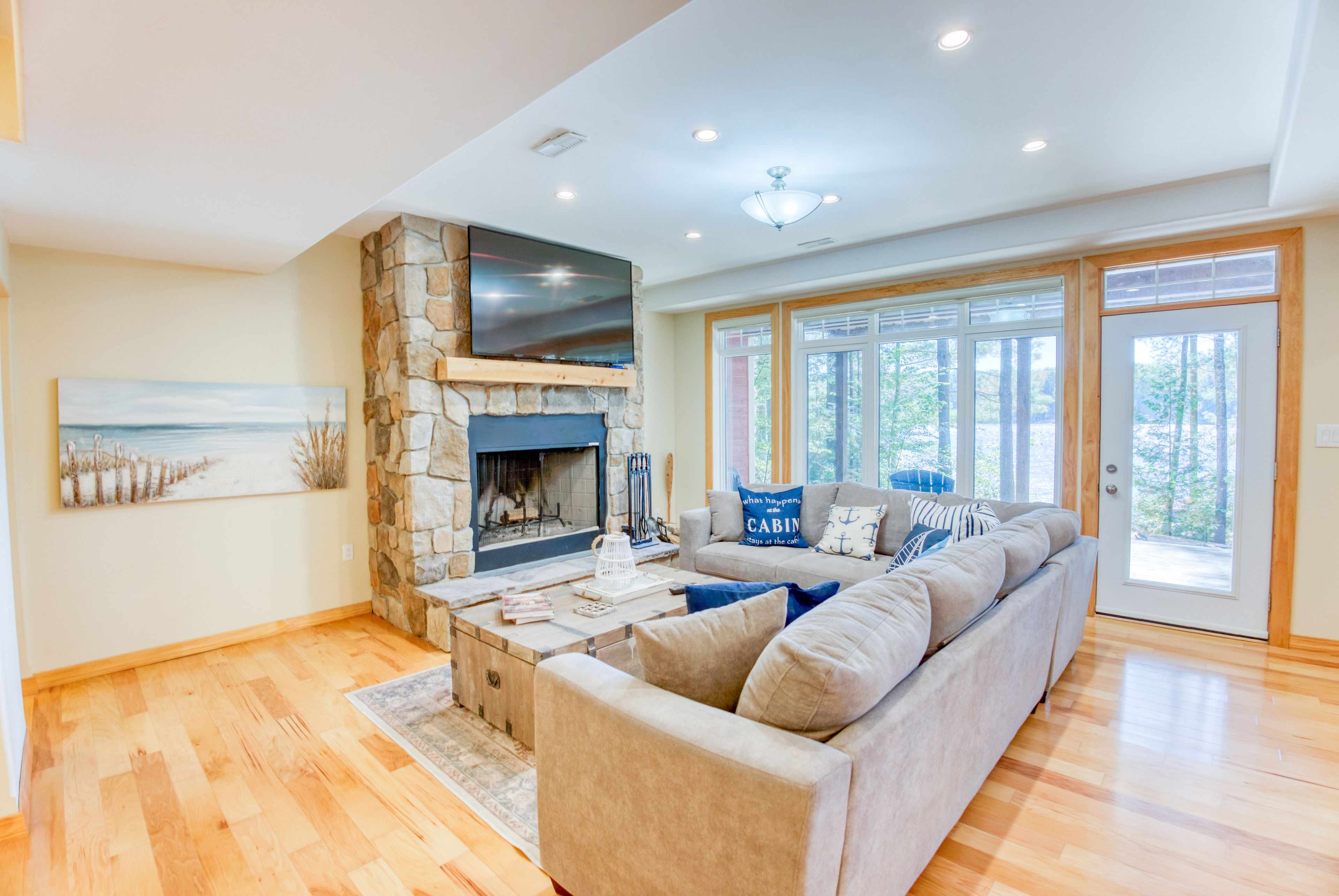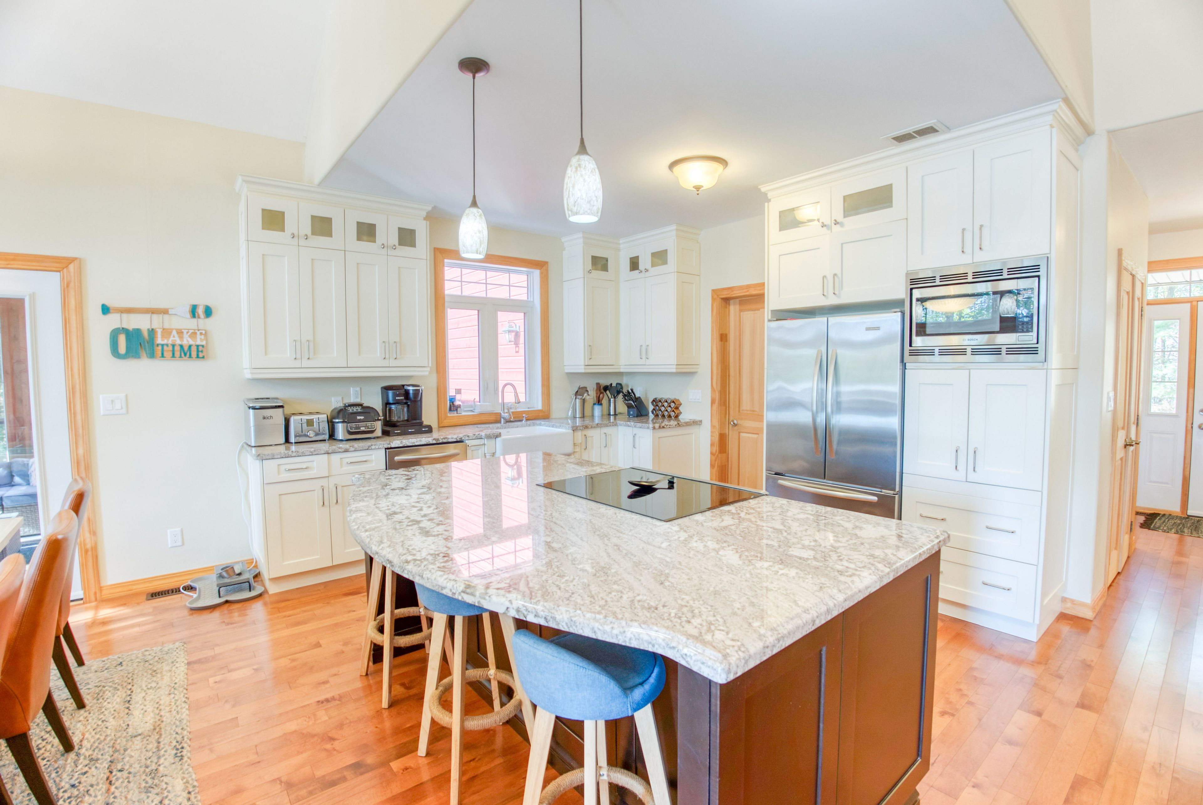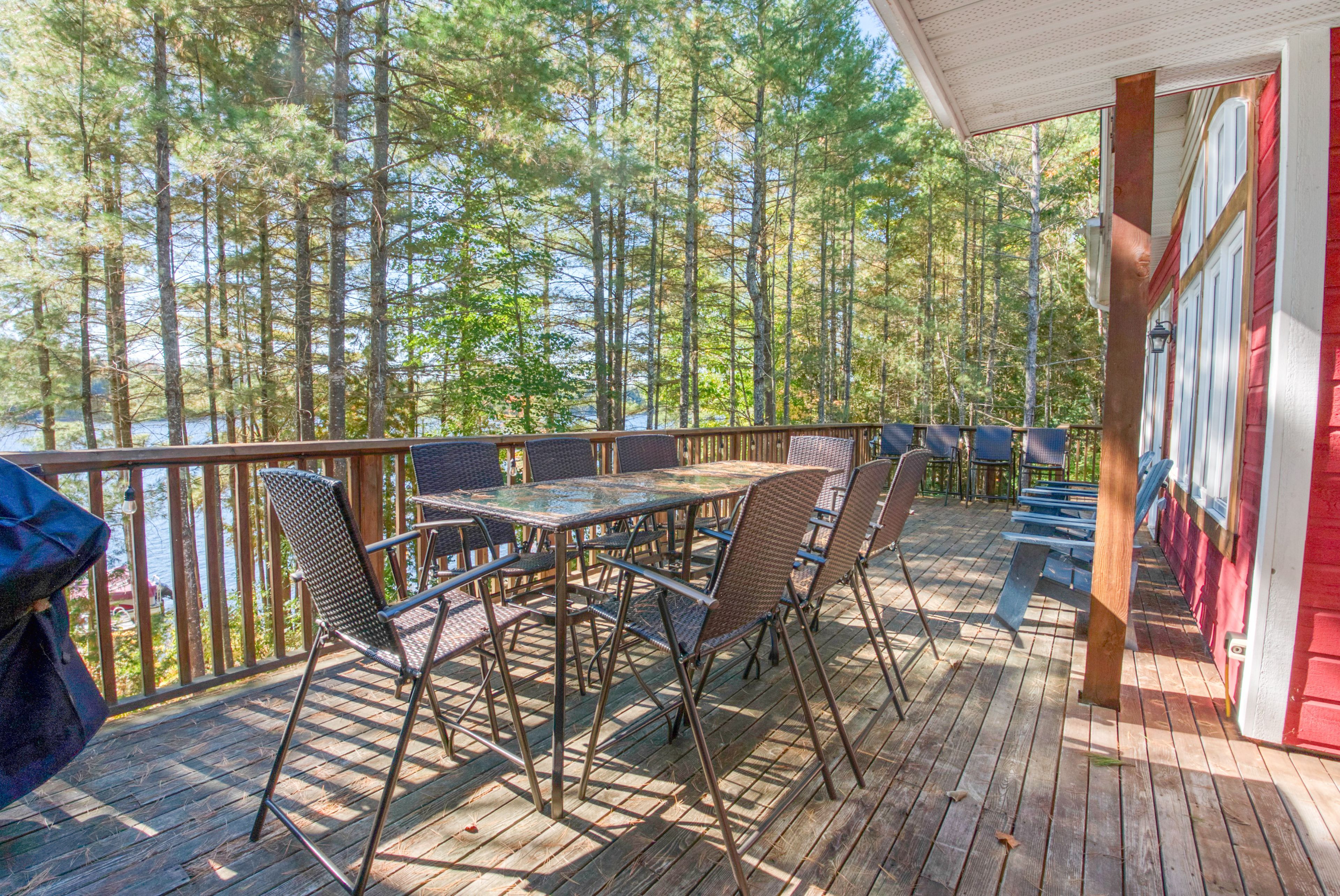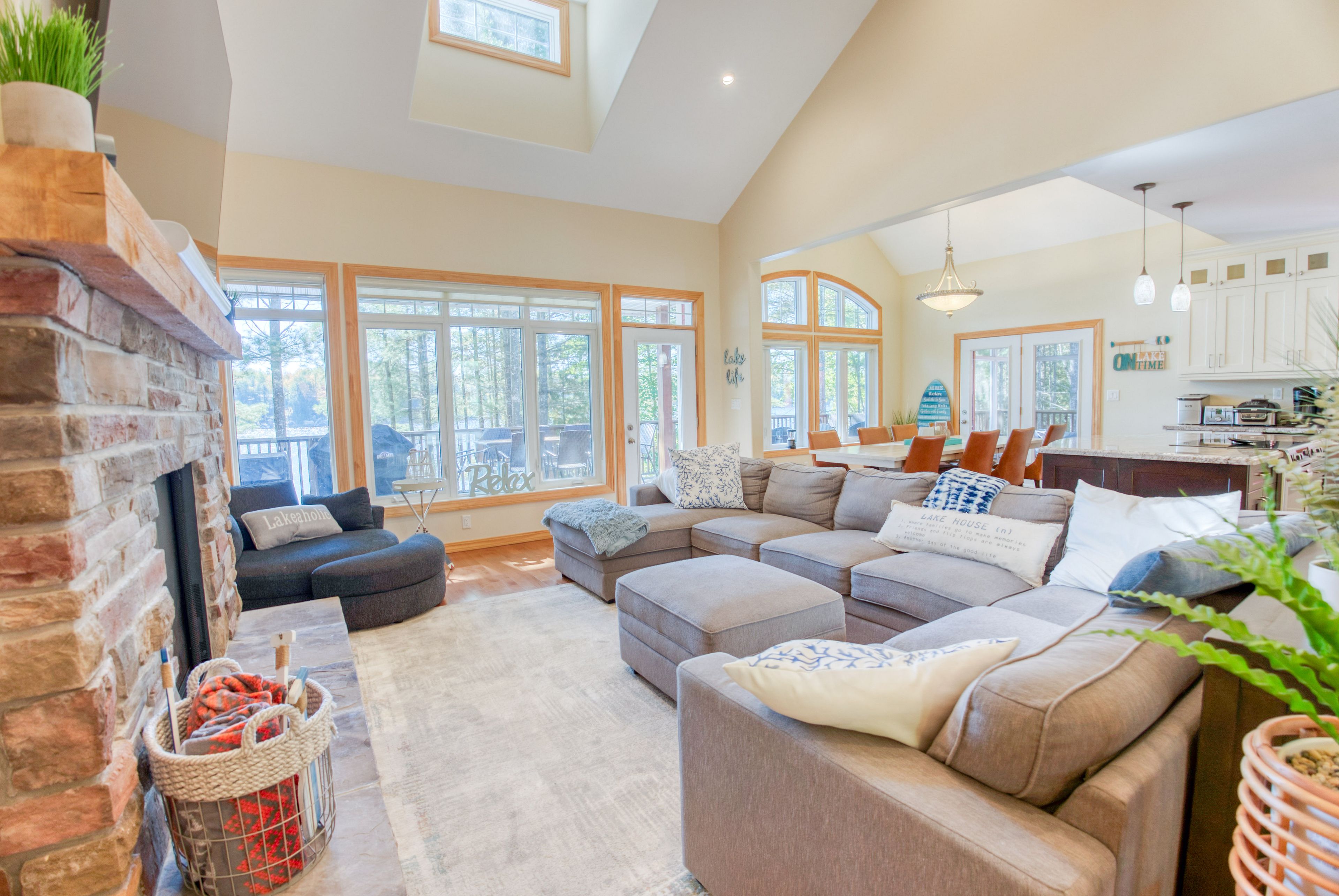 Lakefront living on kennebec lake - arden, ontario welcome to this stunning, quality-built lakefront home on beautiful kennebec lake in frontenac county. Built in 2013, this thoughtfully designed residence offers the perfect combination of comfort, elegance, and year-round waterfront living. The open-concept great room is the heart of the home, featuring vaulted ceilings, a propane fireplace, and expansive southern-facing windows that flood the space with natural light and provide breathtaking lake views. The high-end kitchen is ideal for both everyday living and entertaining, flowing seamlessly onto a spacious lakeside deck and a charming three-season sunroom. The main floor boasts two bedrooms and 2 bathrooms, including a well-appointed primary suite. The fully finished lower level provides even more space to gather with family and friends, offering a walkout to the lake, a large recreation room with a wood-burning fireplace, a games area, a complete wet bar, two additional bedrooms, and a full bathroom. Step outside to enjoy lakeside living at its finest: a finished patio with an outdoor fire pit, easy access to a swimmable waterfront with sandy and rock bottom, and a private dock perfect for diving in or mooring your boat. An attached two-car garage, central heating and air conditioning, and a municipally maintained road ensure convenience and peace of mind year-round. This property is more than a home-it's a lifestyle. Whether you're looking for a family retreat, a place to entertain, or a permanent residence on the water, this kennebec lake gem offers it all.