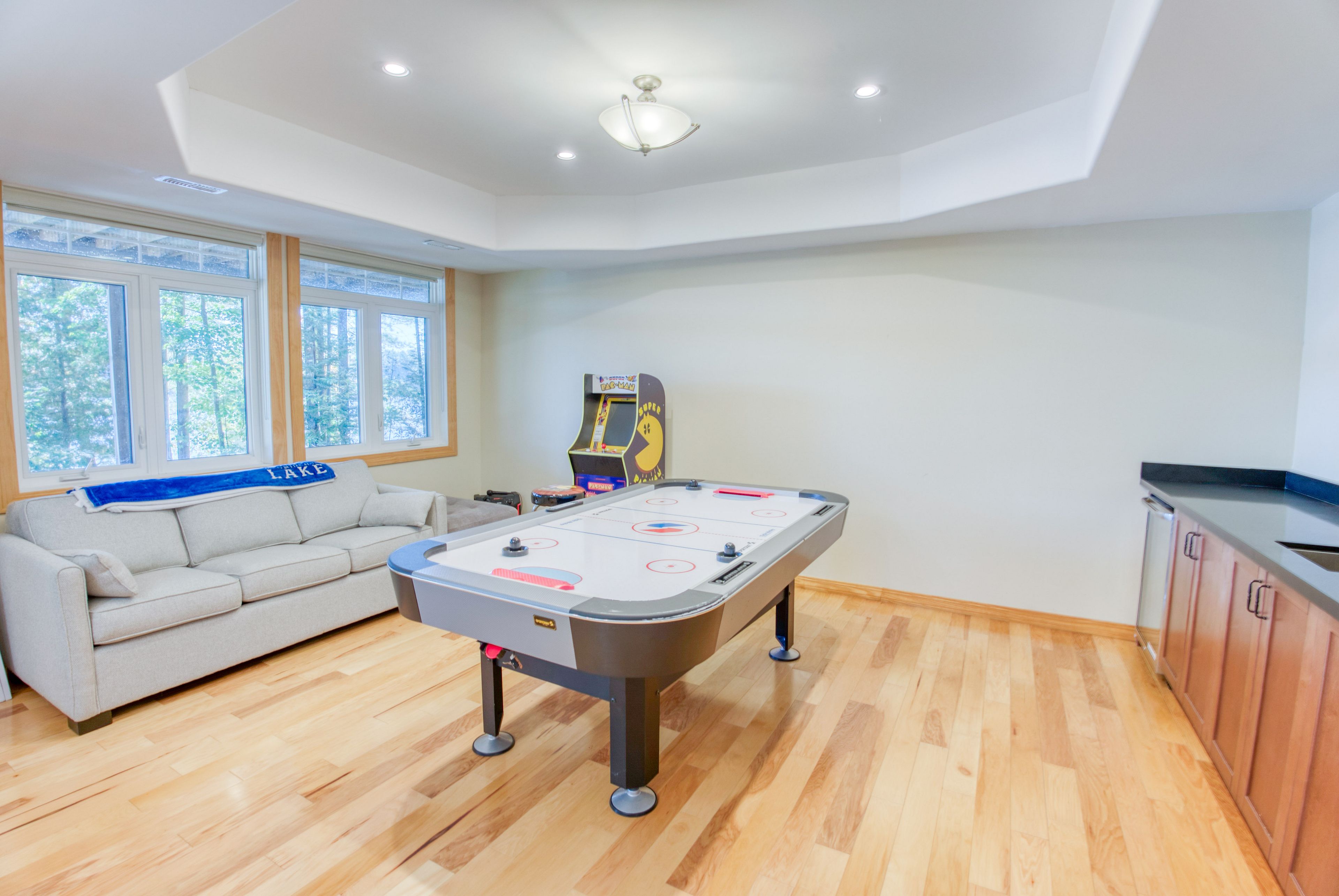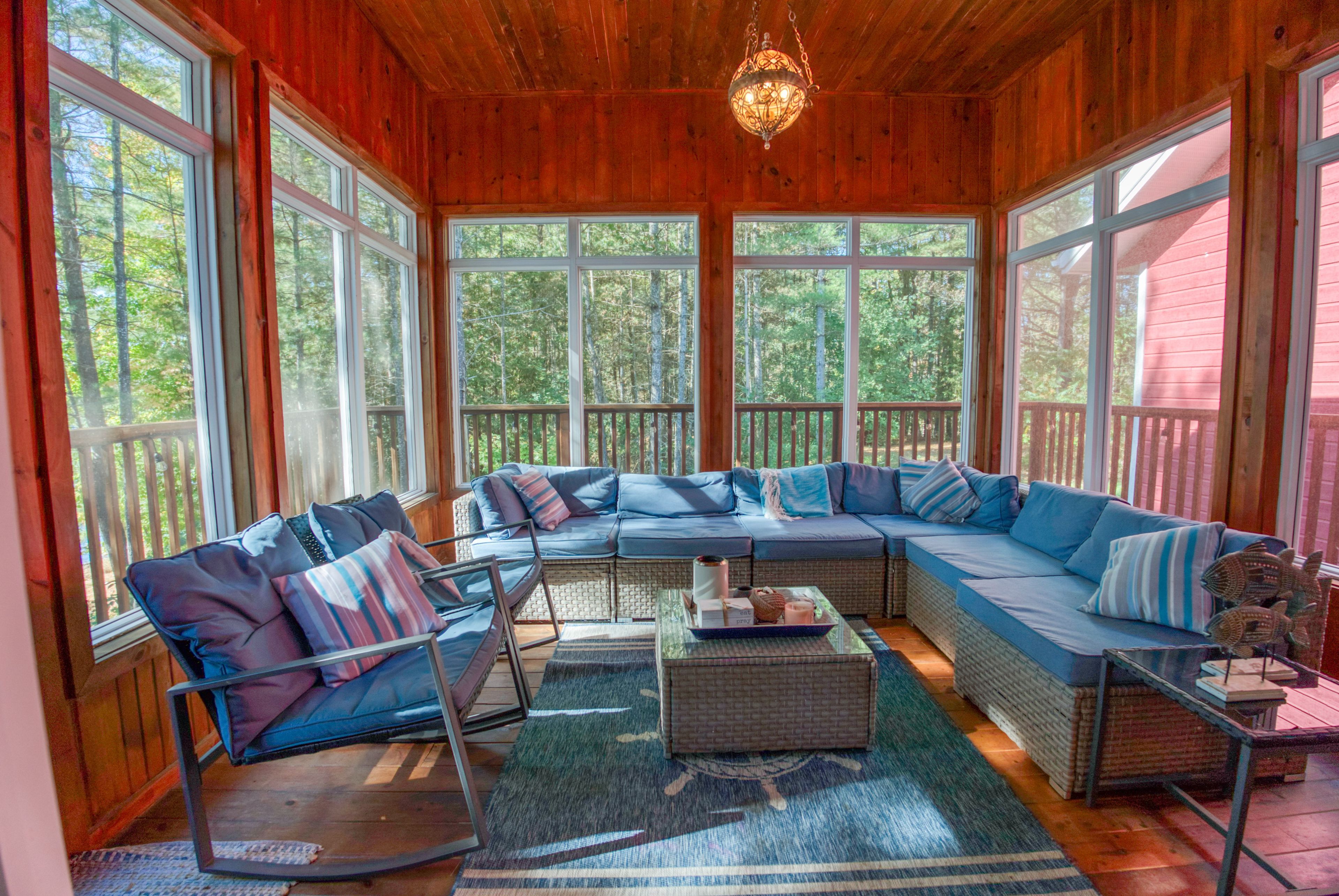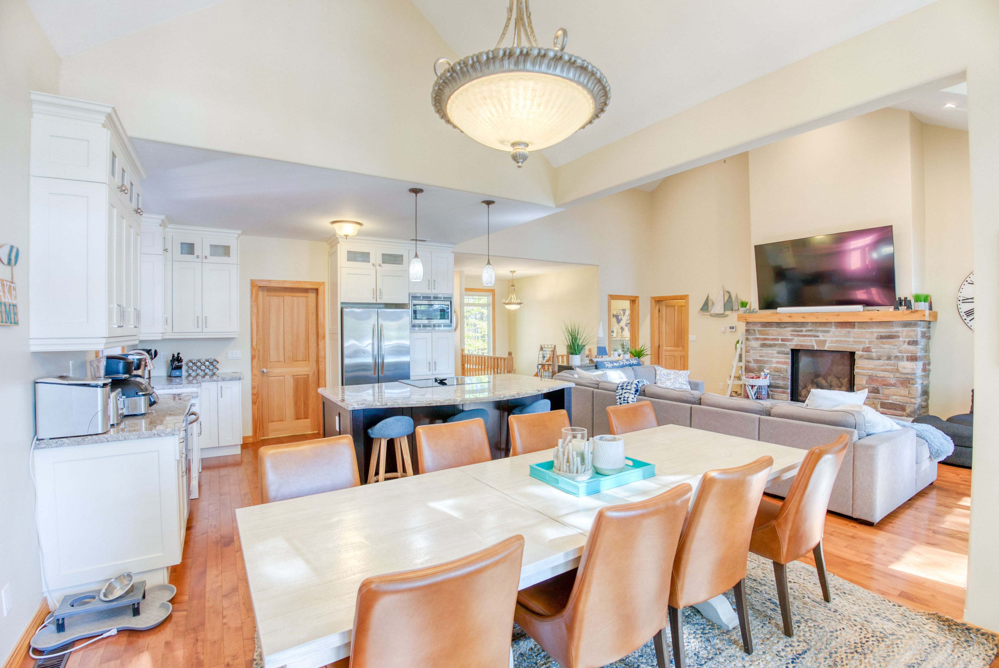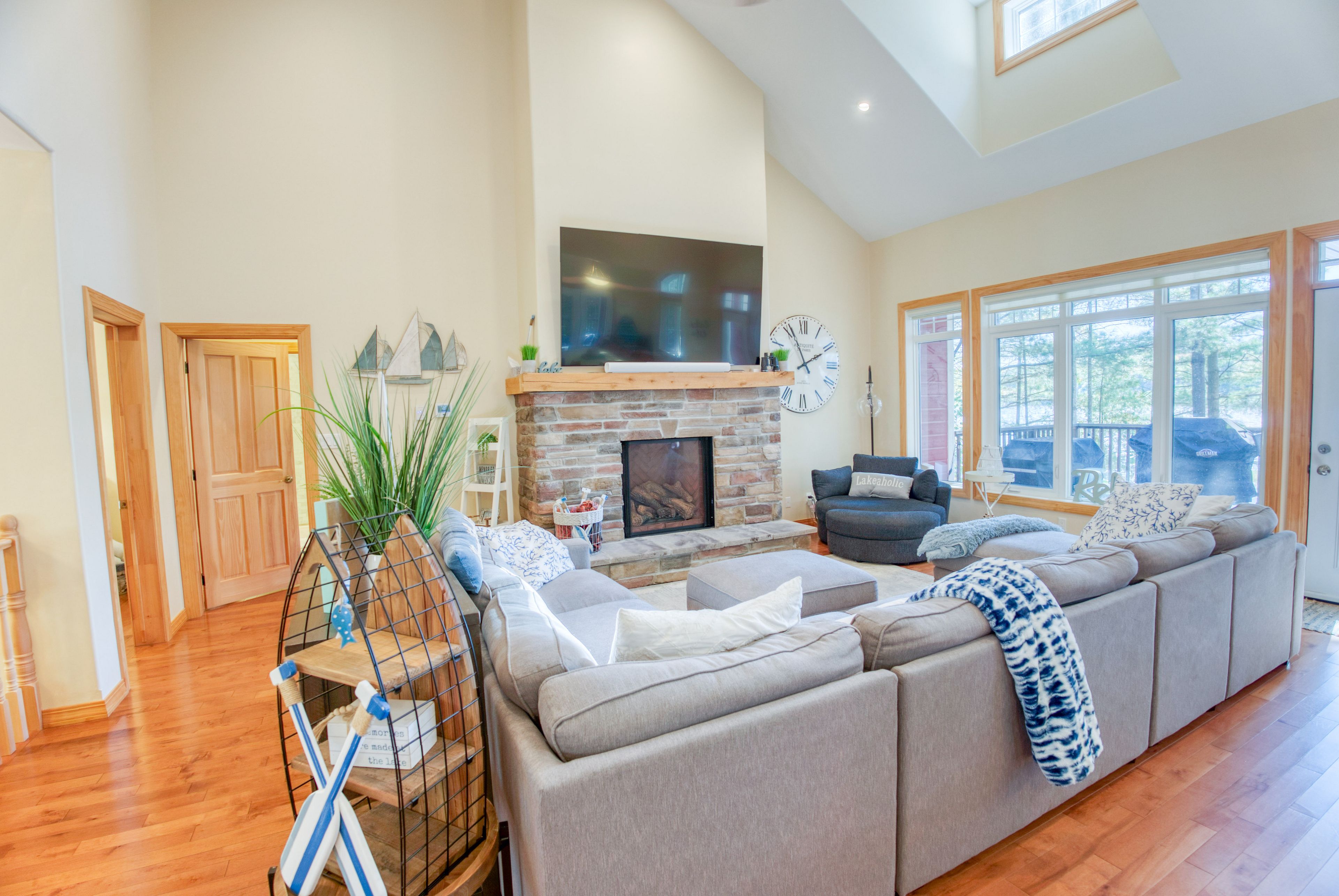 Lakefront living on kennebec lake - arden, ontario welcome to this stunning, quality-built lakefront home on beautiful kennebec lake in frontenac county. Built in 2013, this thoughtfully designed residence offers the perfect combination of comfort, elegance, and year-round waterfront living. The open-concept great room is the heart of the home, featuring vaulted ceilings, a propane fireplace, and expansive southern-facing windows that flood the space with natural light and provide breathtaking lake views. The high-end kitchen is ideal for both everyday living and entertaining, flowing seamlessly onto a spacious lakeside deck and a charming three-season sunroom. The main floor boasts two bedrooms and 2 bathrooms, including a well-appointed primary suite. The fully finished lower level provides even more space to gather with family and friends, offering a walkout to the lake, a large recreation room with a wood-burning fireplace, a games area, a complete wet bar, two additional bedrooms, and a full bathroom. Step outside to enjoy lakeside living at its finest: a finished patio with an outdoor fire pit, easy access to a swimmable waterfront with sandy and rock bottom, and a private dock perfect for diving in or mooring your boat. An attached two-car garage, central heating and air conditioning, and a municipally maintained road ensure convenience and peace of mind year-round. This property is more than a home-it's a lifestyle. Whether you're looking for a family retreat, a place to entertain, or a permanent residence on the water, this kennebec lake gem offers it all.