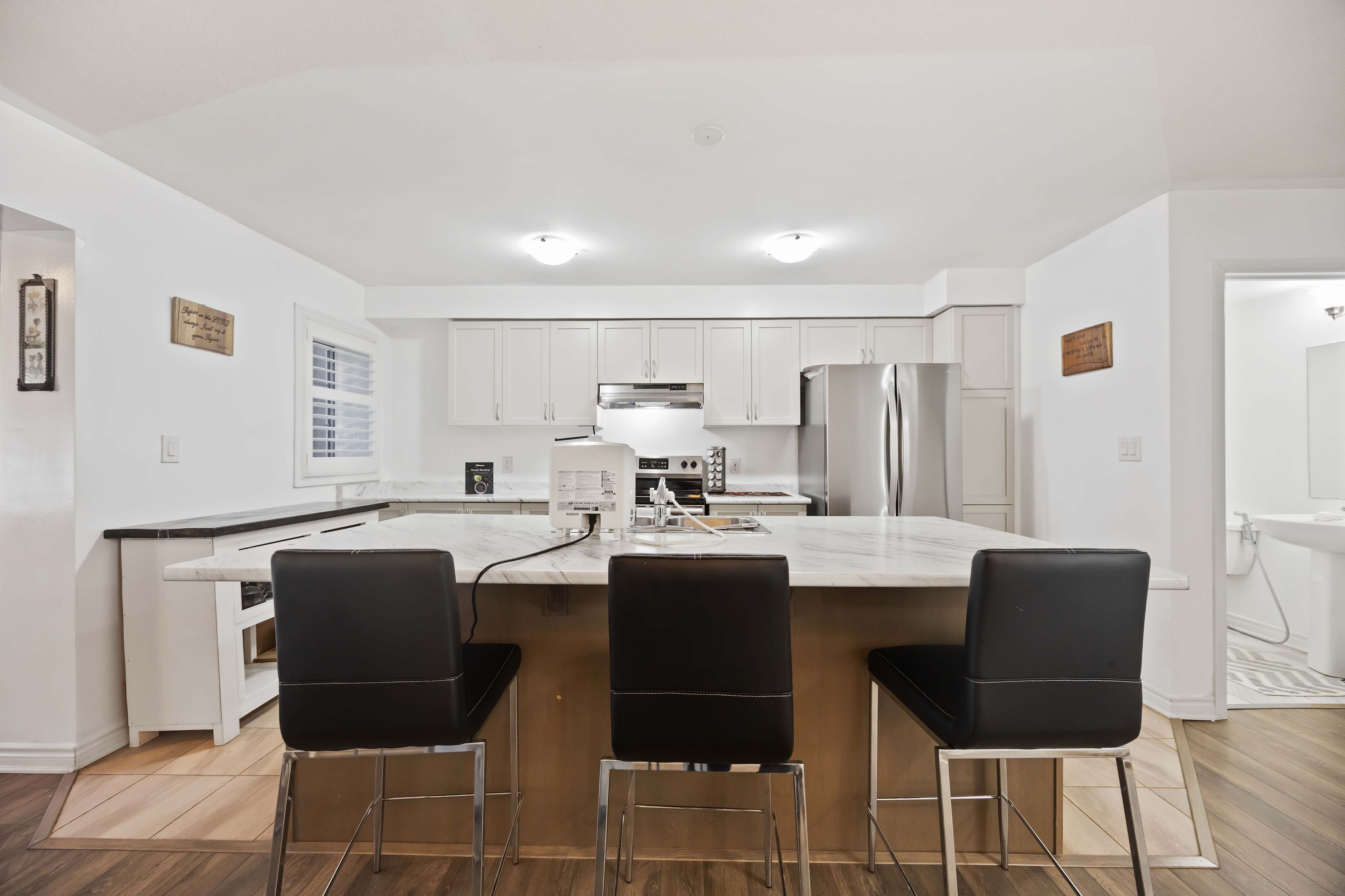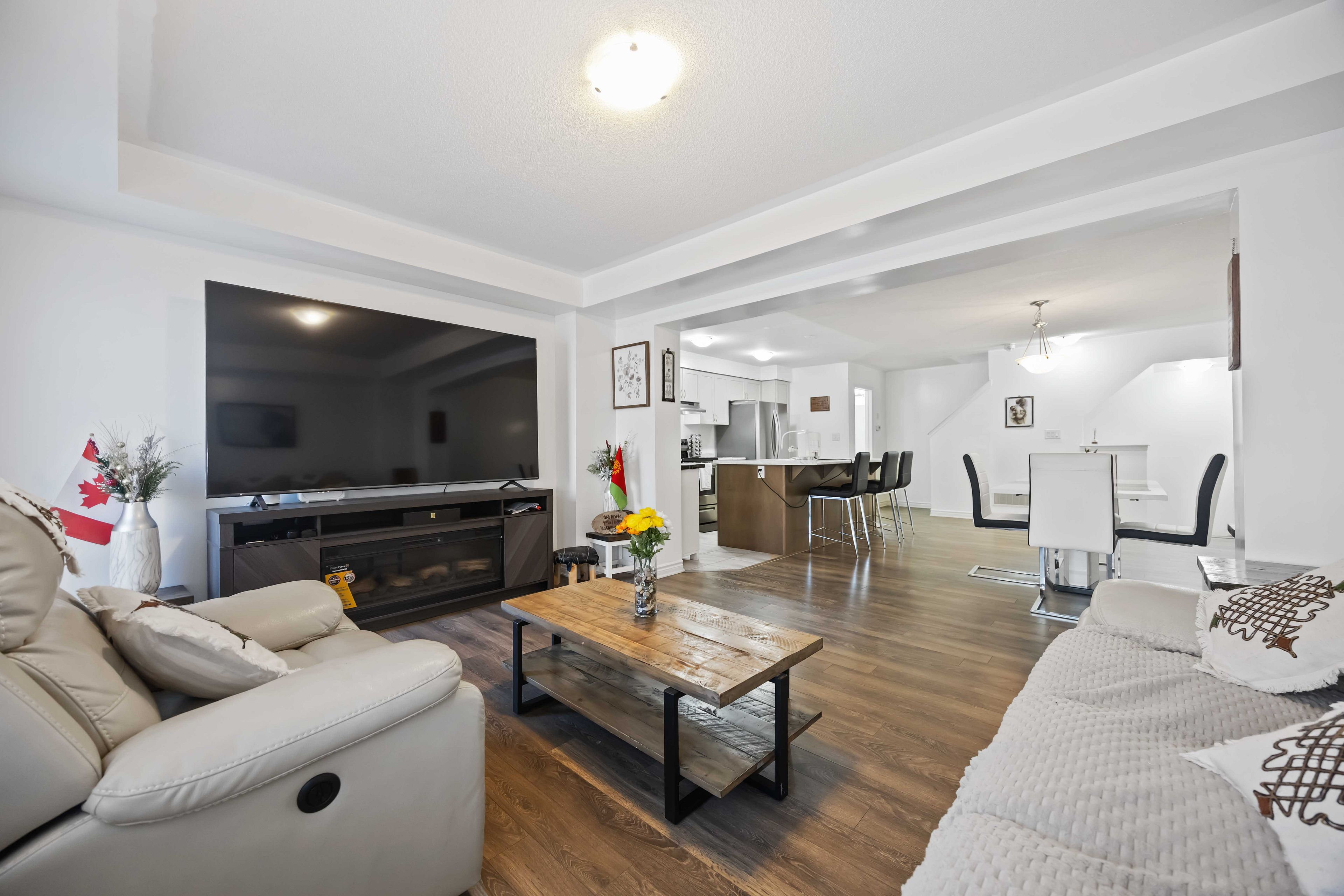 Stunning freehold townhouse bright and spacious build in 2018 by mattamy. As you enter the home, whether through the garage or the front door, you are welcomed by a spacious foyer ,perfect for hanging your winter jackets and storing your boots and shoes. You can also create a great home office and add a couch. At the top of the stairs on the second floor, you will find an open concept layout featuringthe formal dining room, living room, and a bright eat-in kitchen with stainless steelappliances. The balcony just off this space is ideal for sipping your morning coffee orrelaxing at the end of the day. On the third floor, there are three well sized bedrooms with ample closet spaces. The primarybedroom stands out with its walk-in closet and a private en-suite.