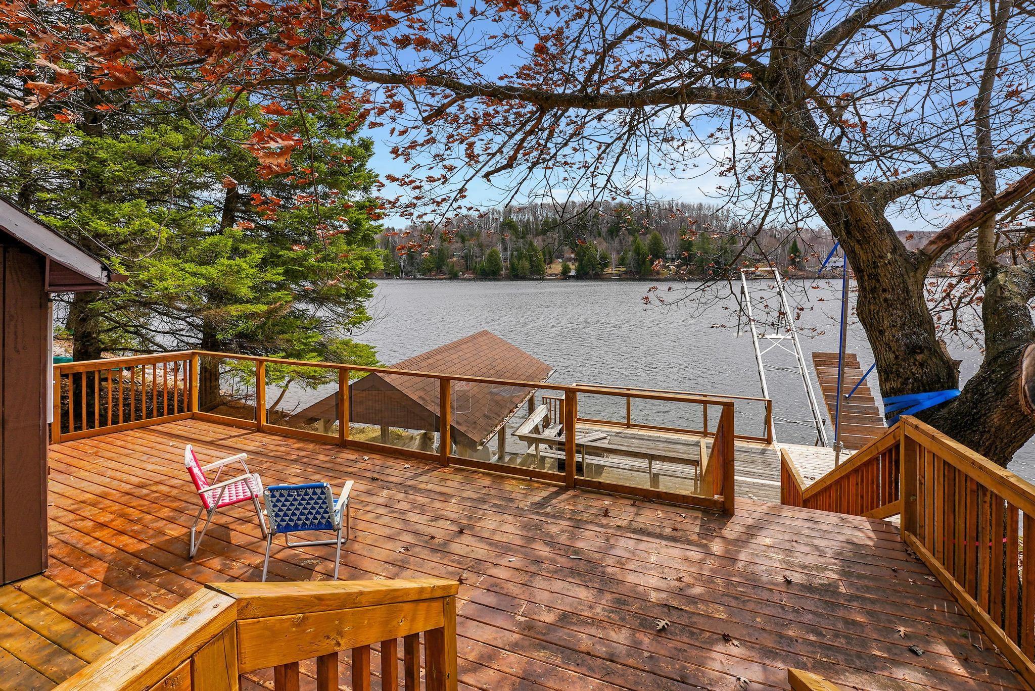• Two-tiered deck at the water's edge, perfect for relaxation and play.
